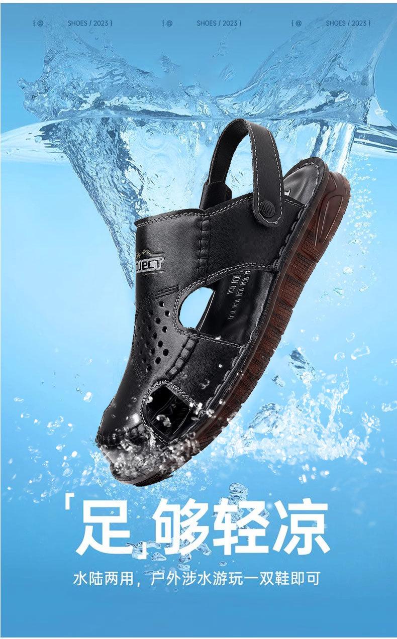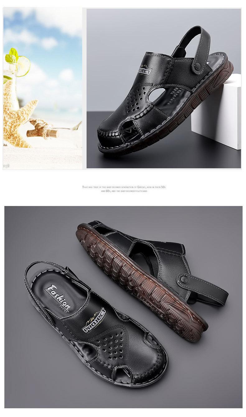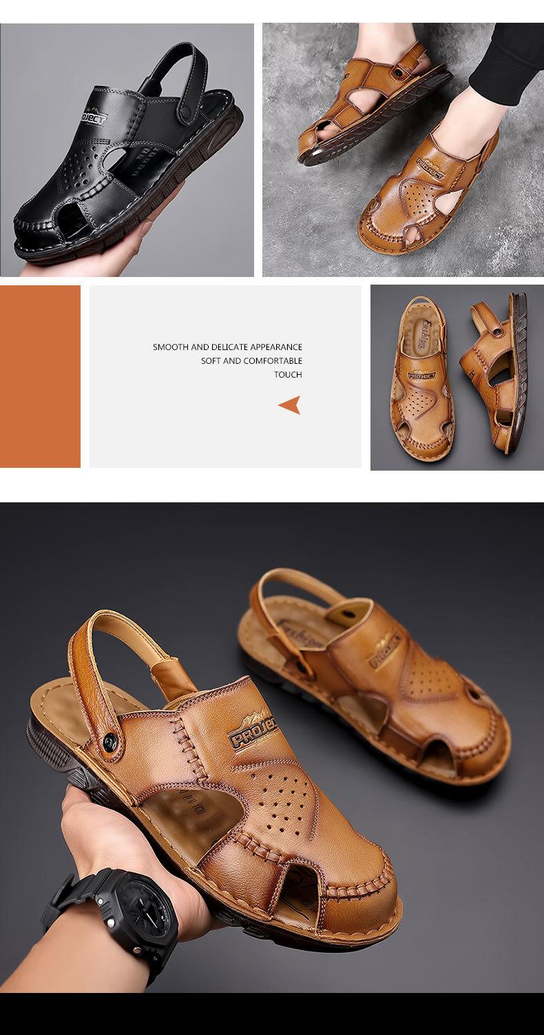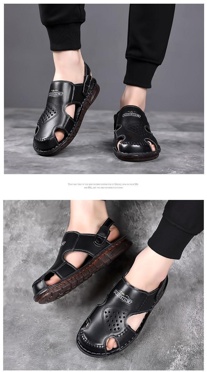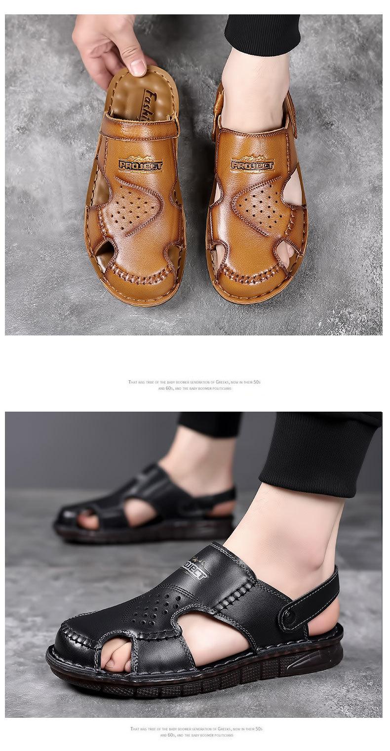 Zapatos de Hombre 2025 Verano Cuero Genuino Suela de Tendón de Res Sandalias Sandalias de Hombre con Puntera Descubierta para Verano Casual Exterior Antideslizante