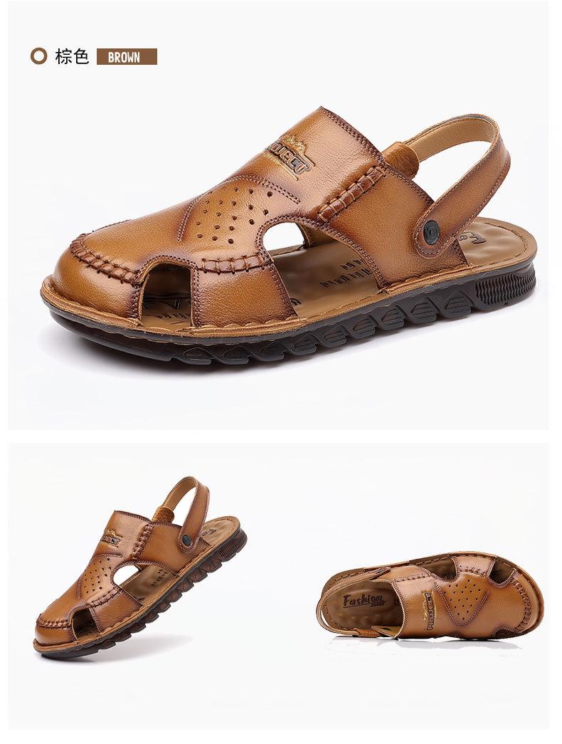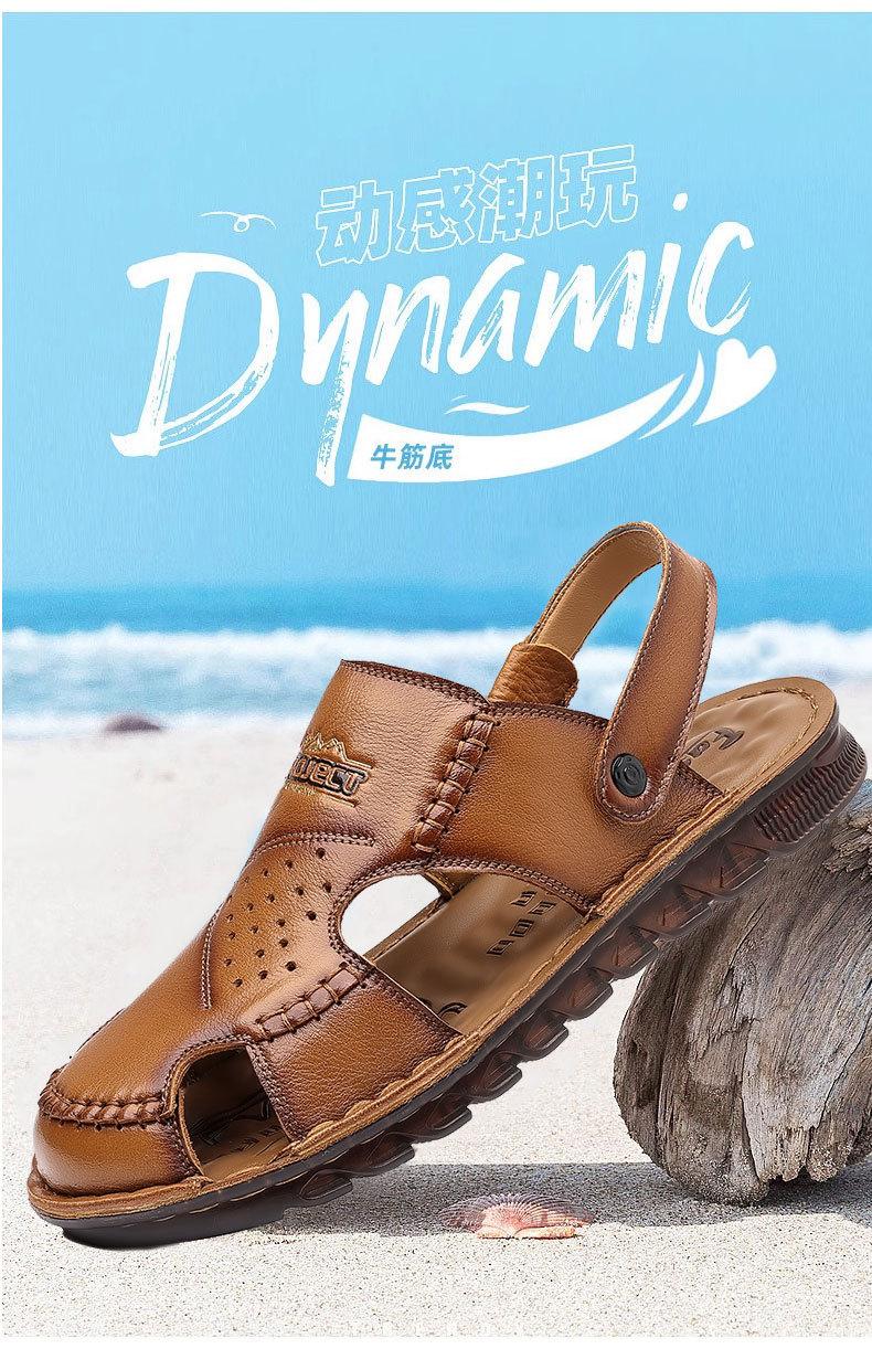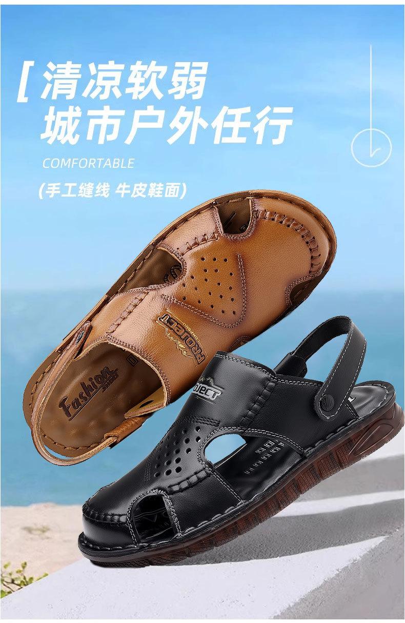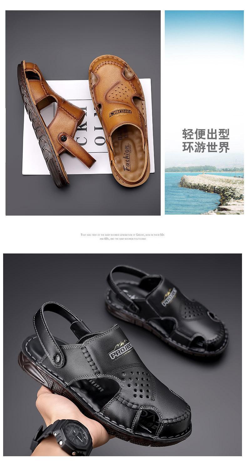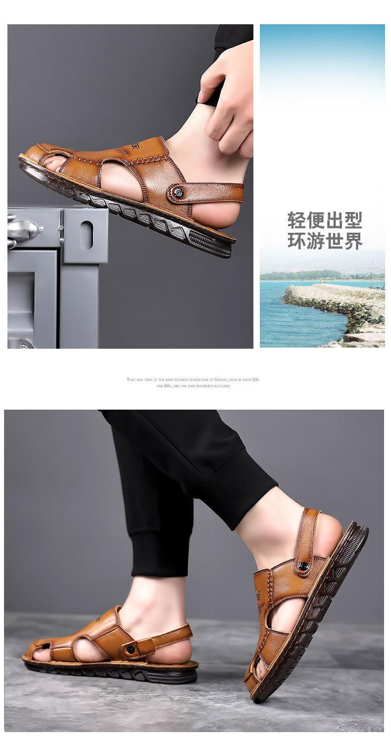 Zapatos de Hombre 2025 Verano Cuero Genuino Suela de Tendón de Res Sandalias Sandalias de Hombre con Puntera Descubierta para Verano Casual Exterior Antideslizante