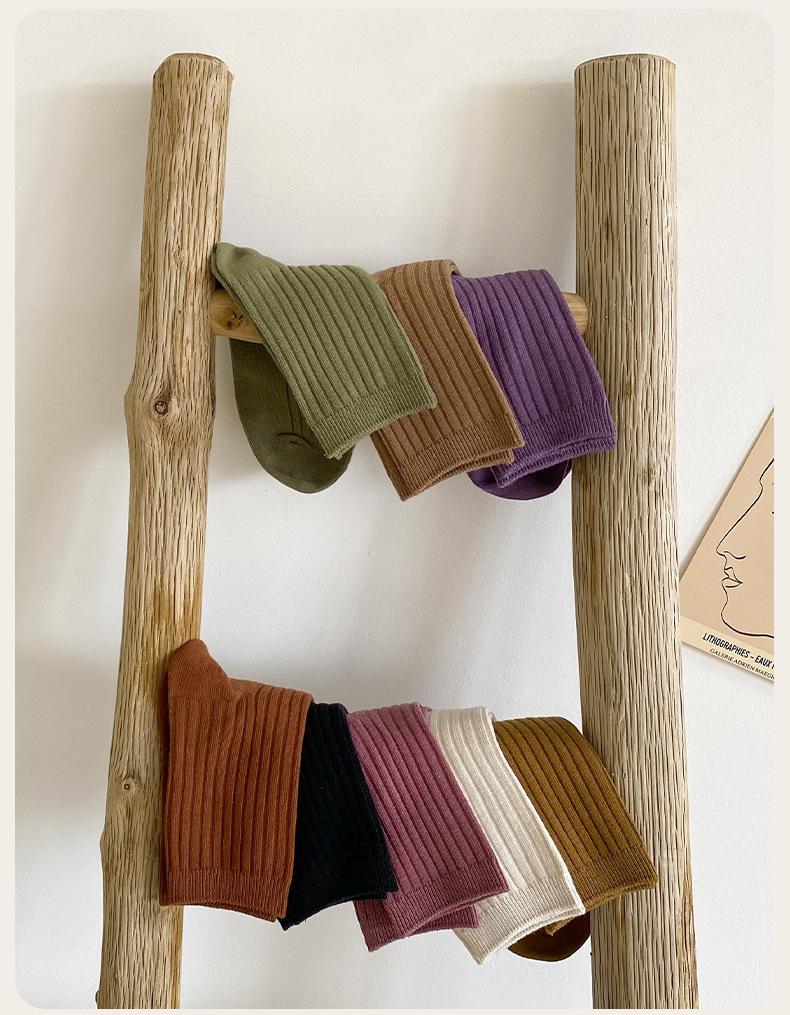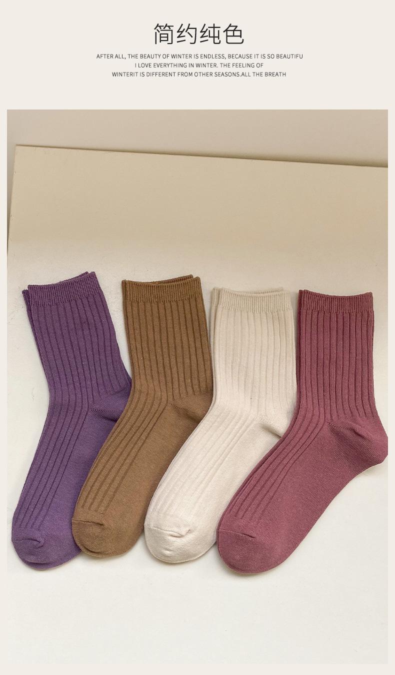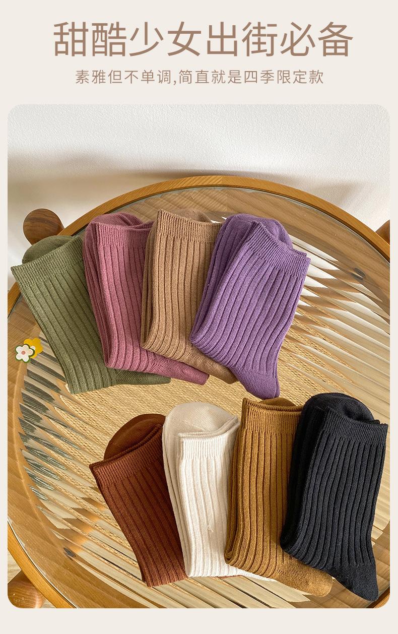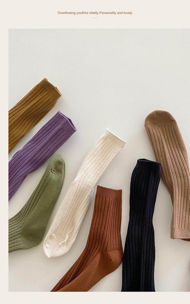 Calcetines de color puro para mujer, estilo coreano, para otoño e invierno, de media pantorrilla, de algodón, sencillos, de estilo japonés, para mujer