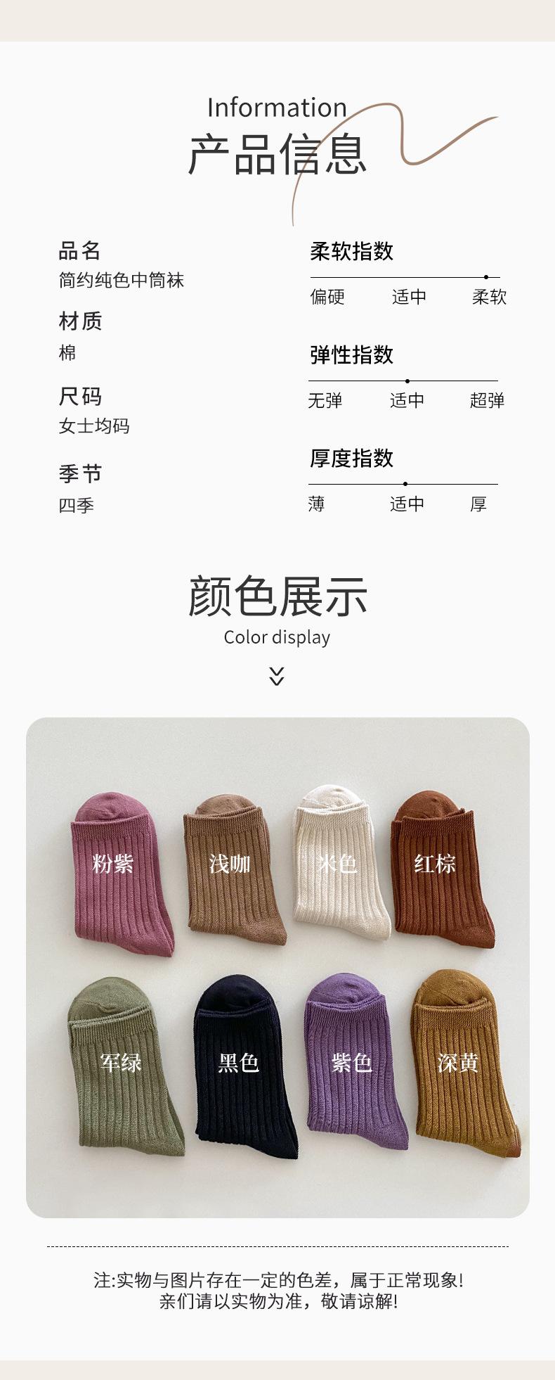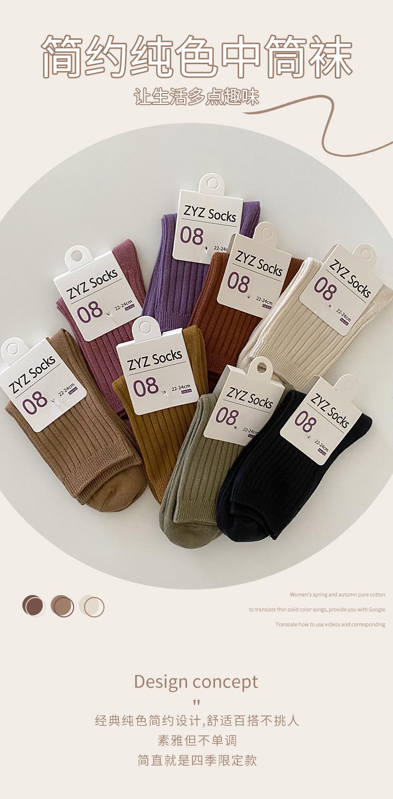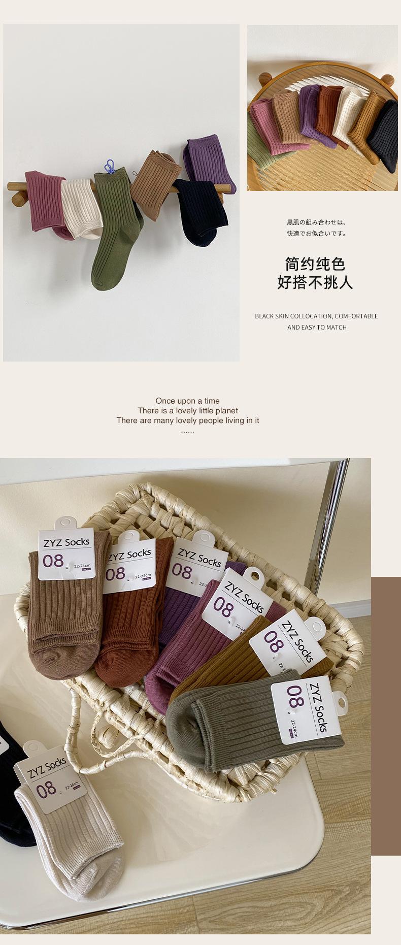 Calcetines de color puro para mujer, estilo coreano, para otoño e invierno, de media pantorrilla, de algodón, sencillos, de estilo japonés, para mujer