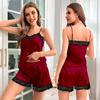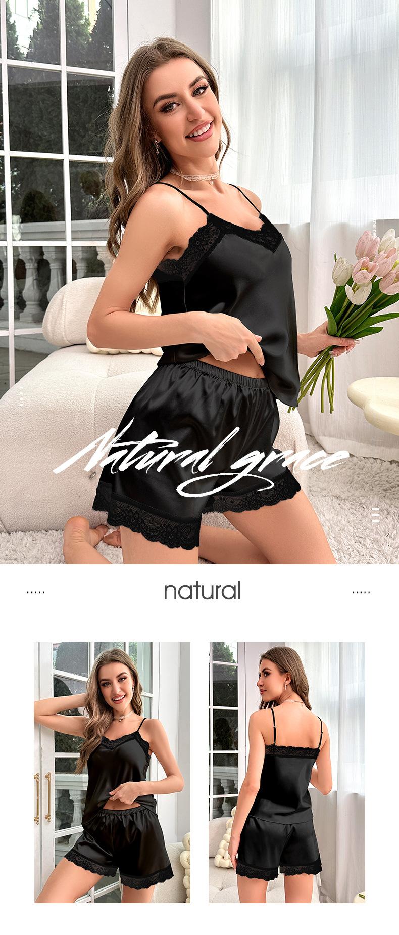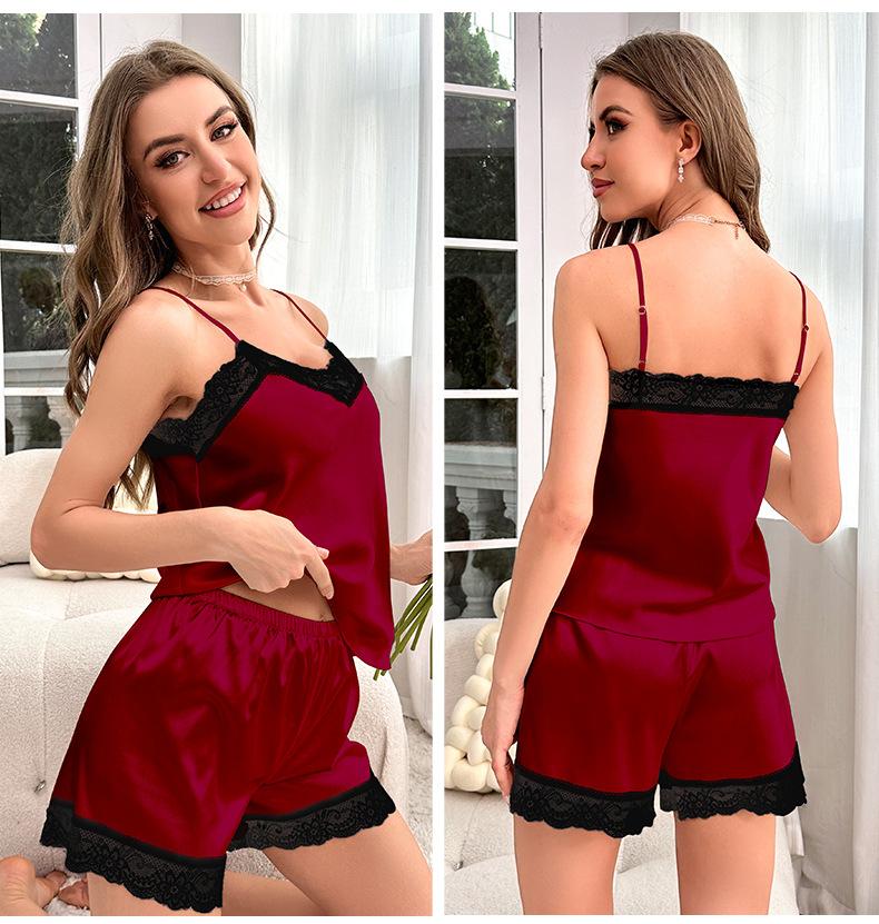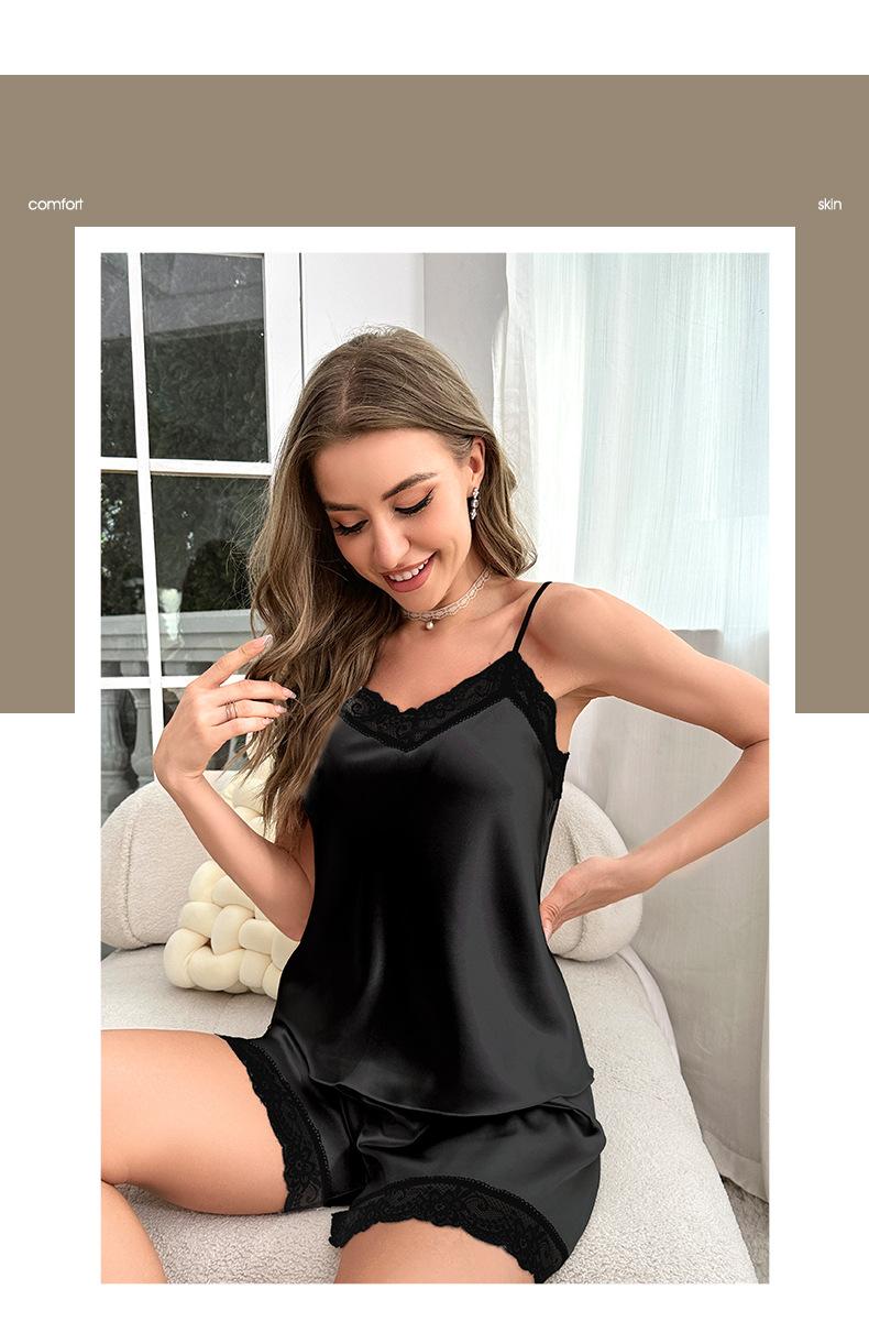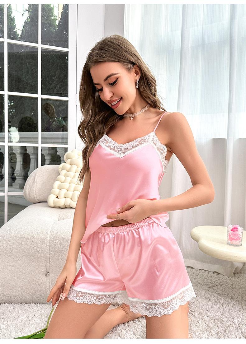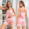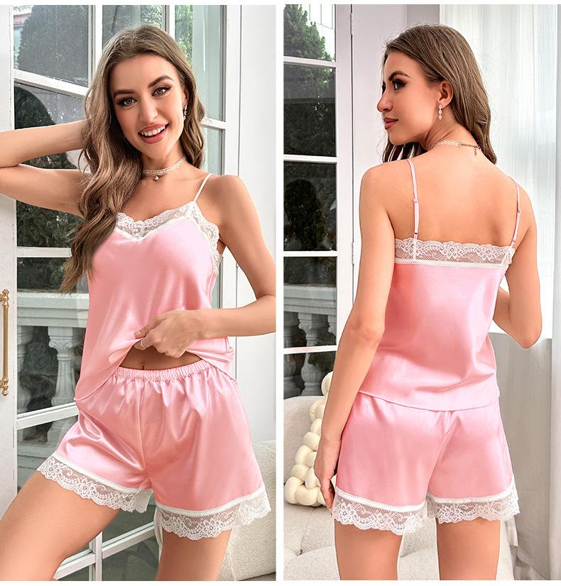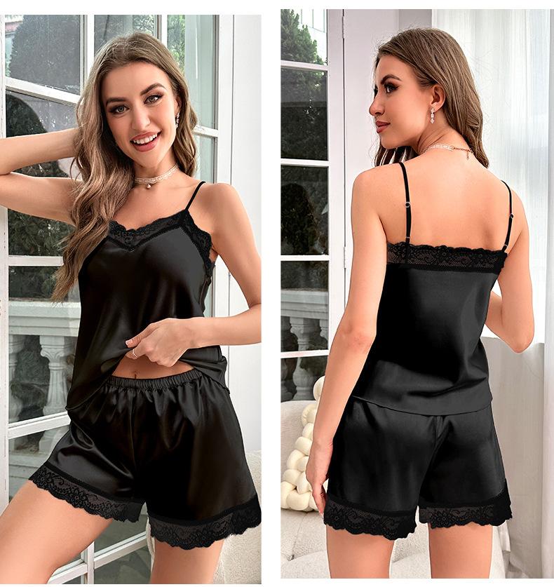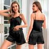 Yaoting Amazon nueva ropa de casa para damas satén encaje tirantes chaleco pijama mujer verano conjunto de shorts 3159
