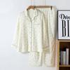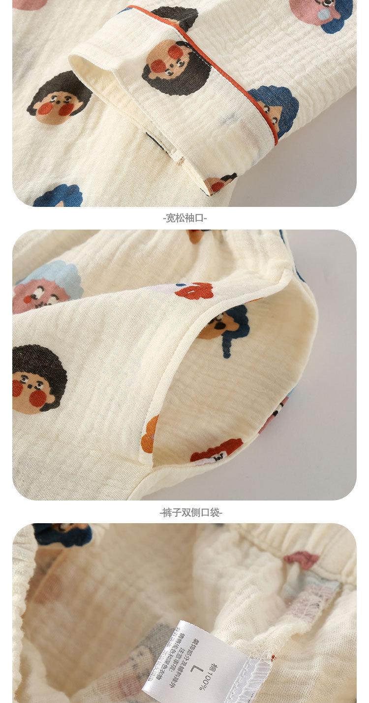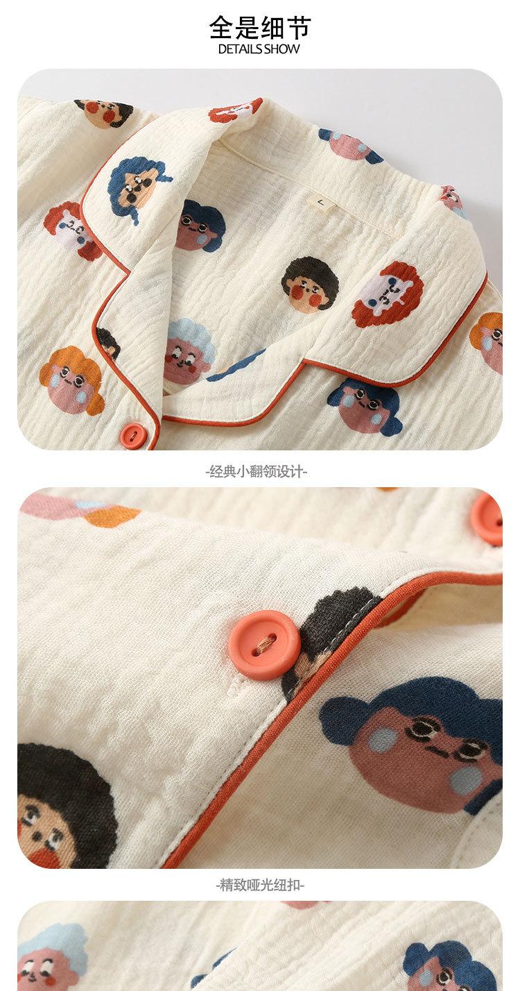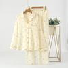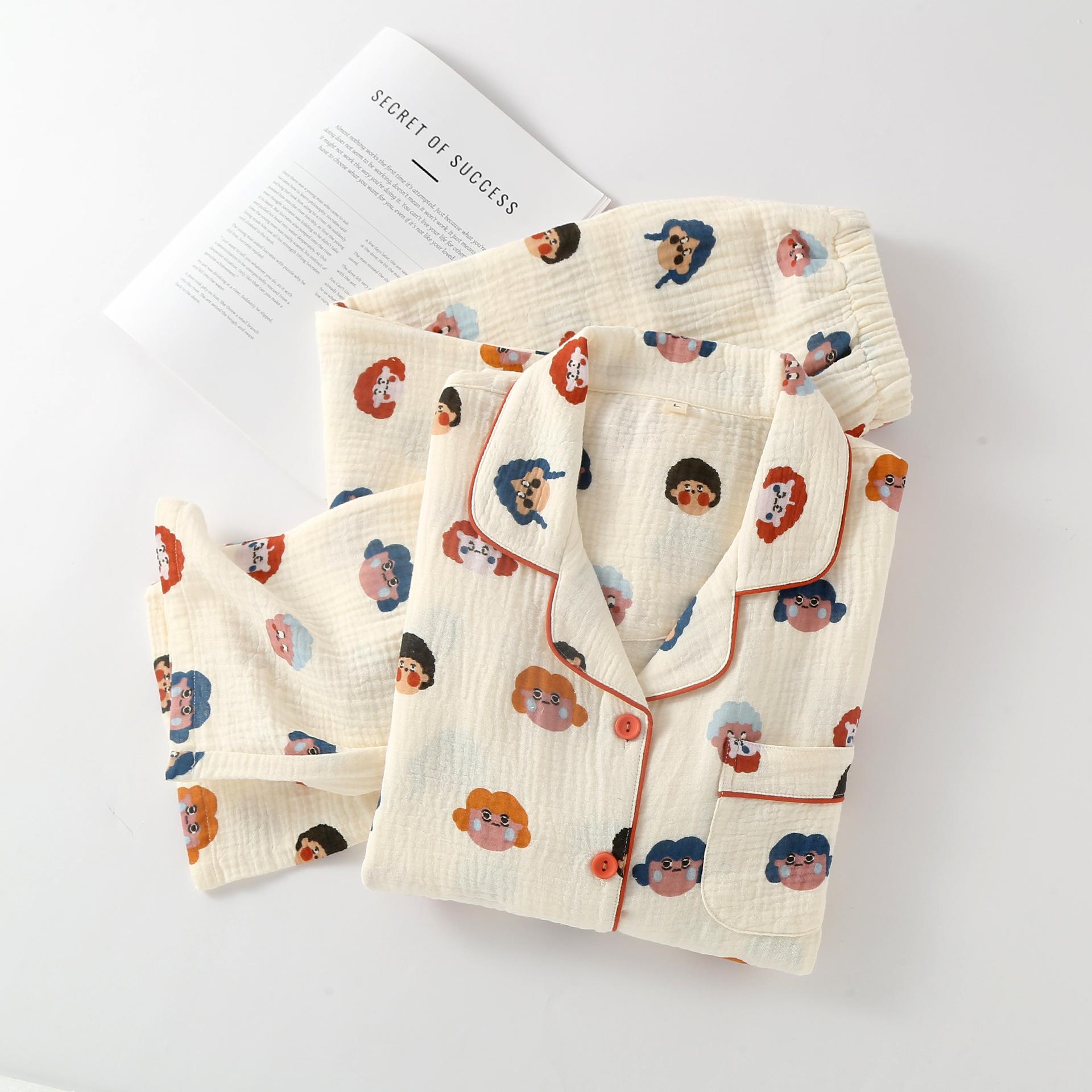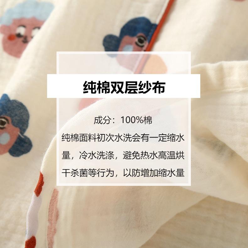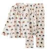 Pijama de Algodón de Doble Gasa con Dibujos Animados Lindos para Mujer Primavera y Otoño Verano Delgado Manga Larga Algodón Traje de Ropa para el Hogar