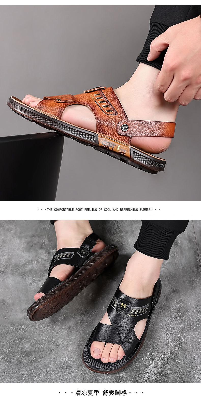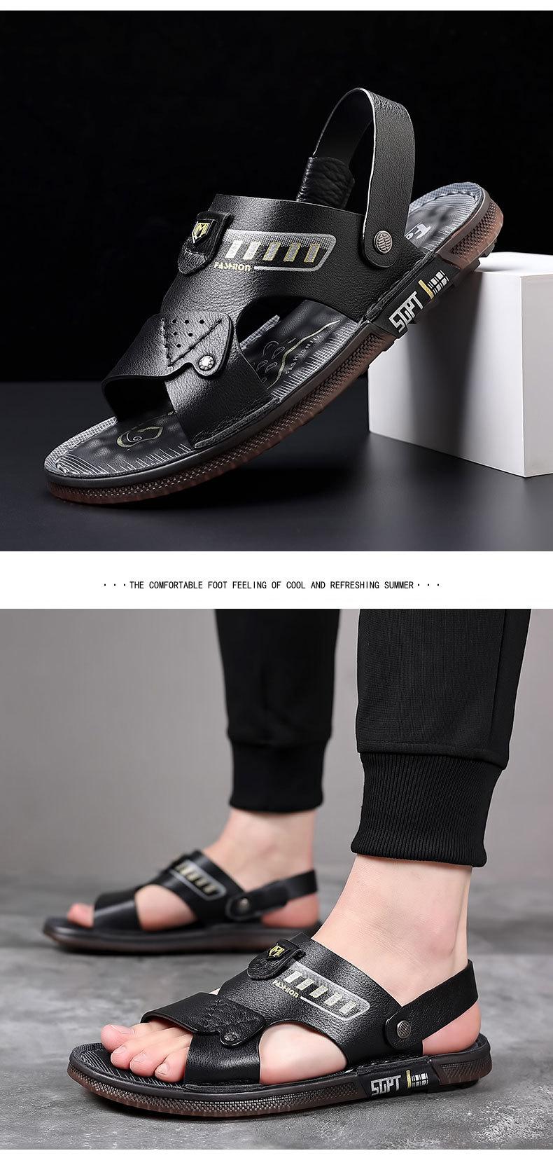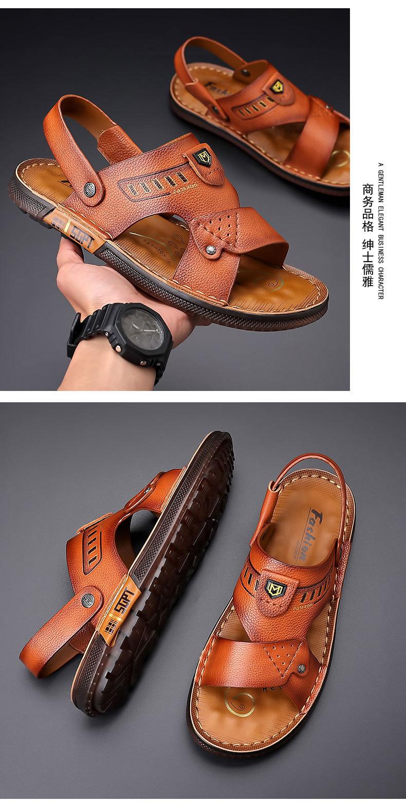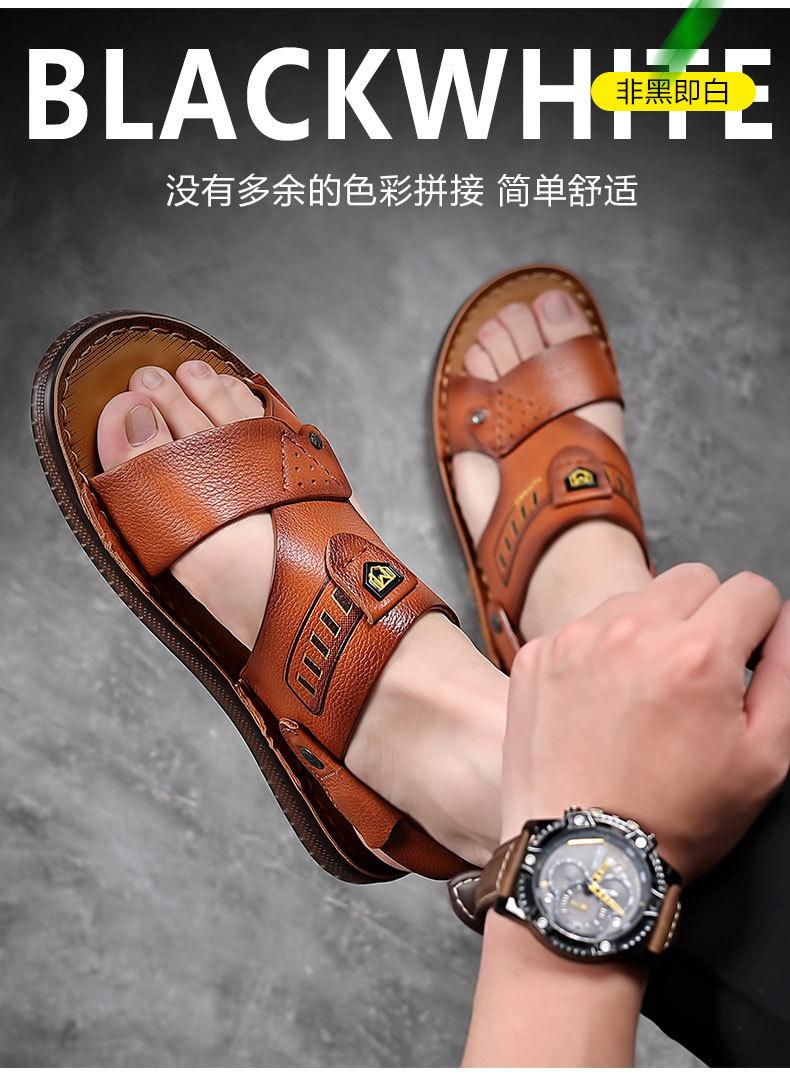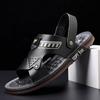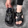 Sandalias de piel de vaca de primera capa para hombre, de cuero genuino, para playa, verano, de doble uso, cómodas, informales, antideslizantes, para uso exterior.