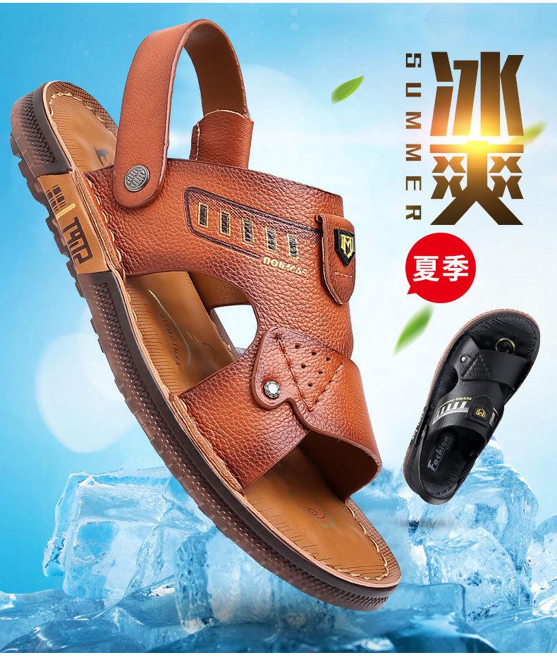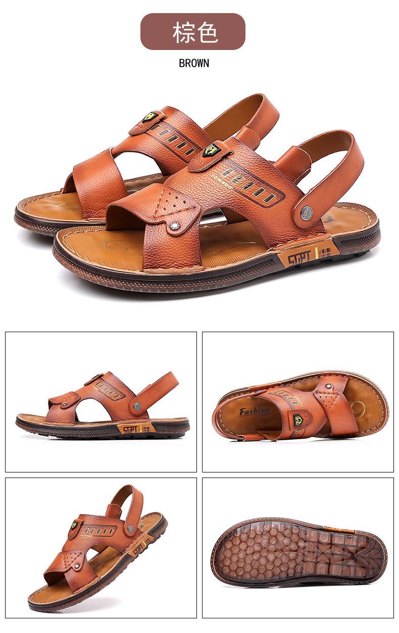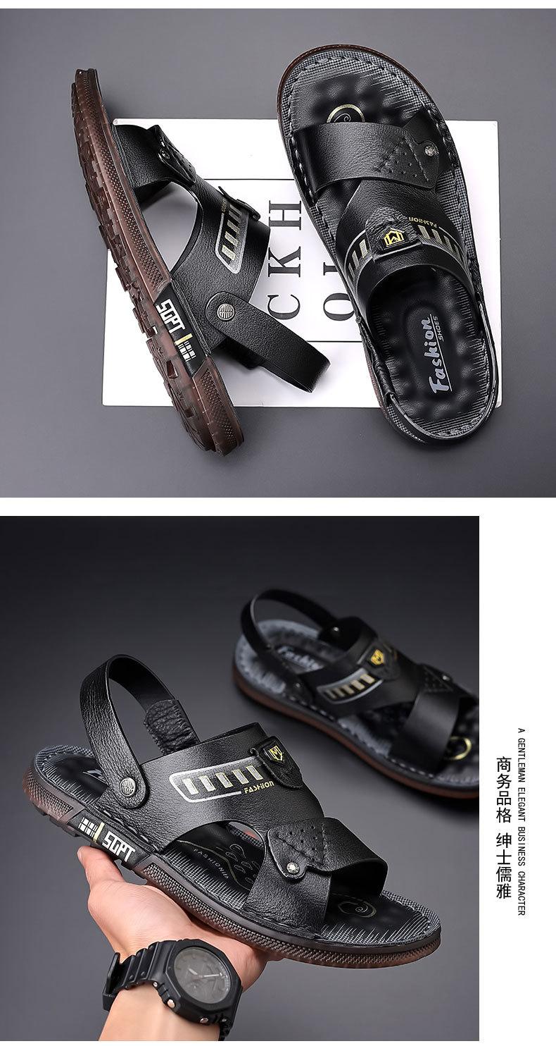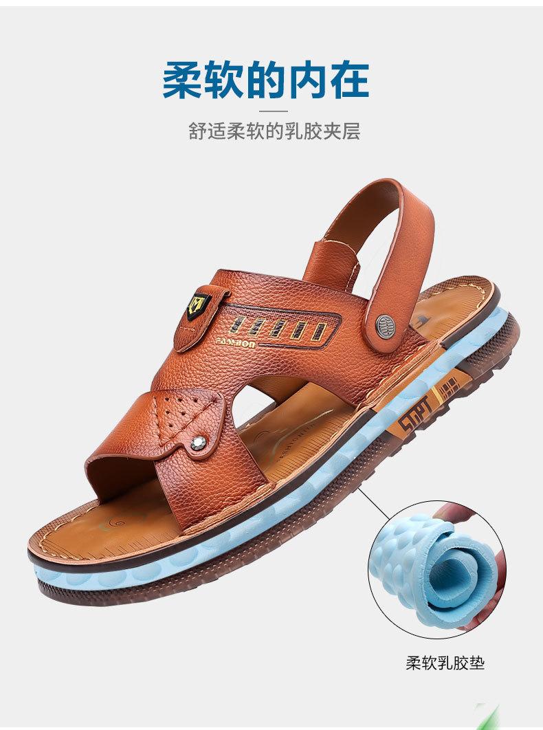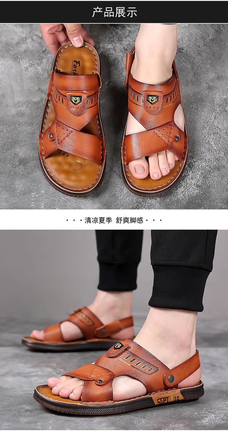 Sandalias de piel de vaca de primera capa para hombre, de cuero genuino, para playa, verano, de doble uso, cómodas, informales, antideslizantes, para uso exterior.