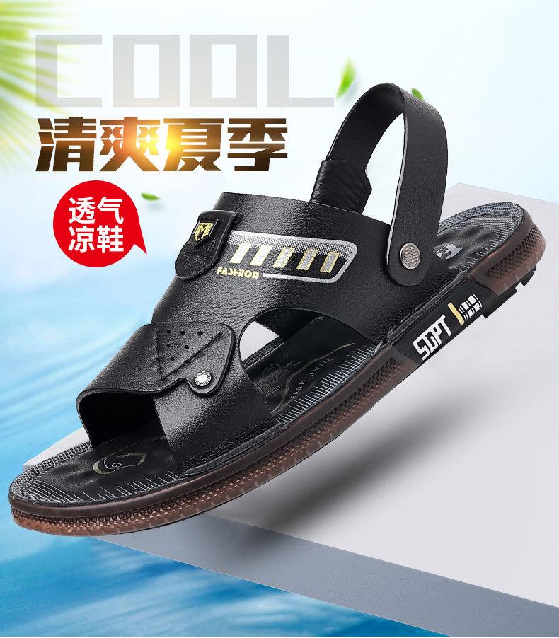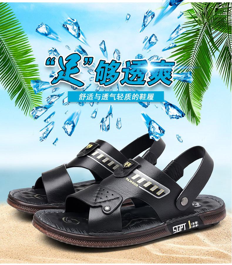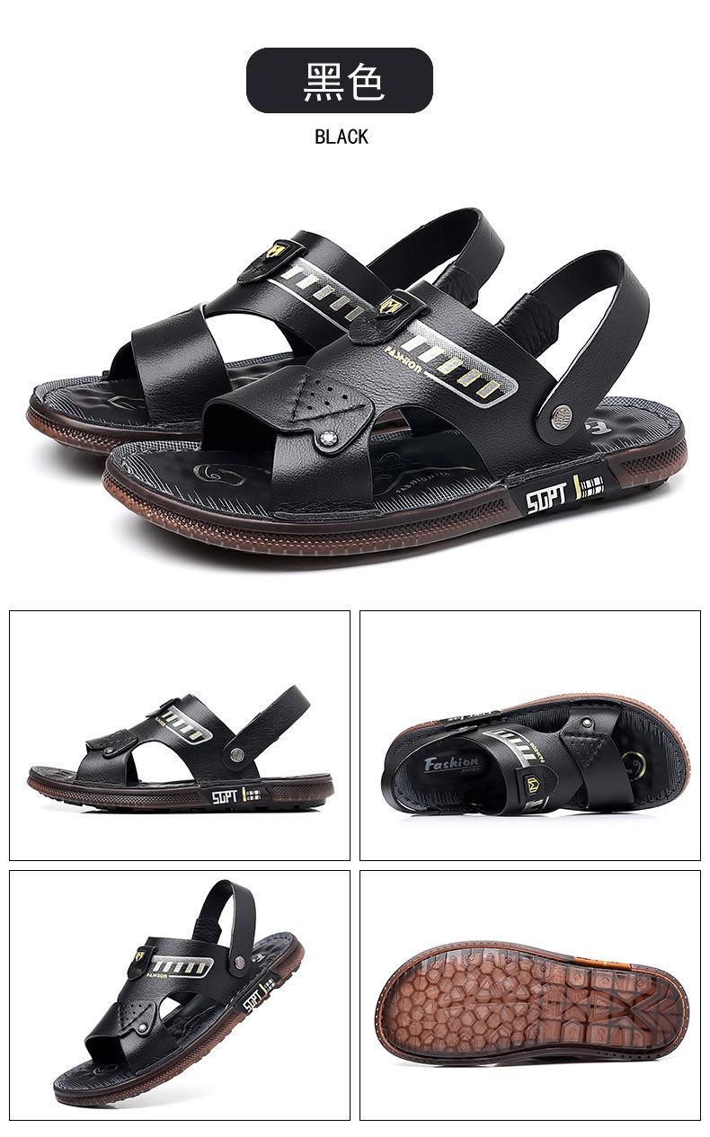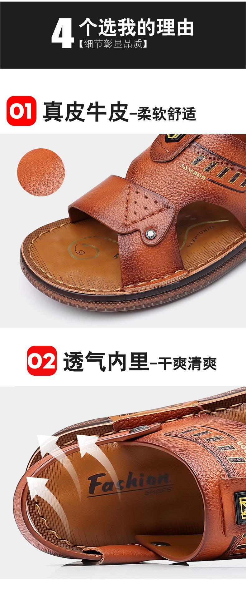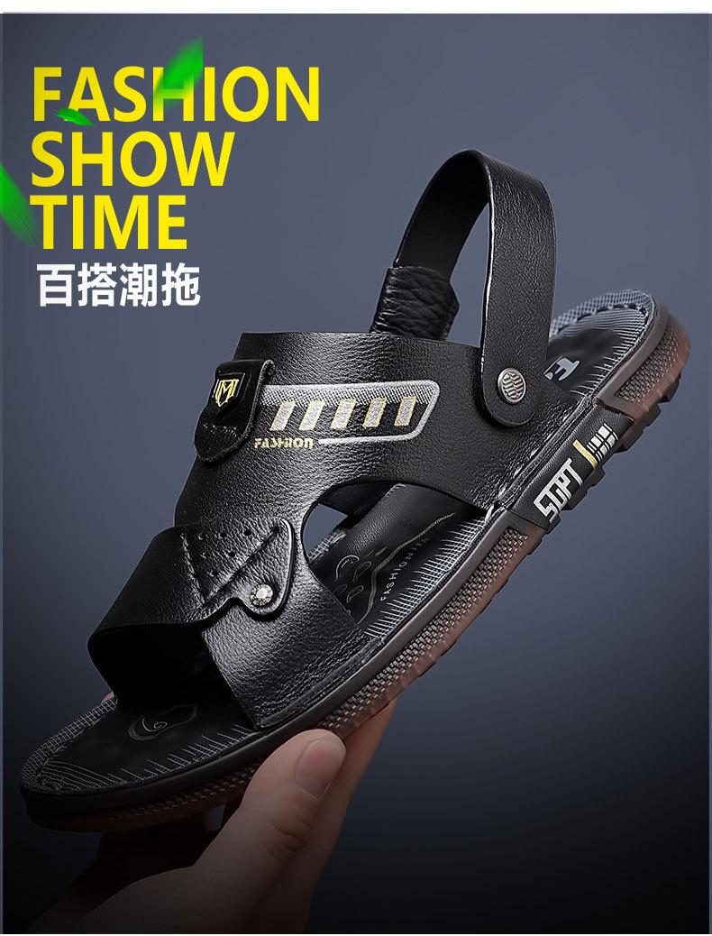 Sandalias de piel de vaca de primera capa para hombre, de cuero genuino, para playa, verano, de doble uso, cómodas, informales, antideslizantes, para uso exterior.
