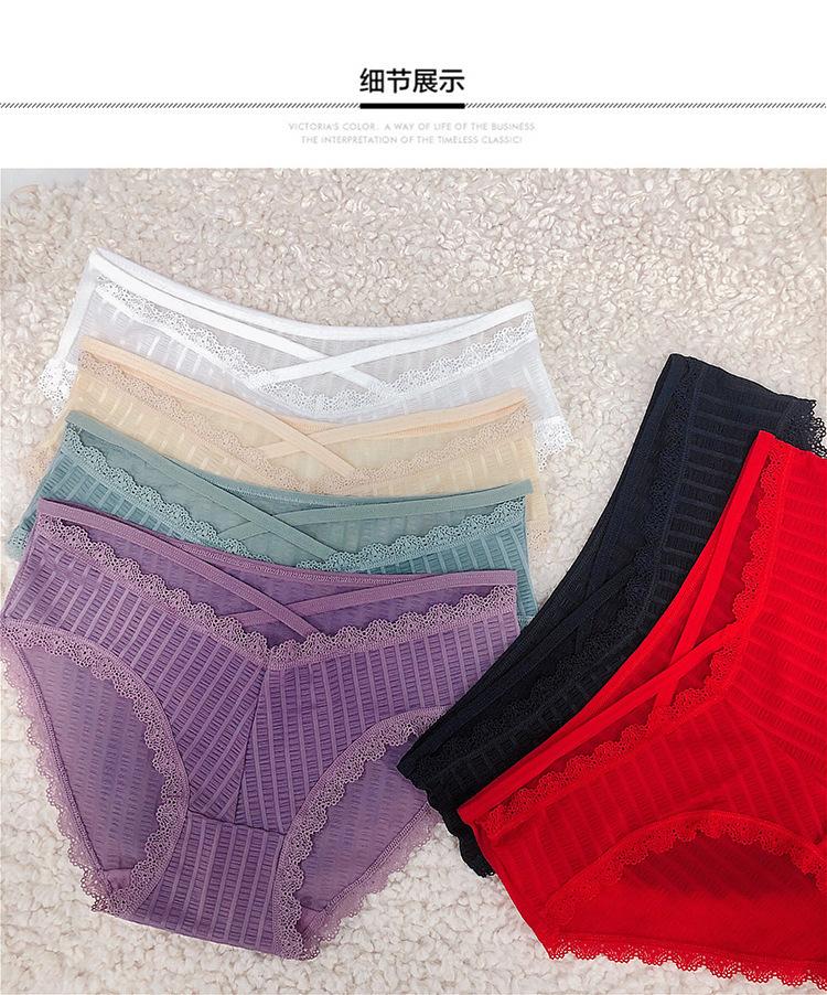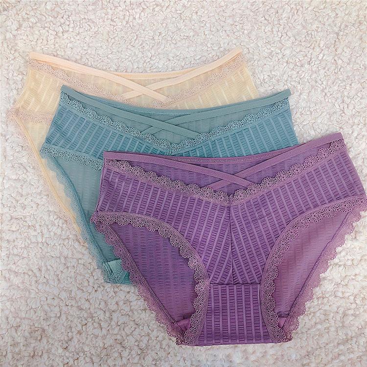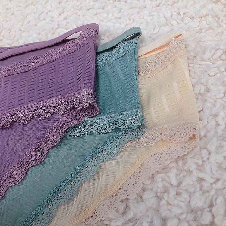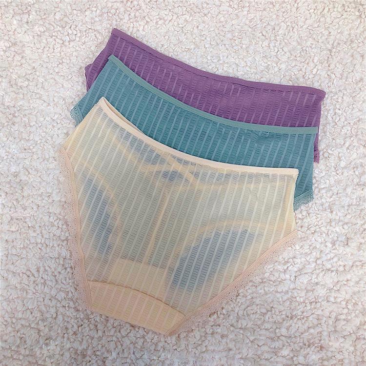 Ropa interior sexy de noche larga con borde de encaje para mujer, bragas de seda de hielo transpirables de cintura baja 3068