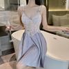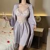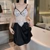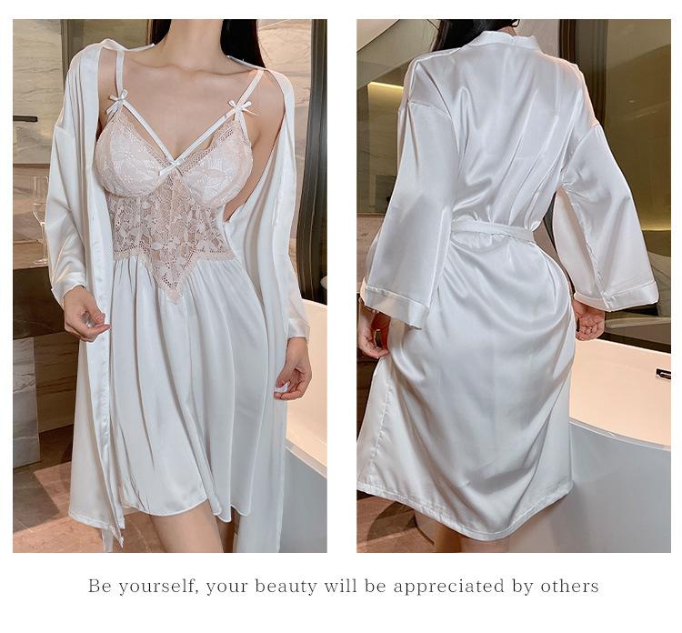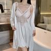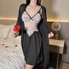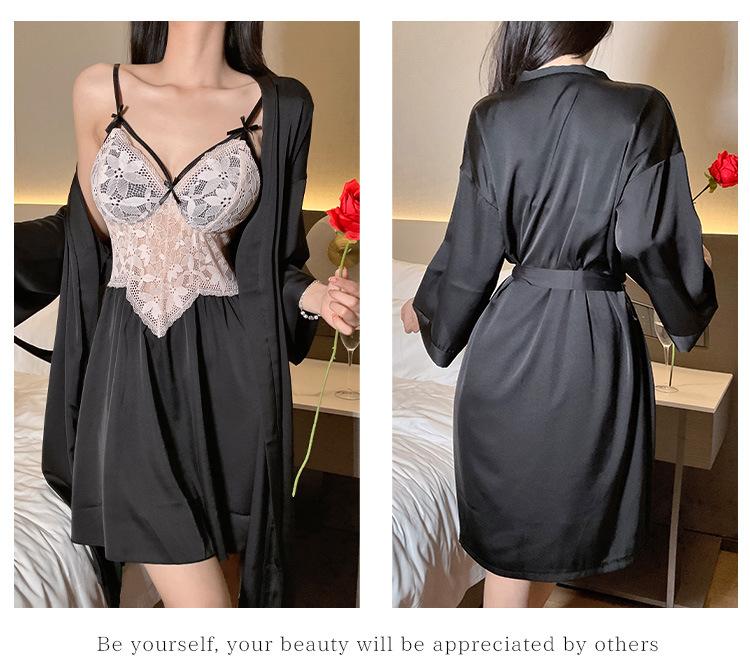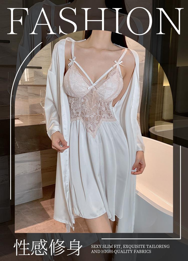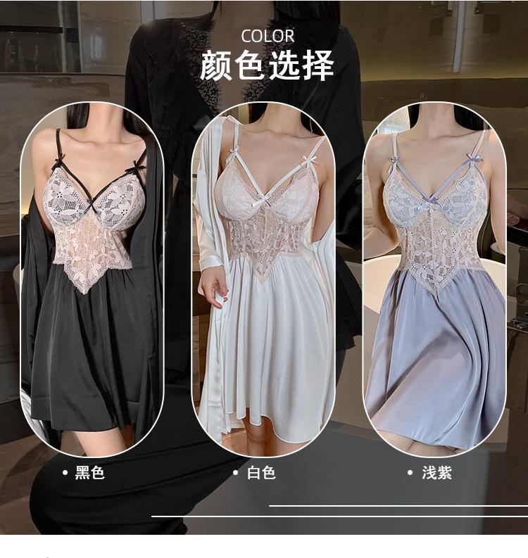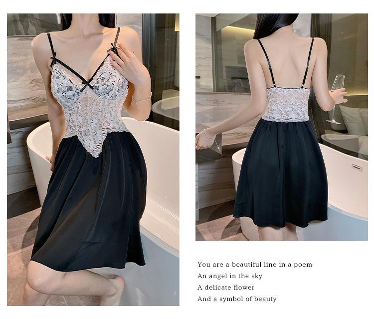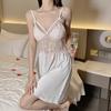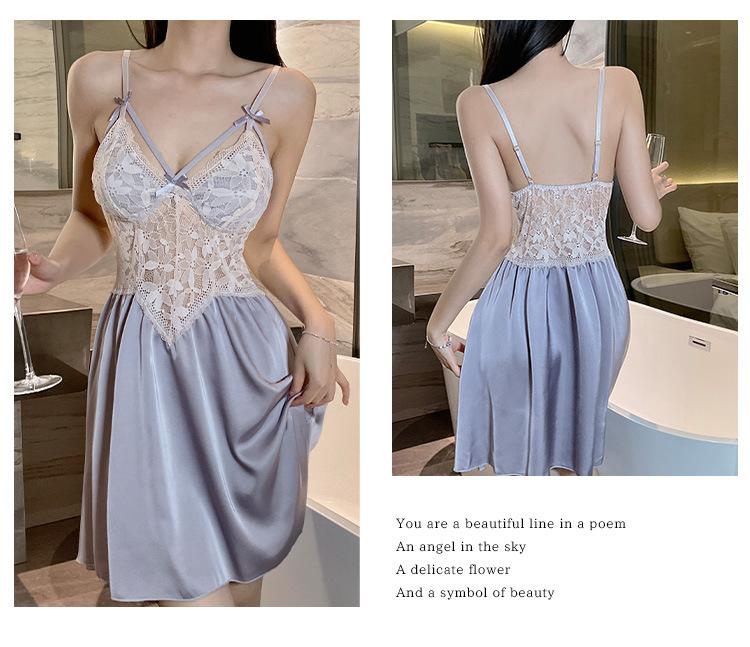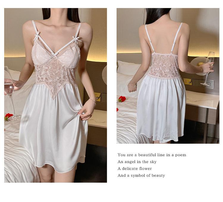 Hermoso camisón sexy de encaje con costura de satén nuevo de hilo puro deseo pijamas para el hogar con escote en V profundo sin espalda ropa para el hogar traje