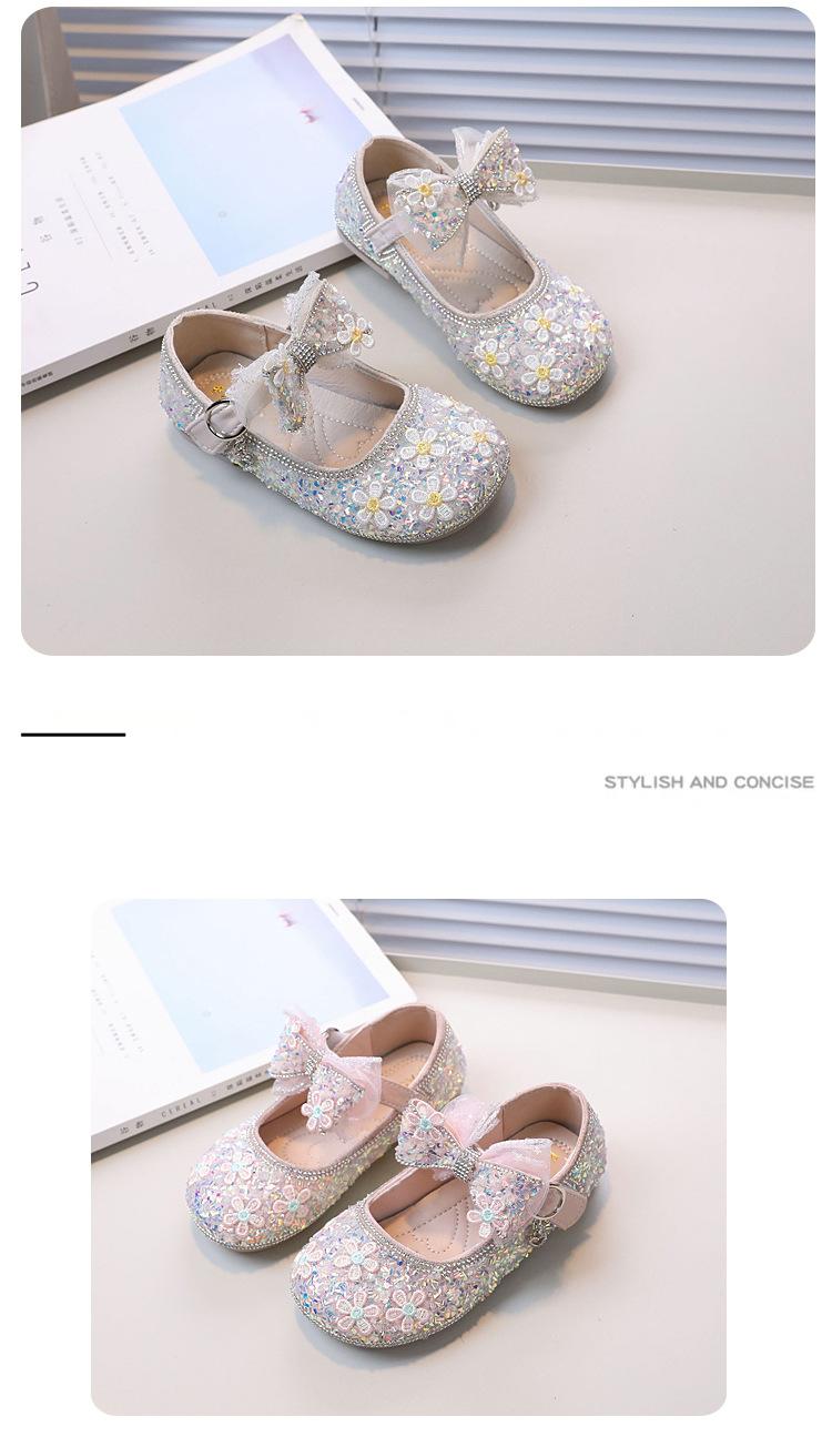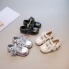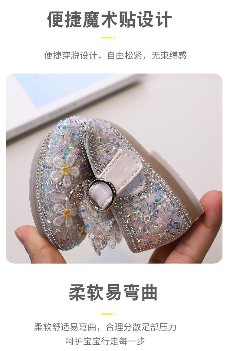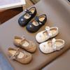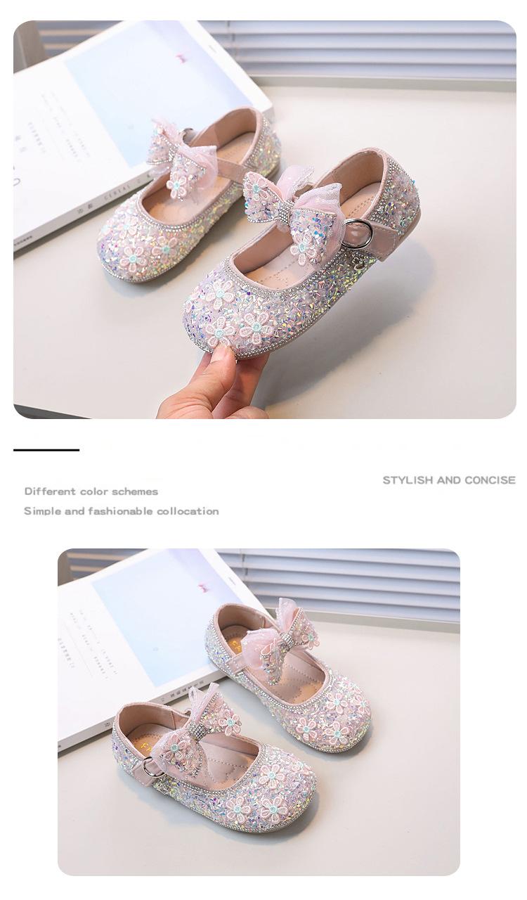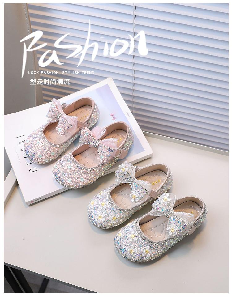 Zapatos de cuero pequeños para niñas, otoño 2024, de una sola capa, recién llegados, con lazo de diamantes de imitación, zapatos de princesa para bebés, zapatos de cristal brillante.