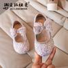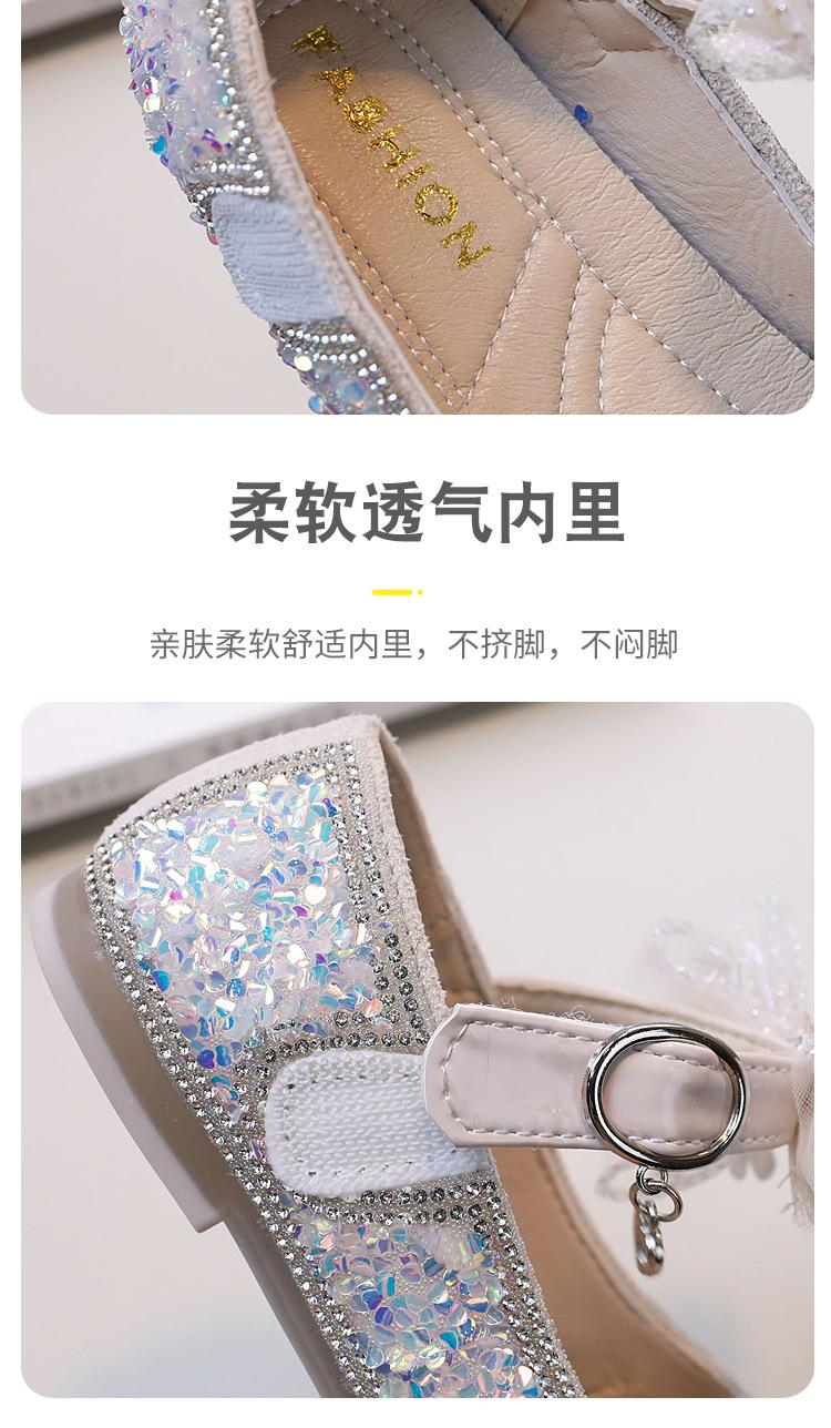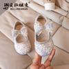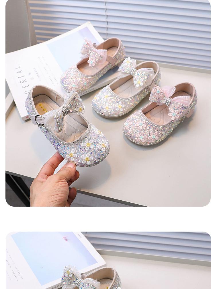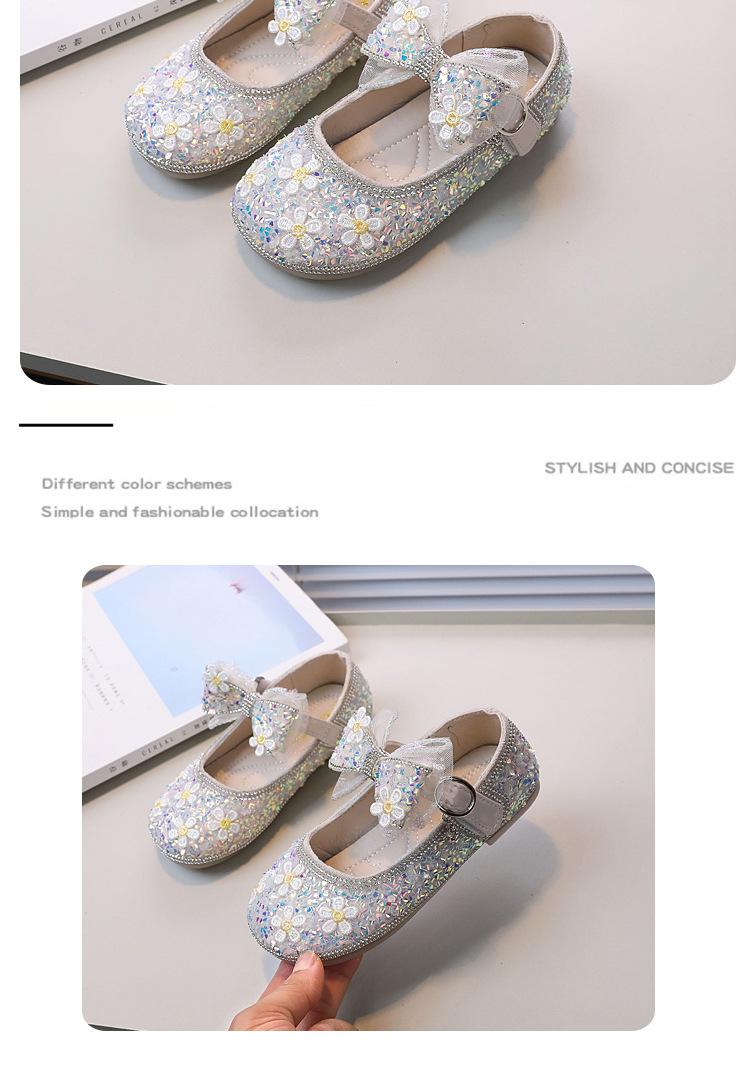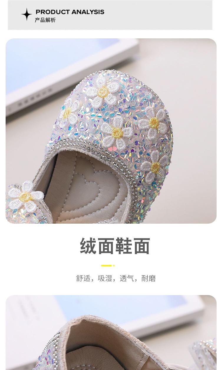 Zapatos de cuero pequeños para niñas, otoño 2024, de una sola capa, recién llegados, con lazo de diamantes de imitación, zapatos de princesa para bebés, zapatos de cristal brillante.