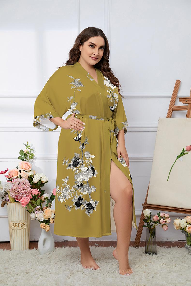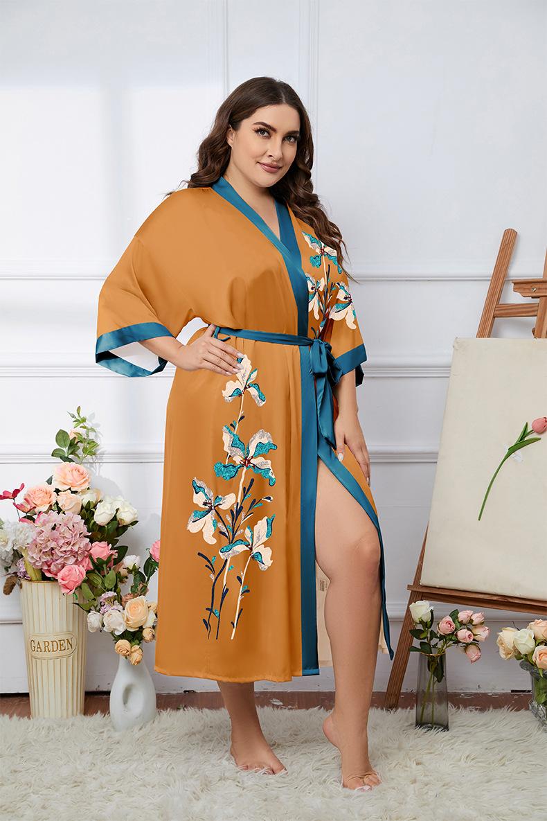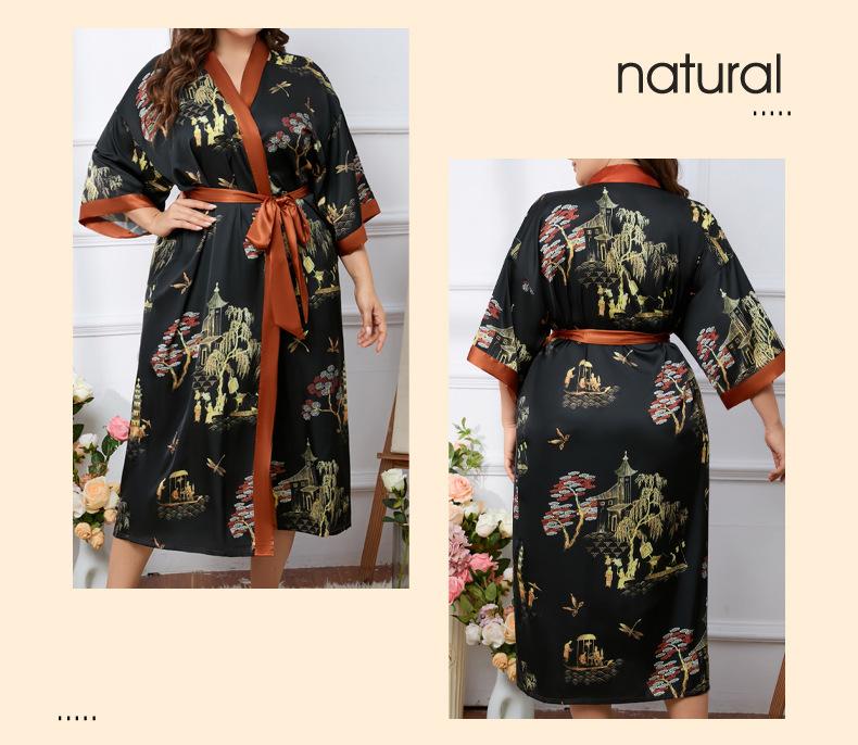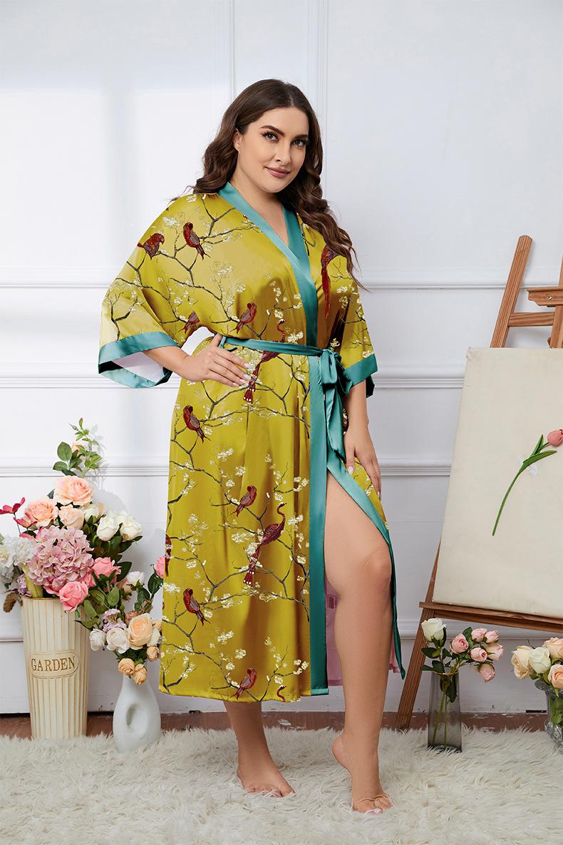 Tallas grandes Pijama Yao Ting Nuevo Pijama de Satén para Mujer Verano Lujo Ligero Seda Helada Camisón Fresco Bata Ropa para el Hogar 2669