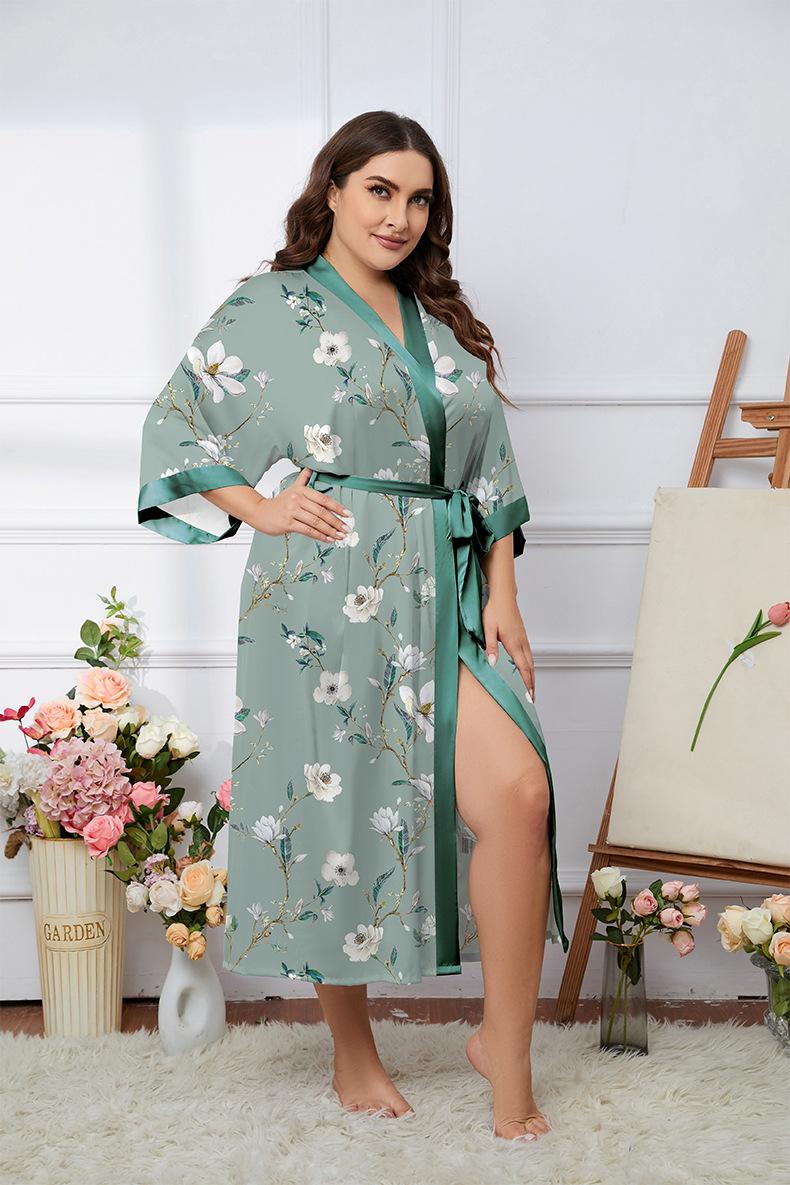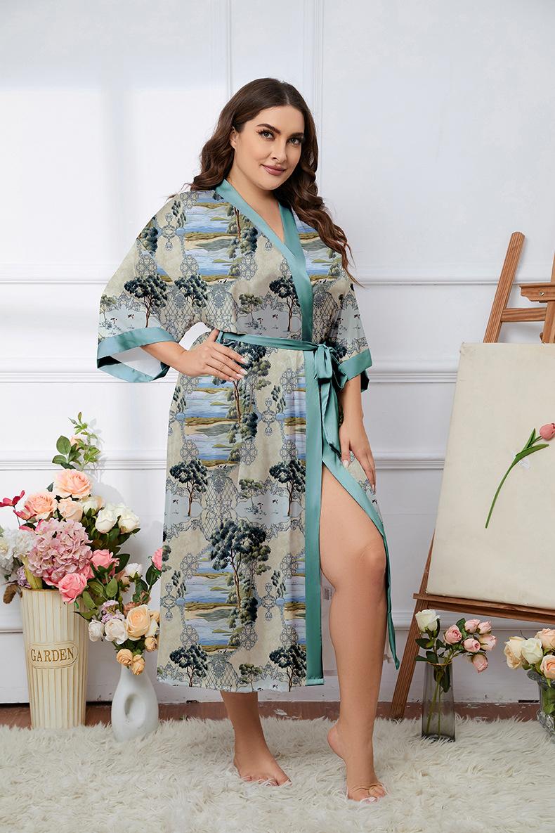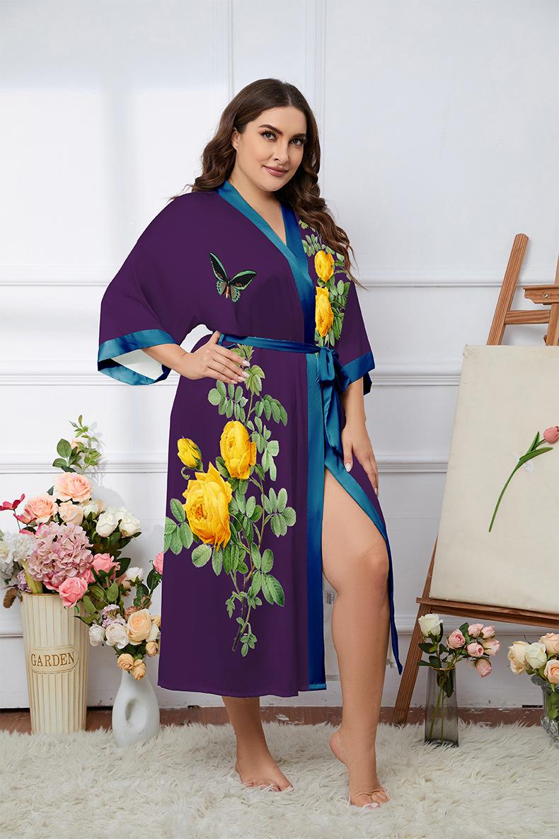 Tallas grandes Pijama Yao Ting Nuevo Pijama de Satén para Mujer Verano Lujo Ligero Seda Helada Camisón Fresco Bata Ropa para el Hogar 2669