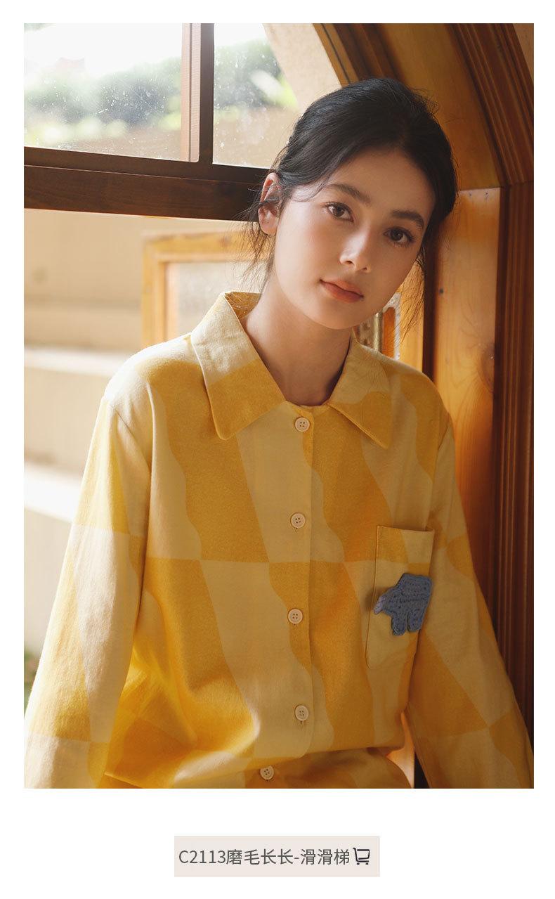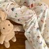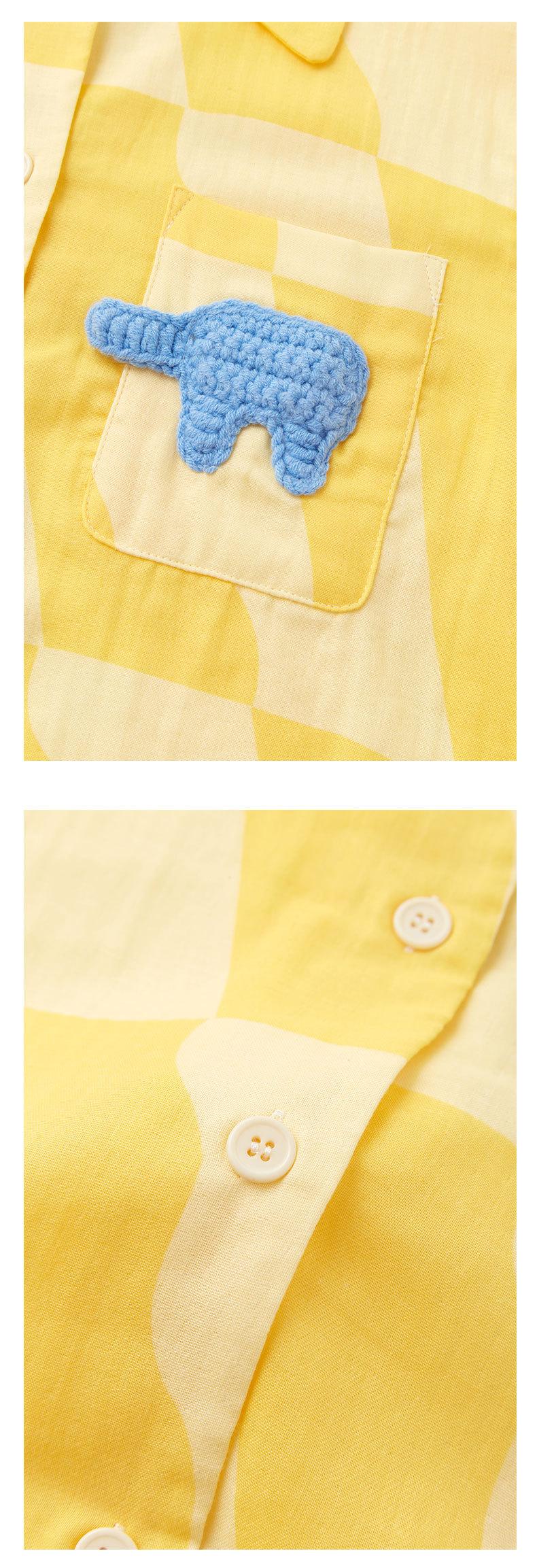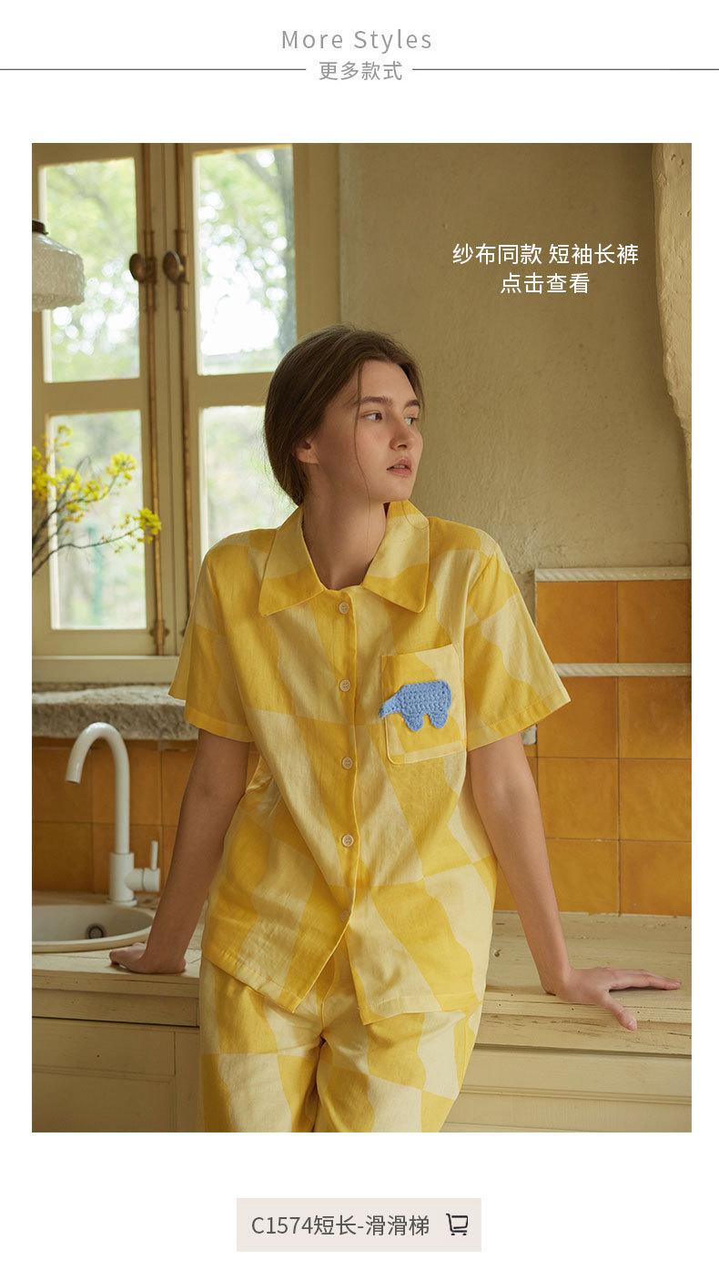 Nuevo Algodón Gasa Doble Capa Solapa Bolsillo Ropa para el Hogar Pijama de Manga Corta Bordado de Elefante de Dibujos Animados