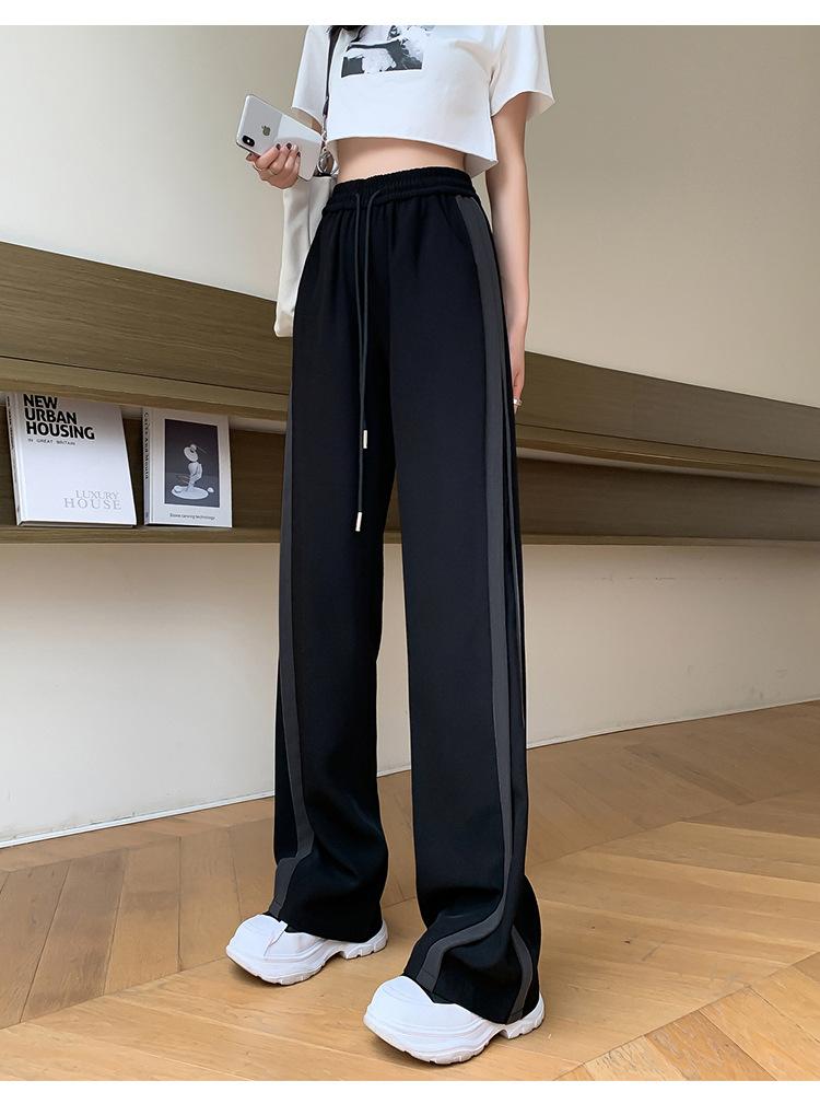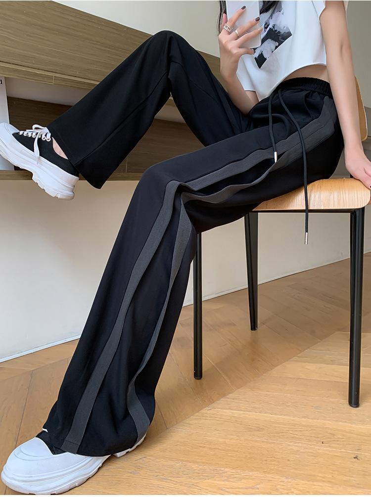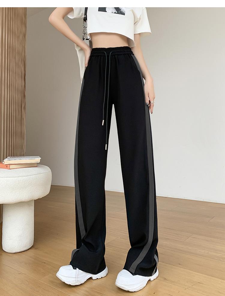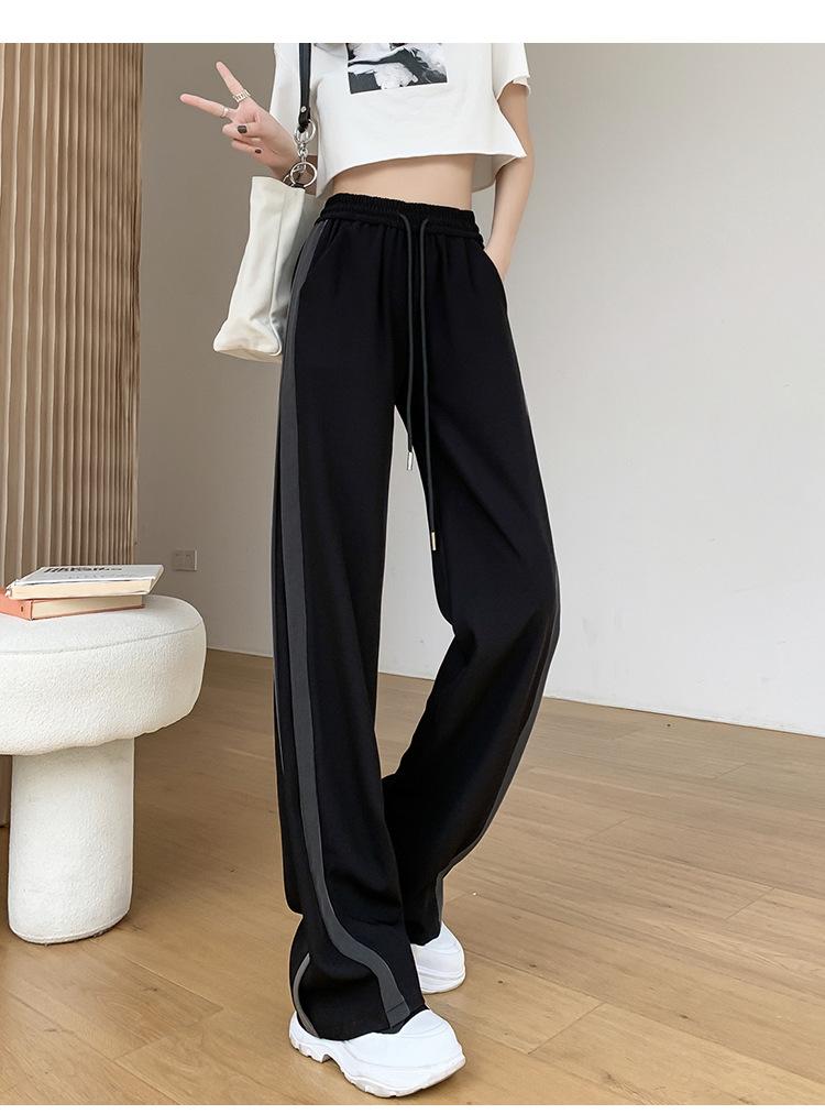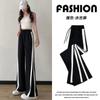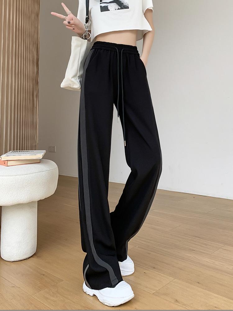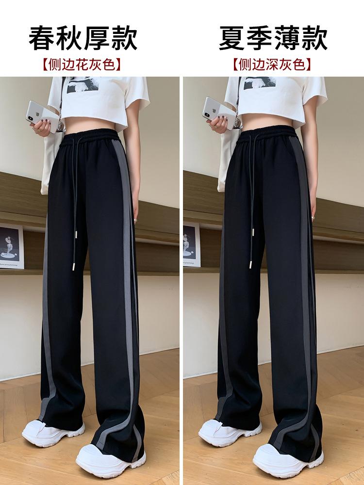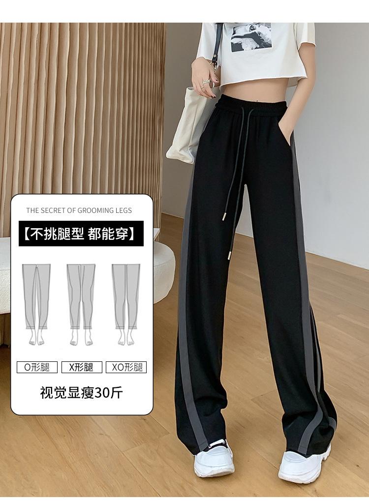 Pantalones deportivos de verano para mujer, nuevos, holgados, de cintura alta, adelgazantes, con rayas laterales, de seda helada, de pierna recta y pierna ancha.
