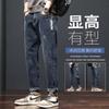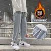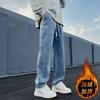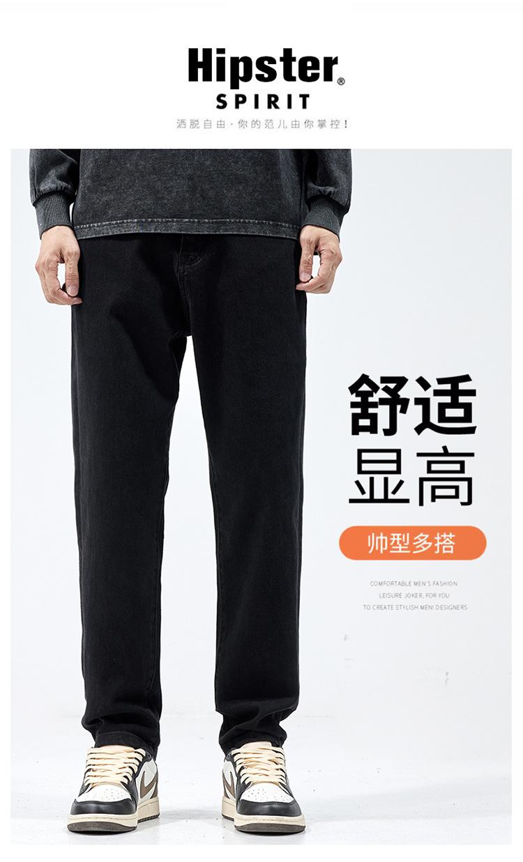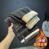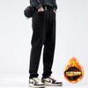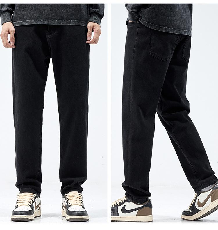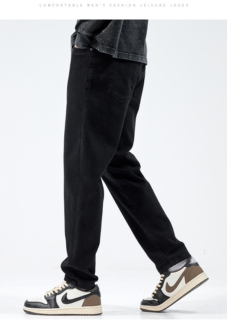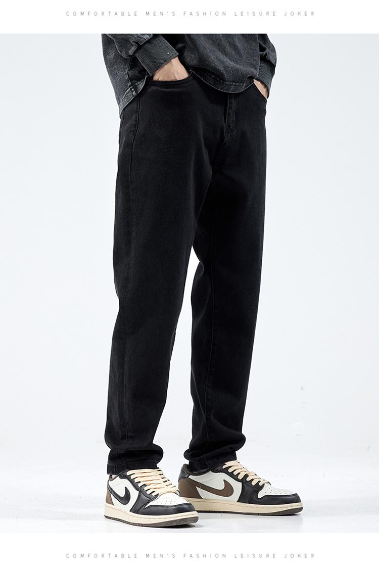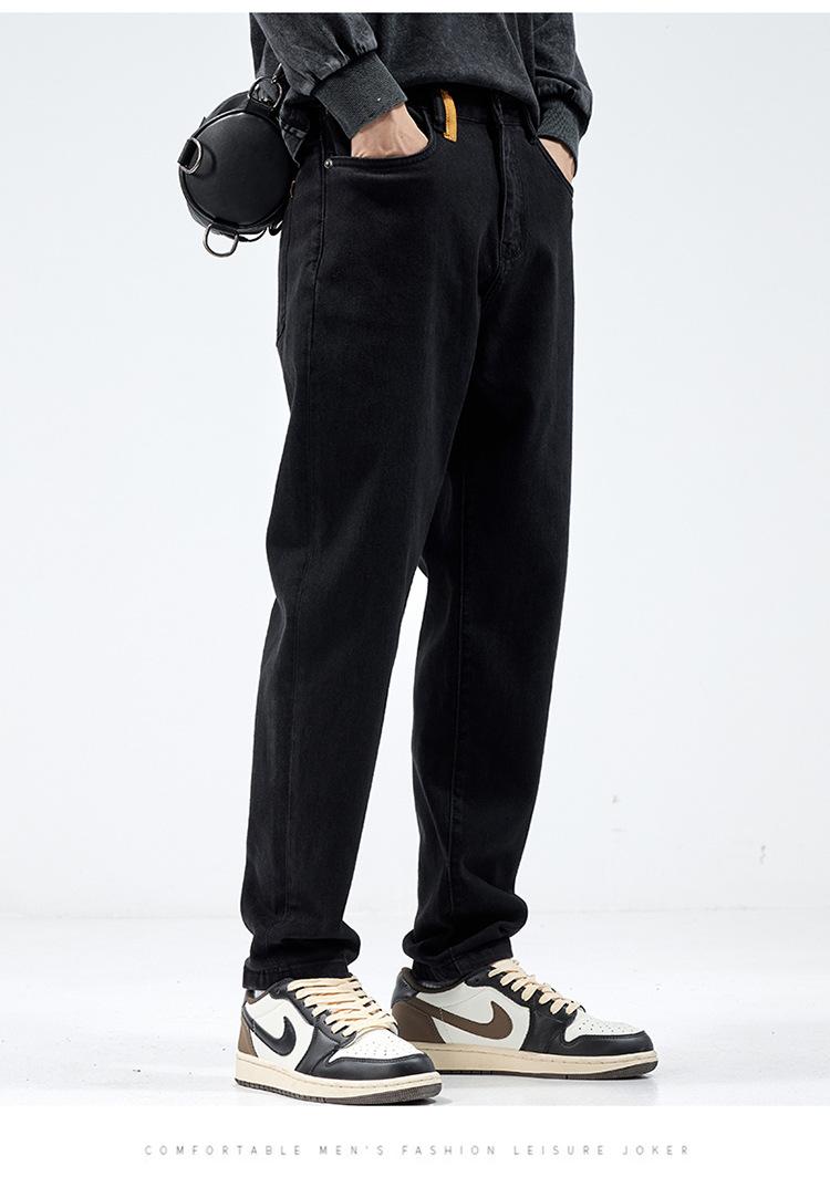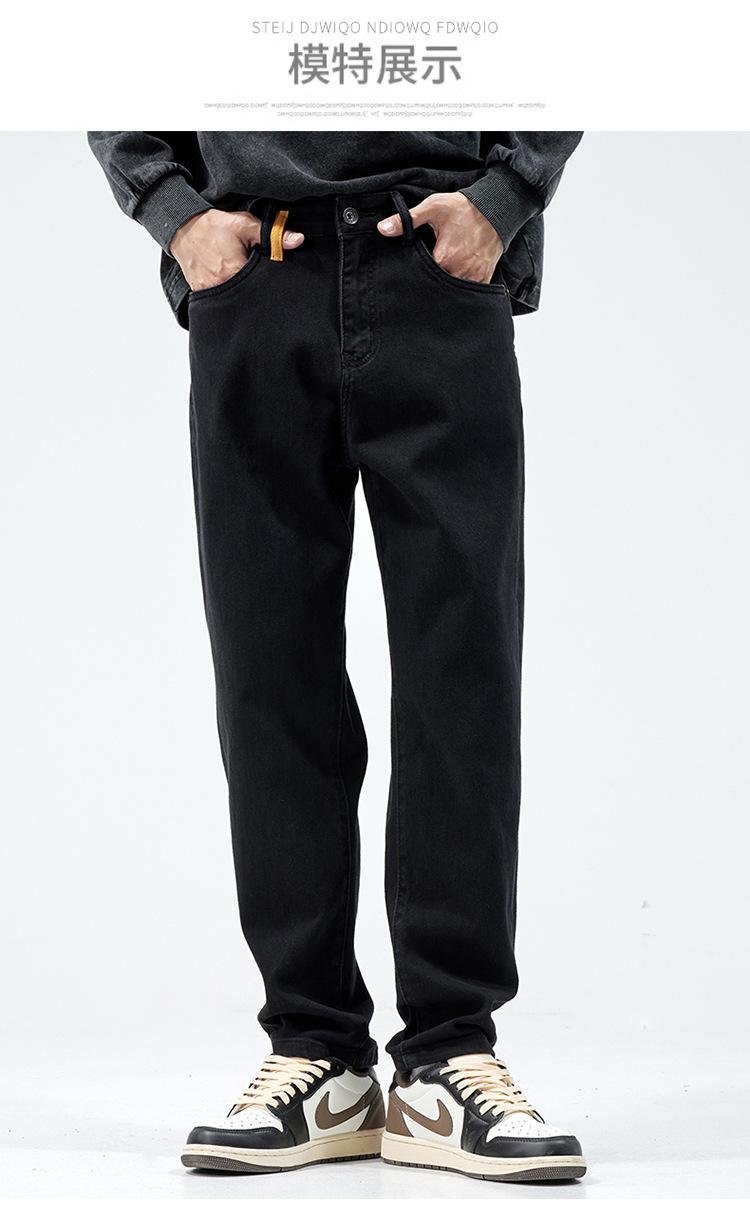 Pantalones vaqueros negros tipo harén con forro polar para hombre, de nueva marca de moda de otoño e invierno, informales, sueltos, gruesos y pequeños, rectos
