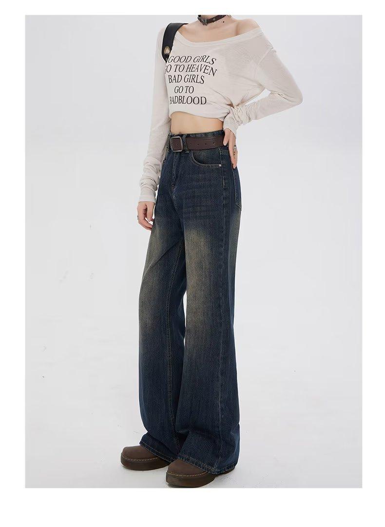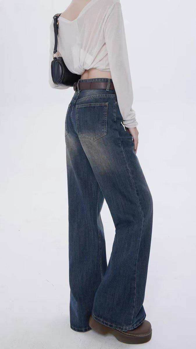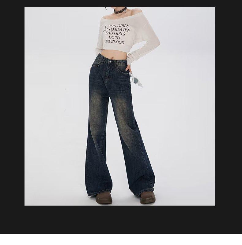 Jeans ajustados para mujer 2024, nuevo estilo americano, cintura alta, adelgazantes, holgados, de pierna ancha, antiadherentes, acampanados