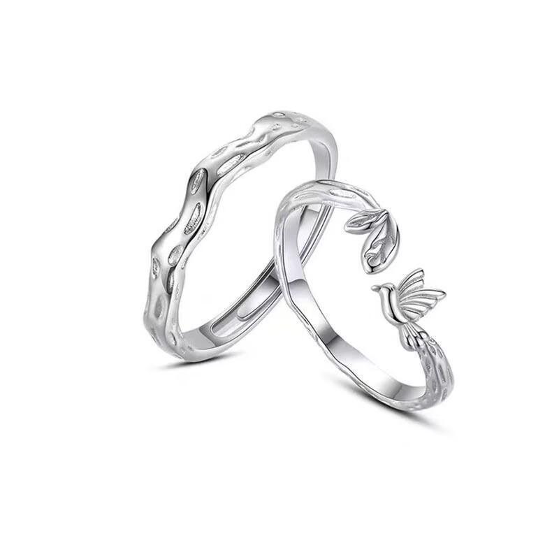 Anillo de eucalipto azul y pájaro para pareja de mujeres y hombres, anillo de pareja no pareja, estudiantes, amor a distancia, ajustable