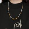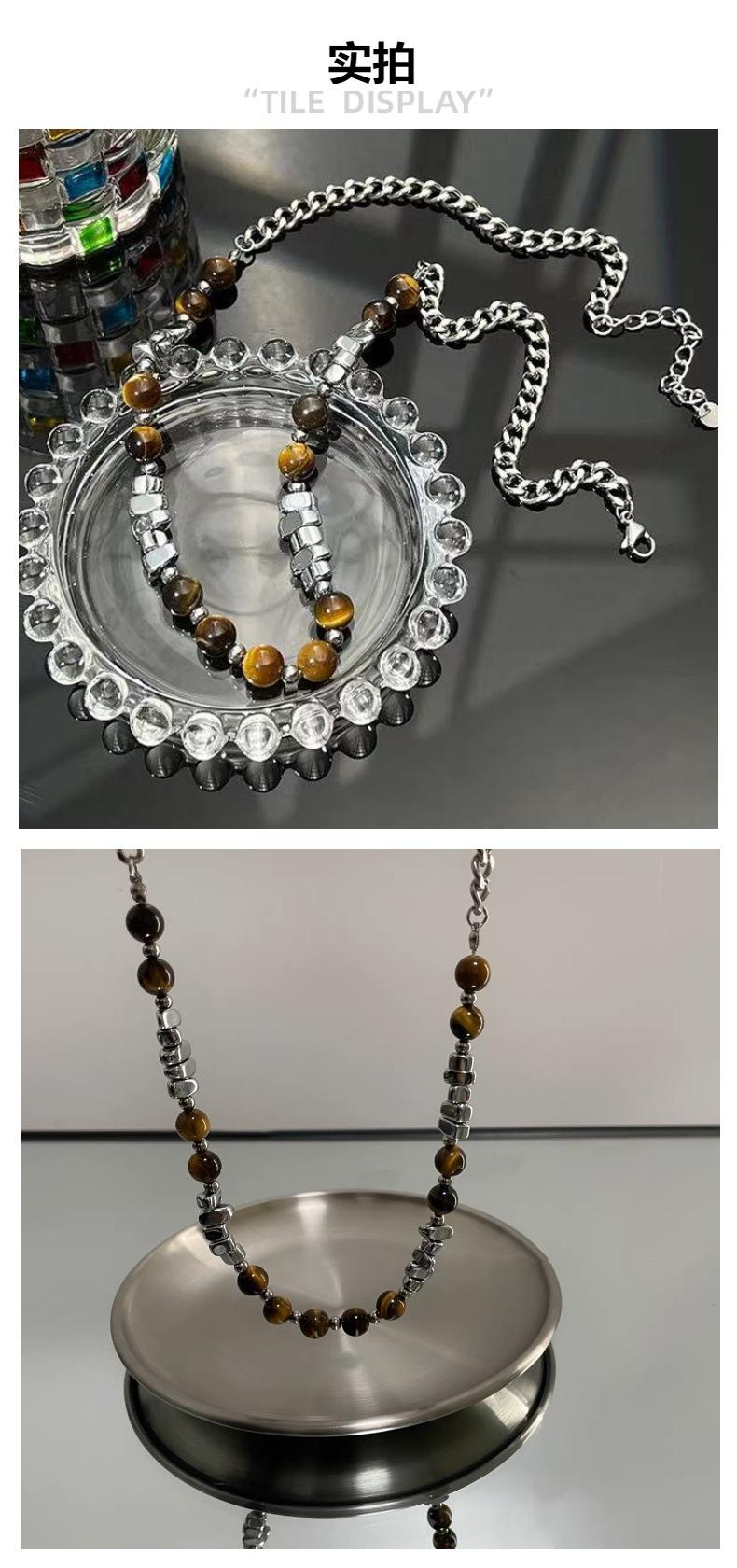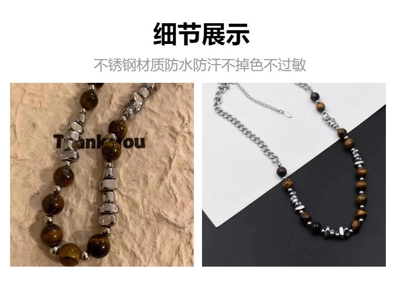Nuevo estilo chino 2023 nuevo otoño e invierno cadena de suéter estilo neutro amarillo natural Piedra Ojo de Tigre acero inoxidable collar de cuentas nicho