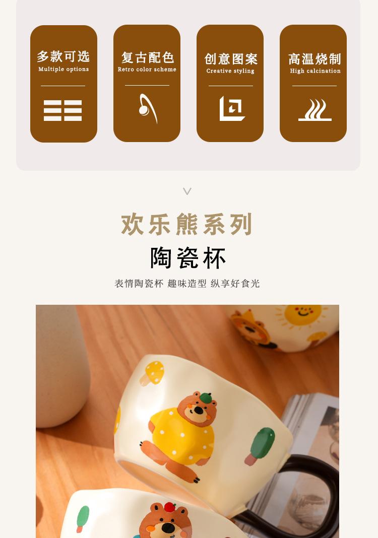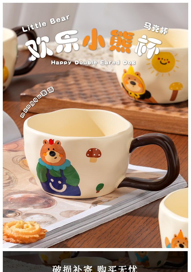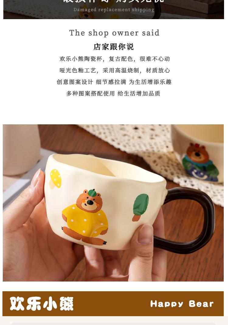 Taza de Cerámica Happy Bear Milk fufu Alto Valor de Color Taza para el Hogar de Niña Regalo para Pareja Taza de Café para Oficina