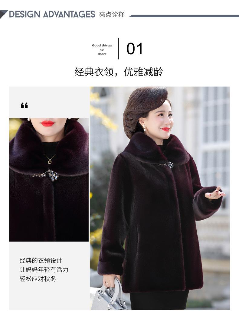 Abrigo de piel de visón danés de invierno para mamá, novedad de 2022, top corto de piel sintética de visón estilo occidental para mujeres de mediana edad y mayores.