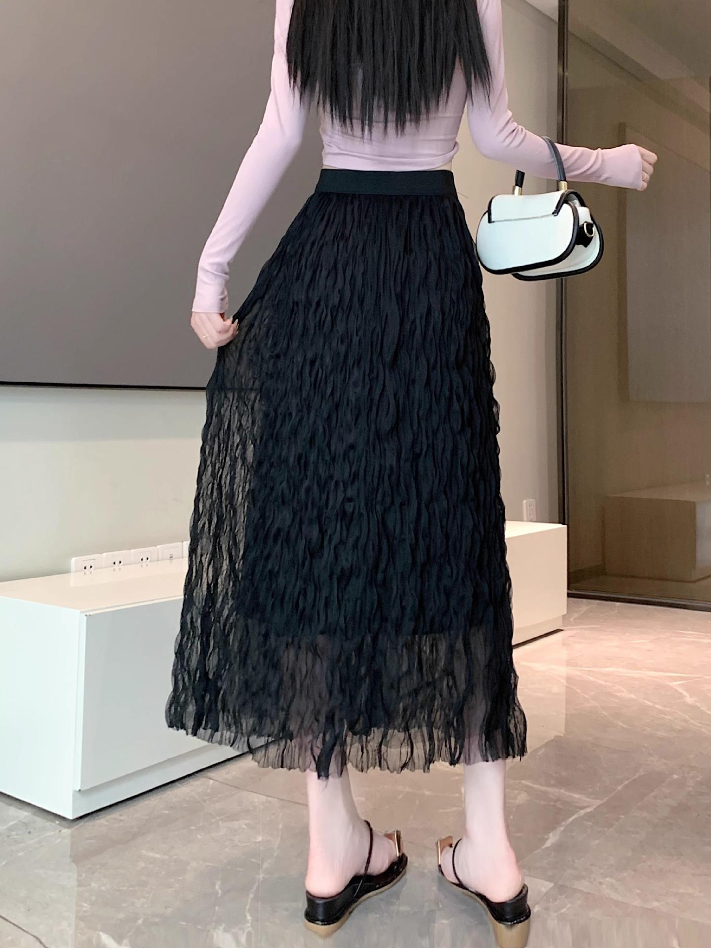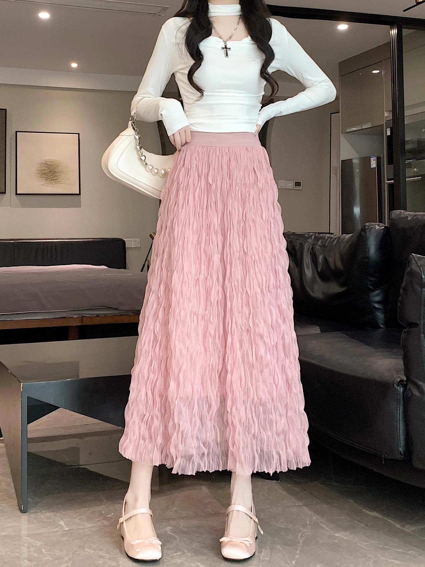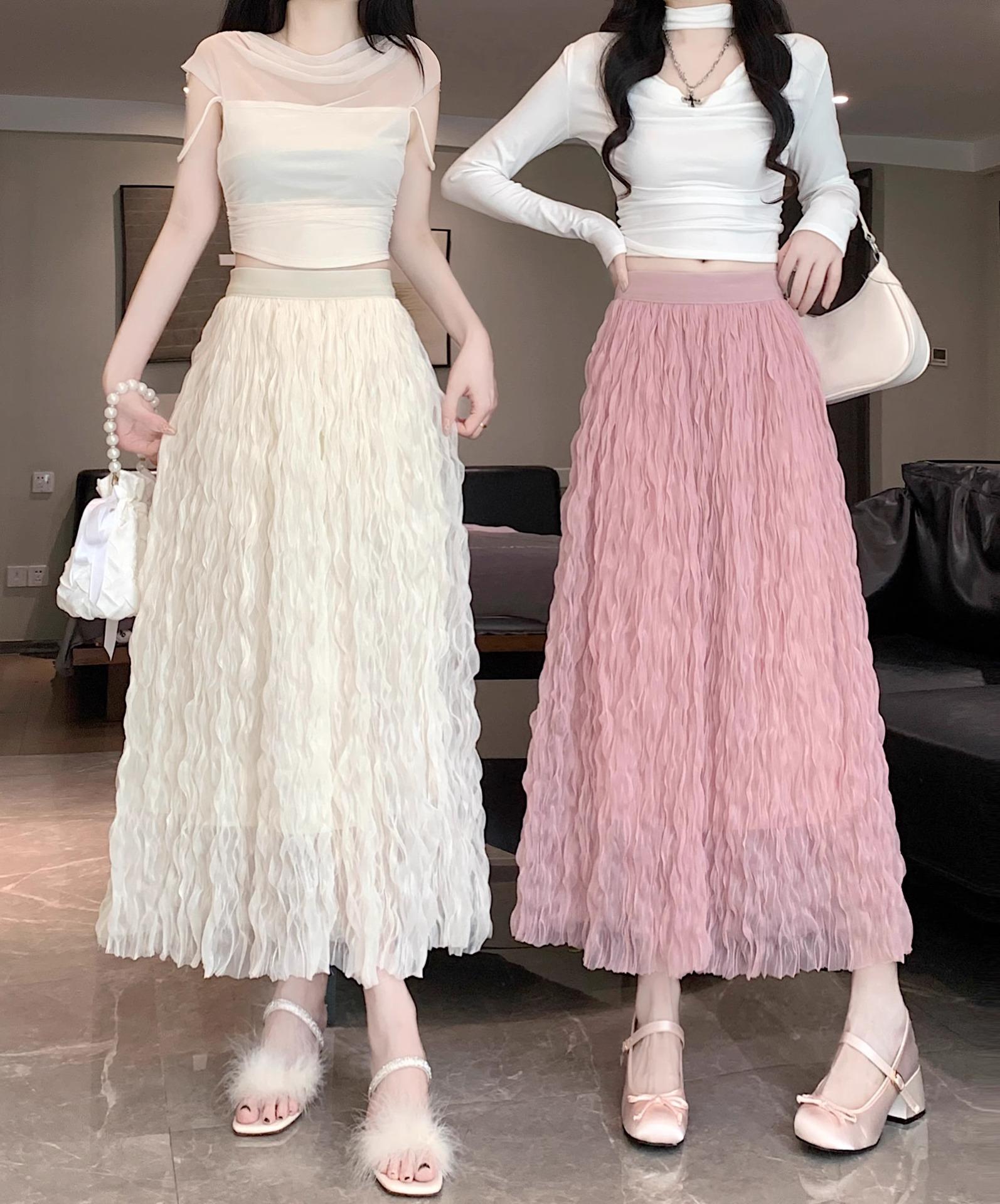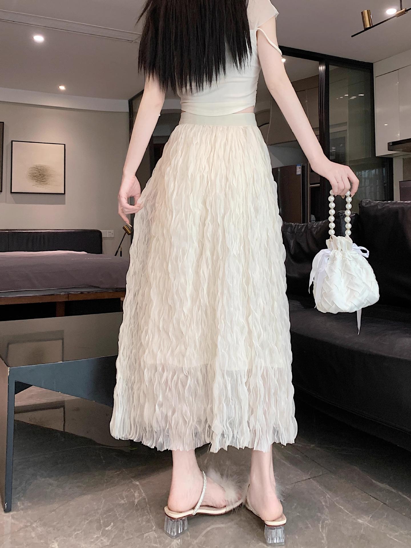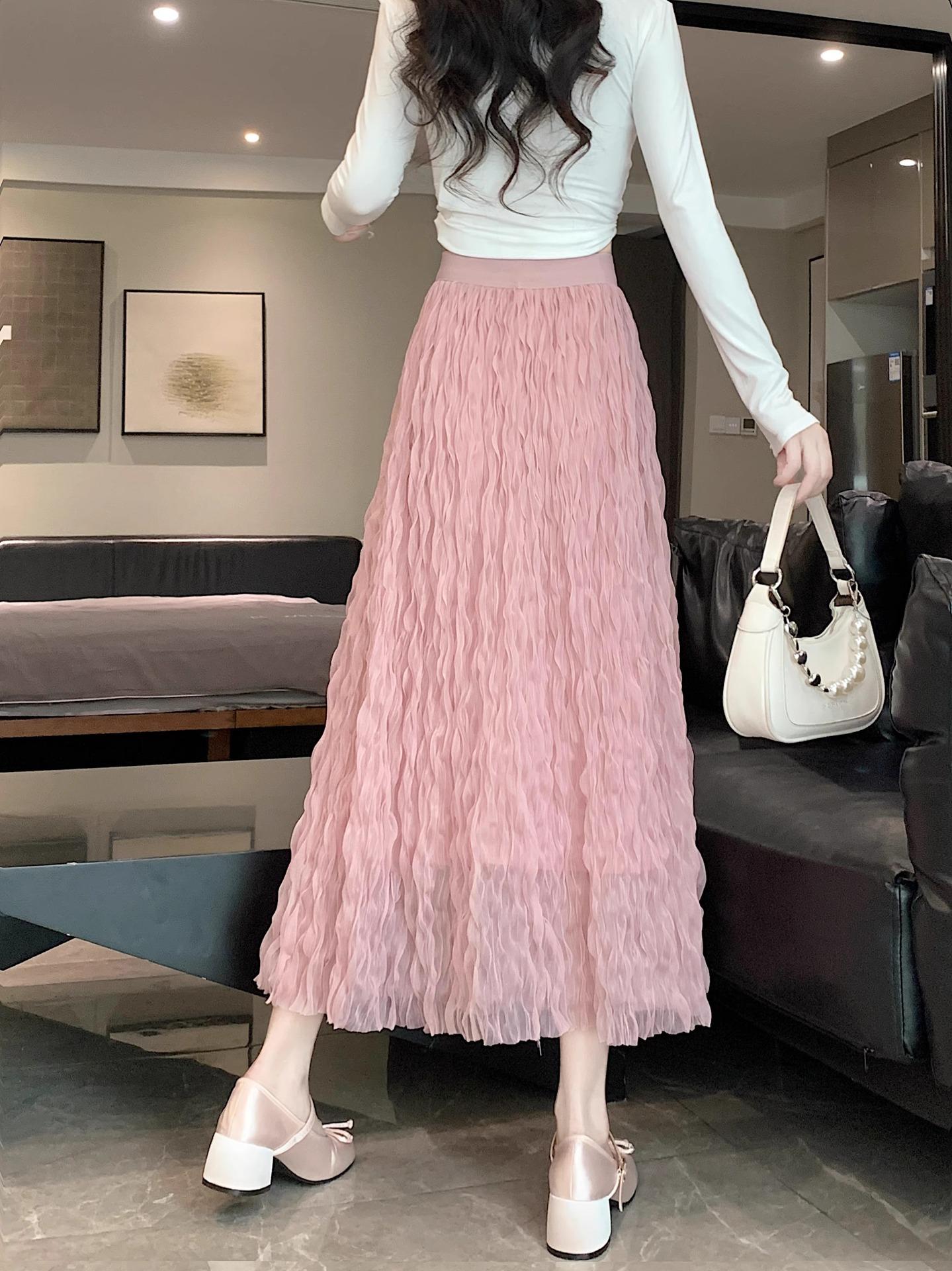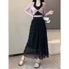 Falda plisada de malla para mujer, primavera y verano 2024, informal, de cintura alta, adelgazante, combinable, de alta gama, con ondas, vestido largo a la moda.