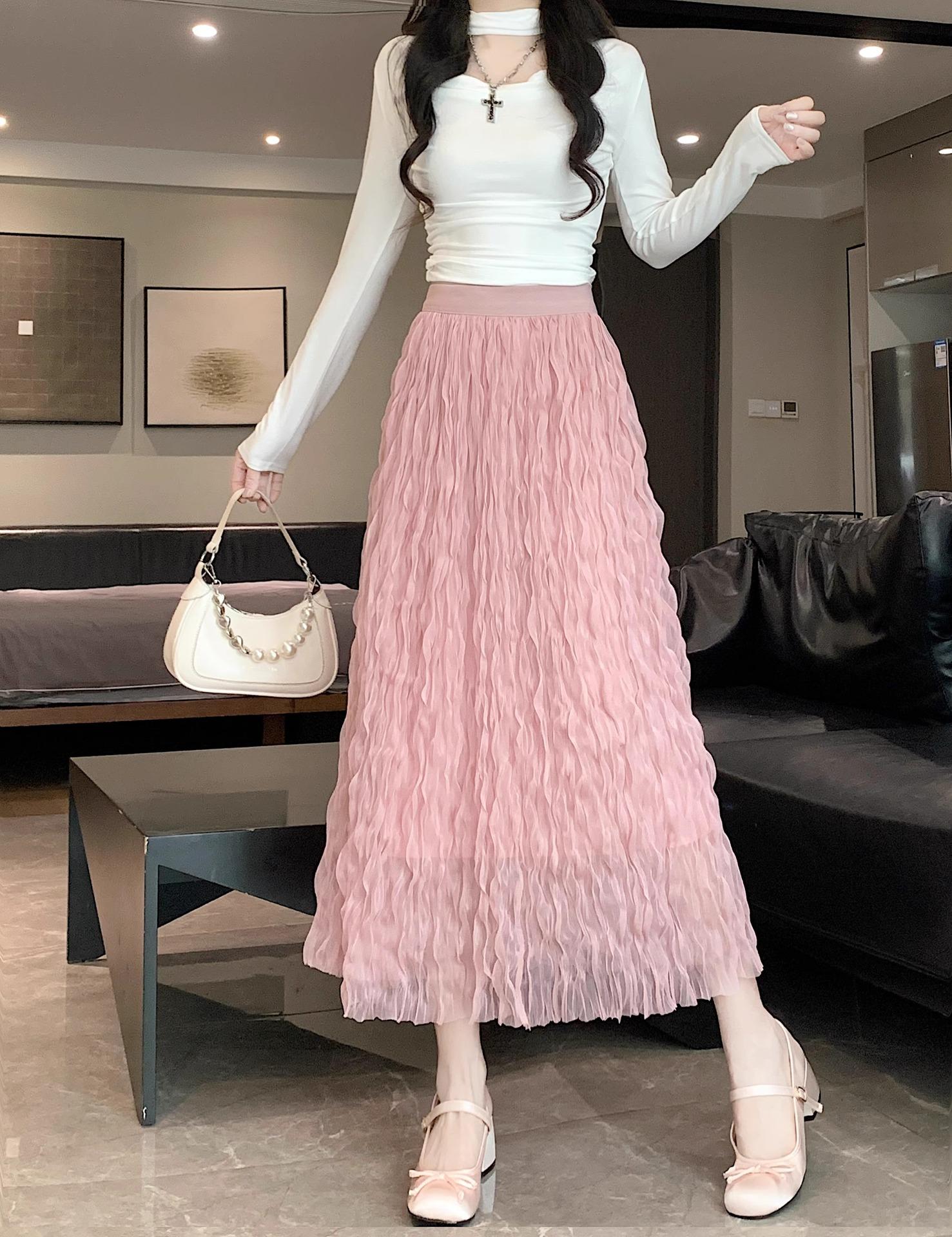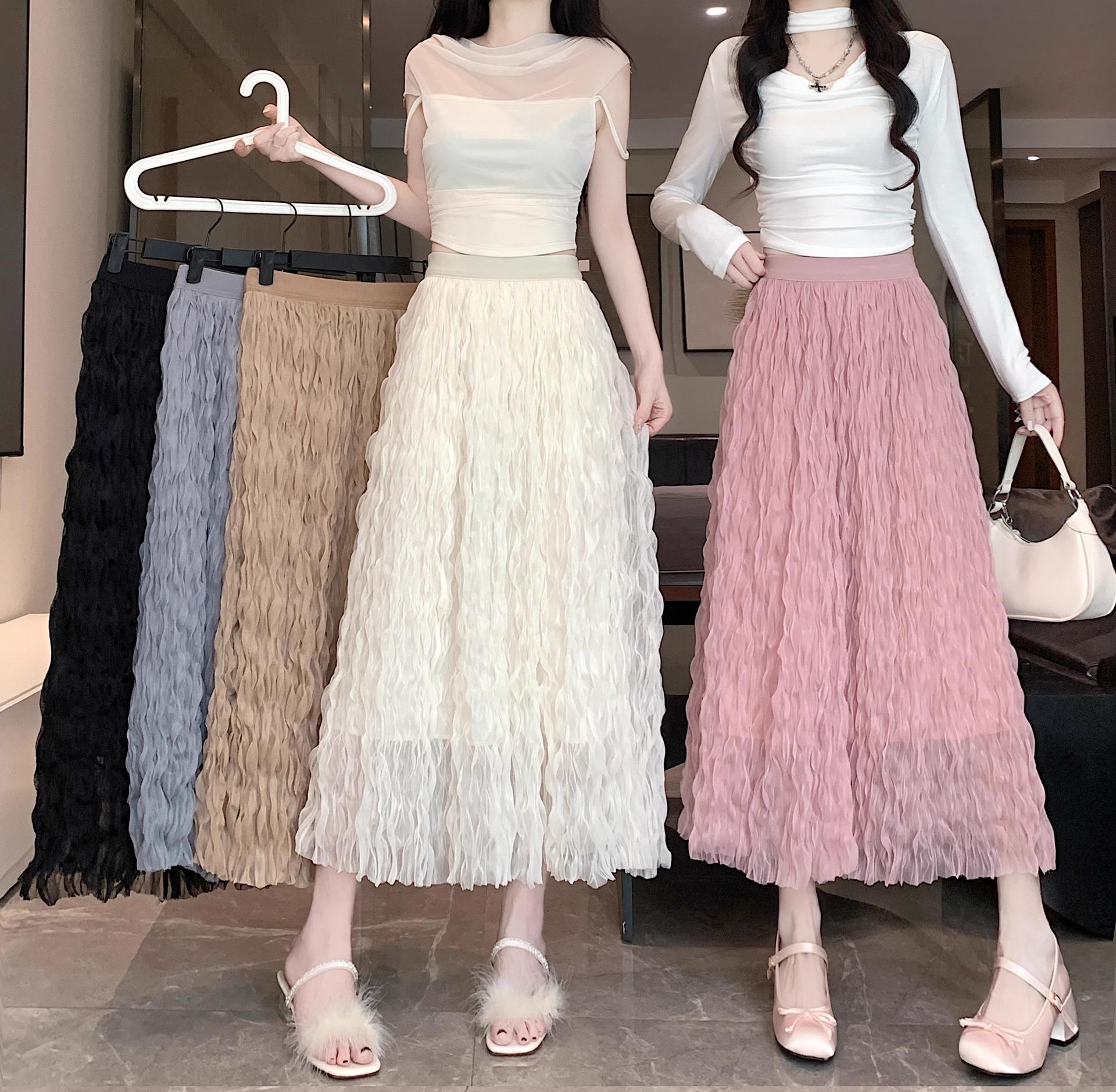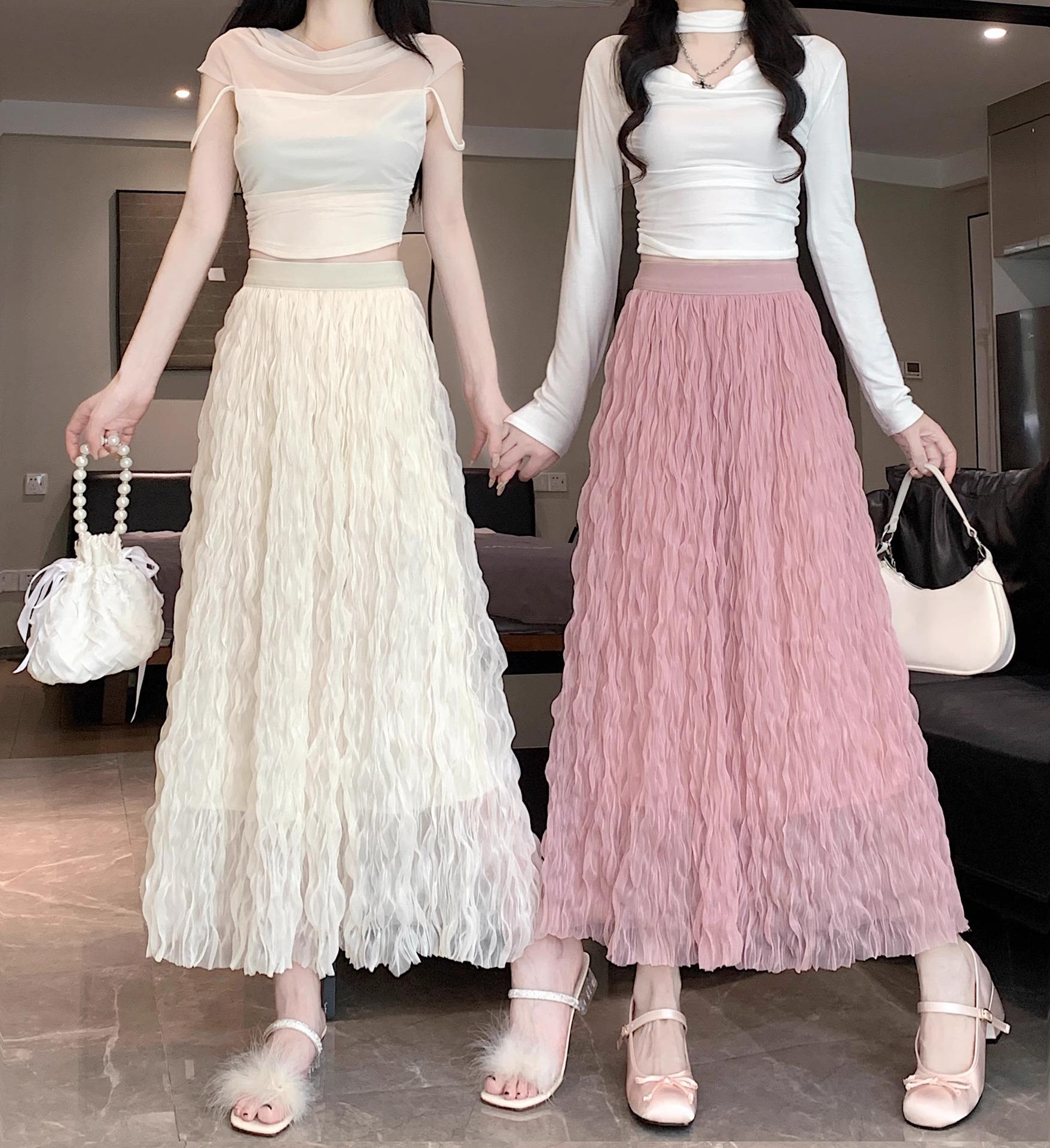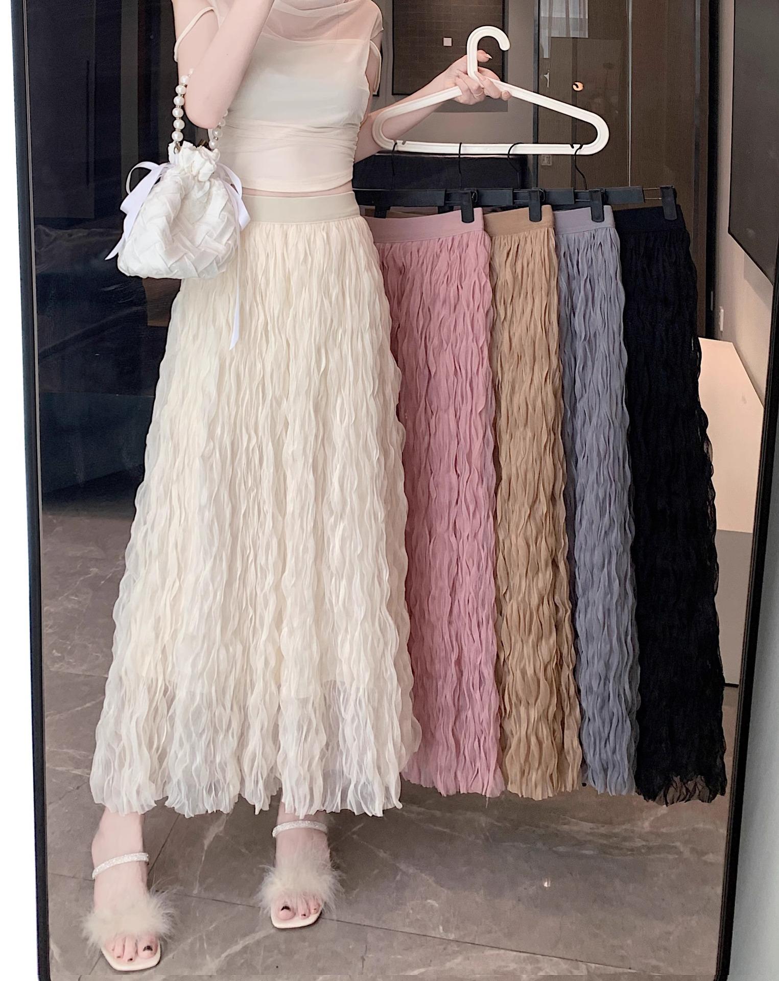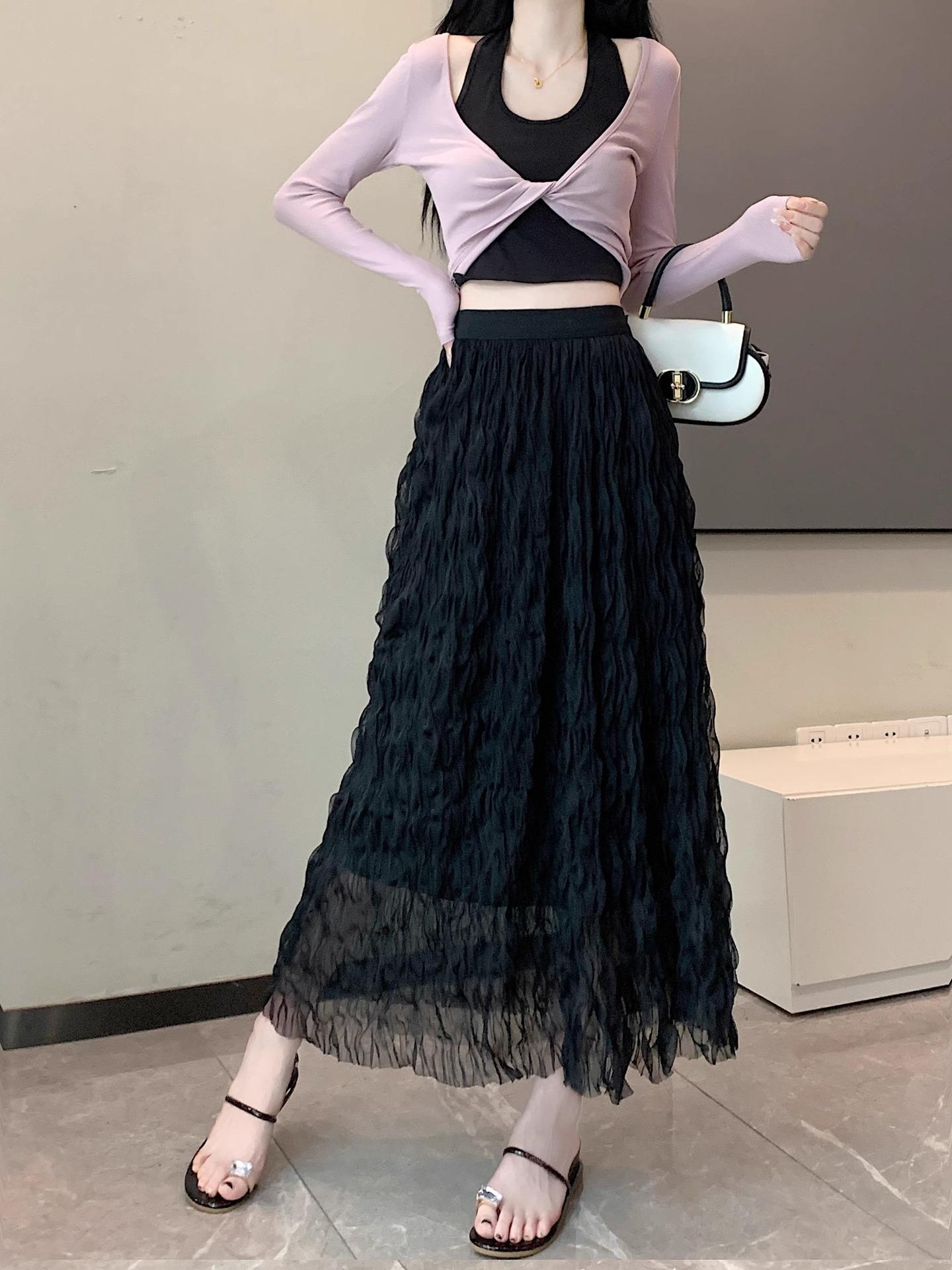 Falda plisada de malla para mujer, primavera y verano 2024, informal, de cintura alta, adelgazante, combinable, de alta gama, con ondas, vestido largo a la moda.