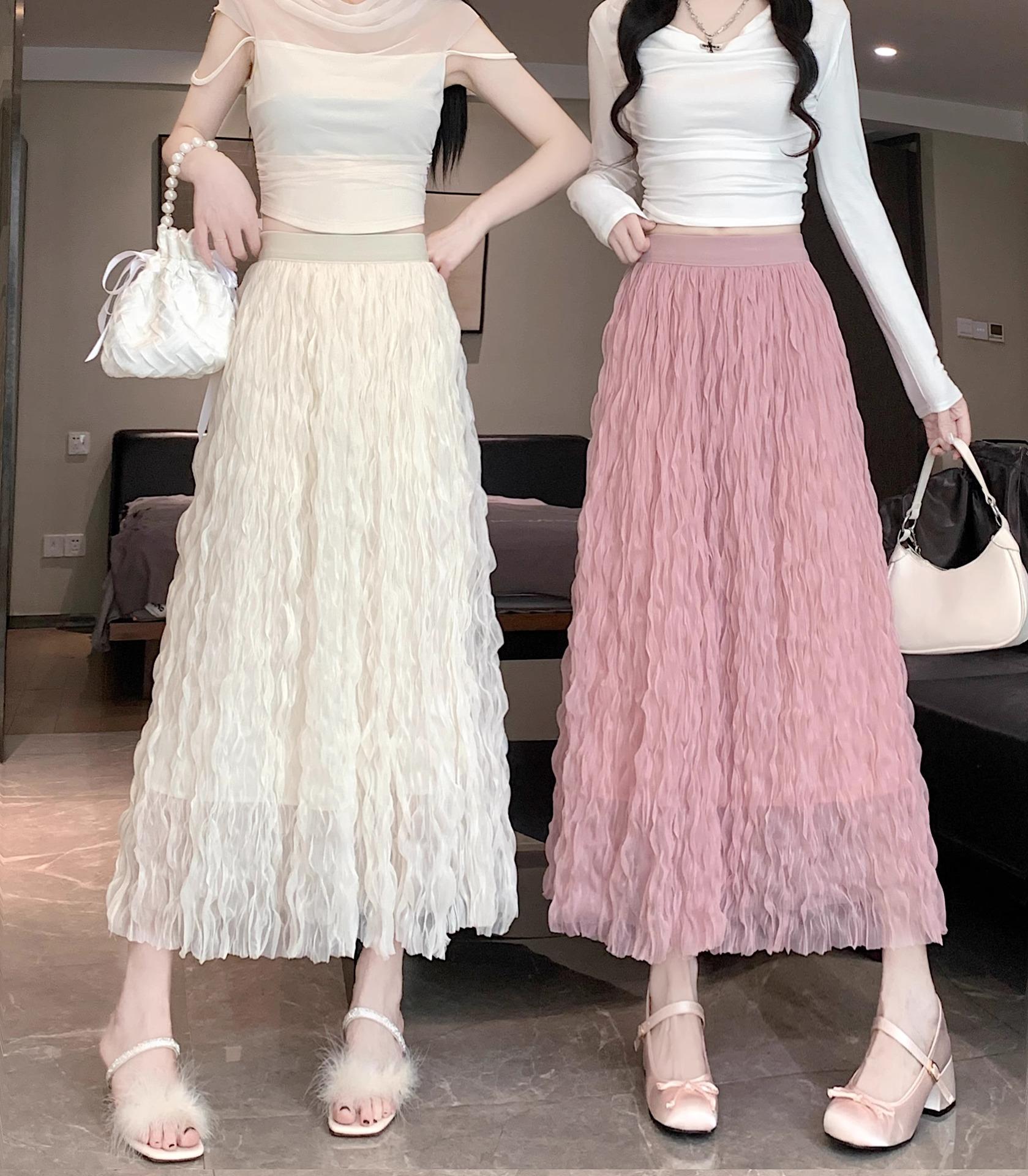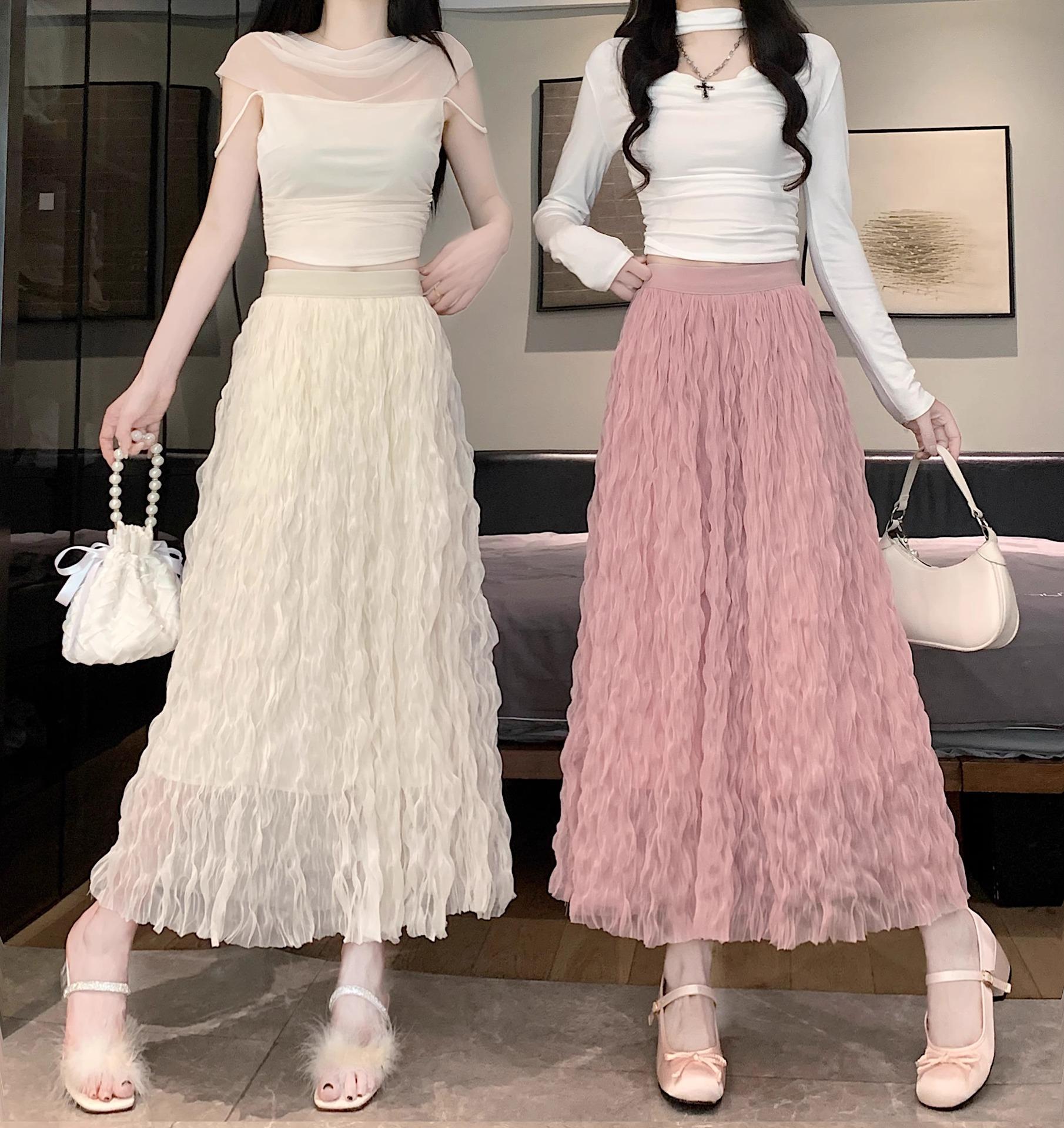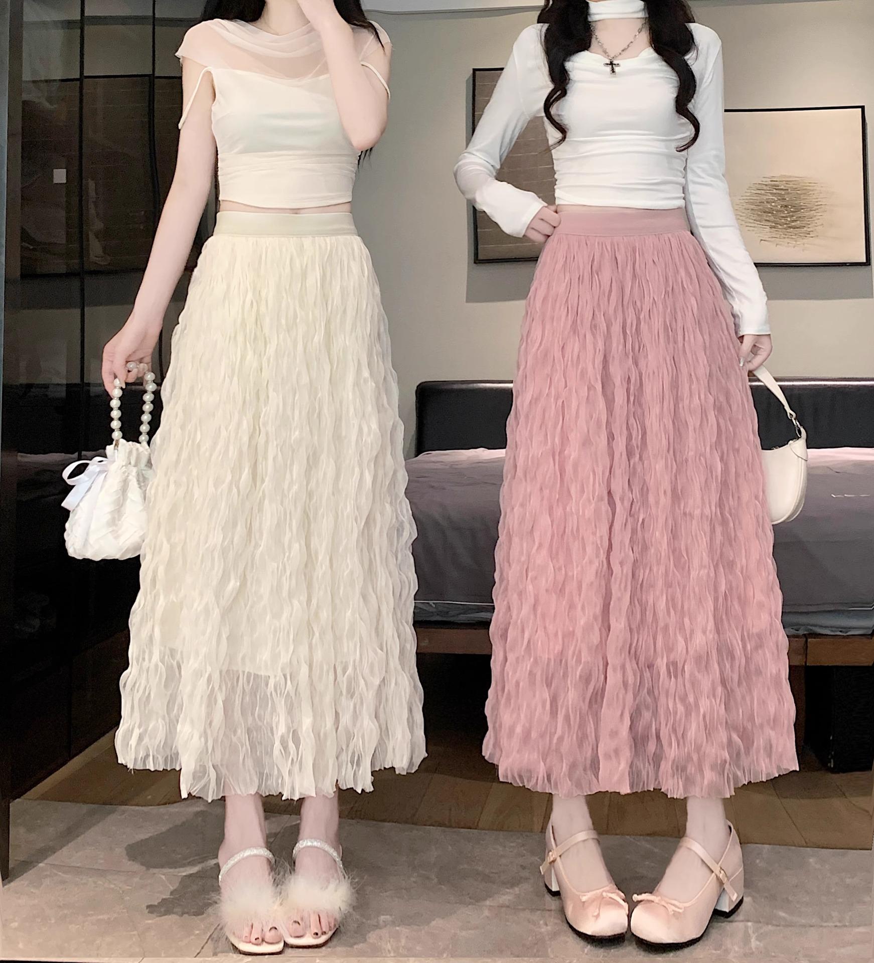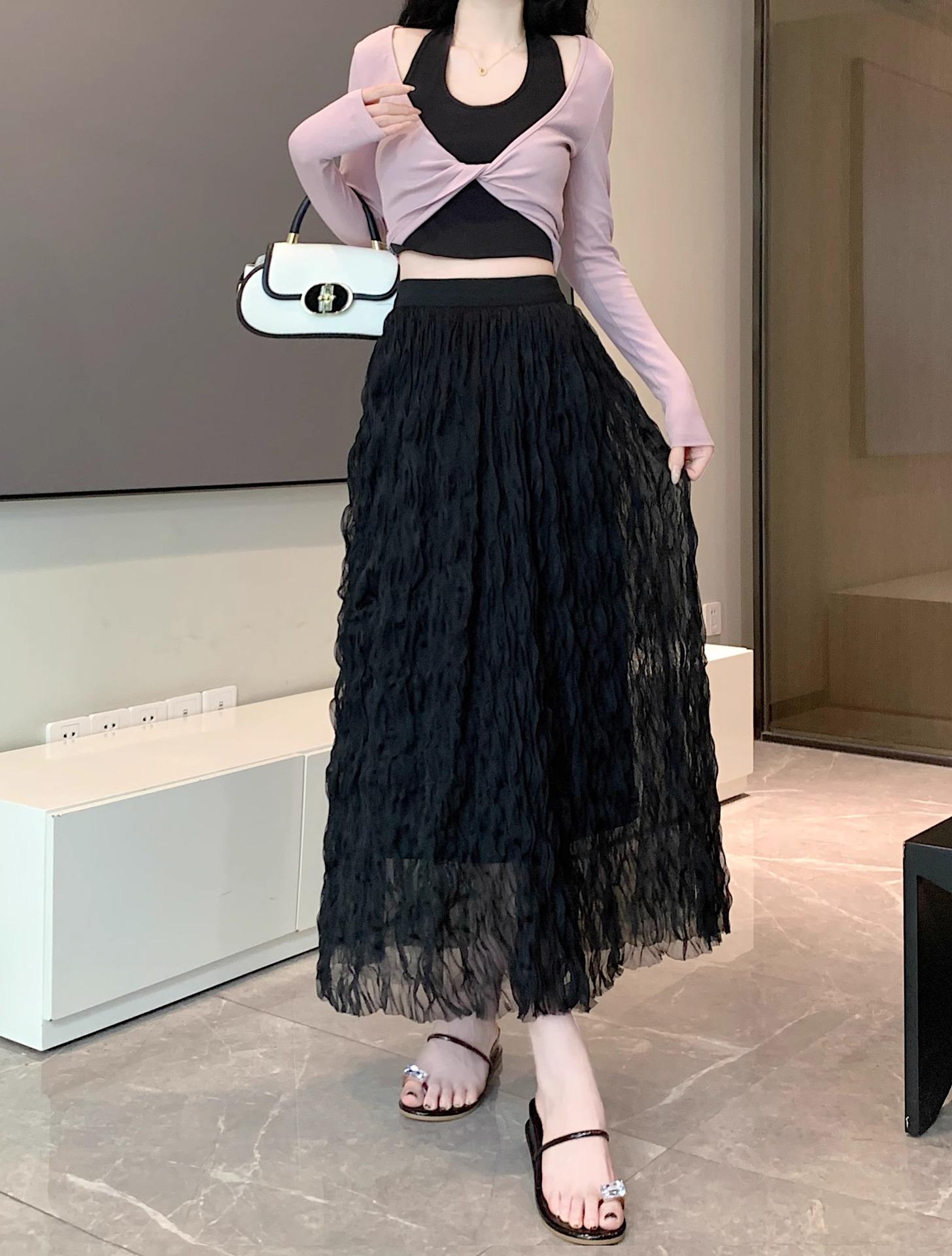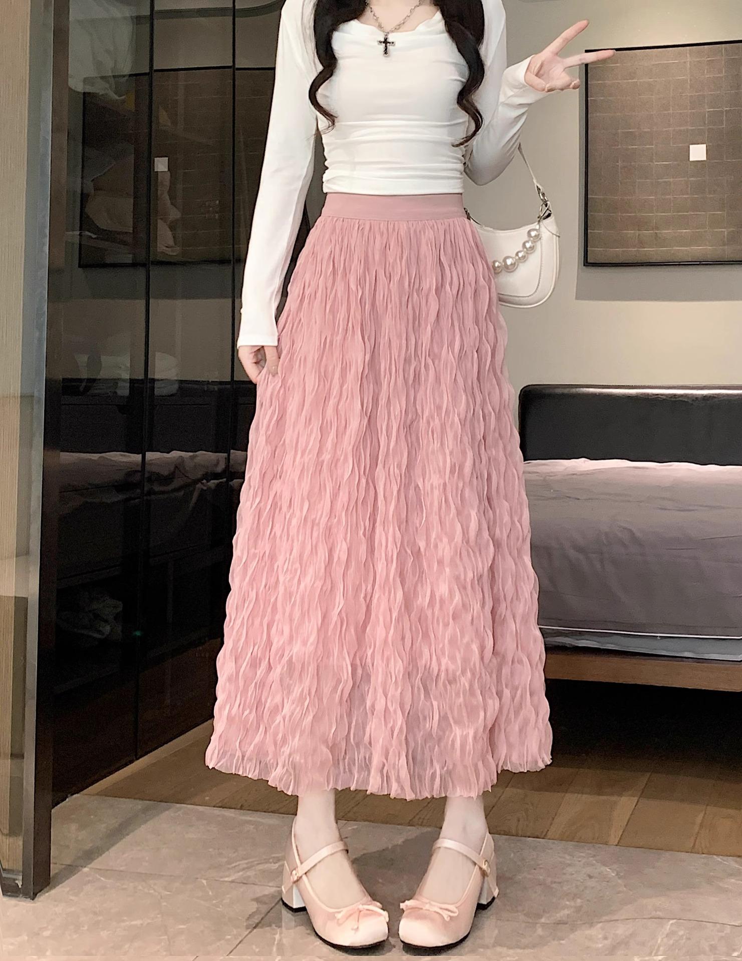 Falda plisada de malla para mujer, primavera y verano 2024, informal, de cintura alta, adelgazante, combinable, de alta gama, con ondas, vestido largo a la moda.
