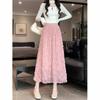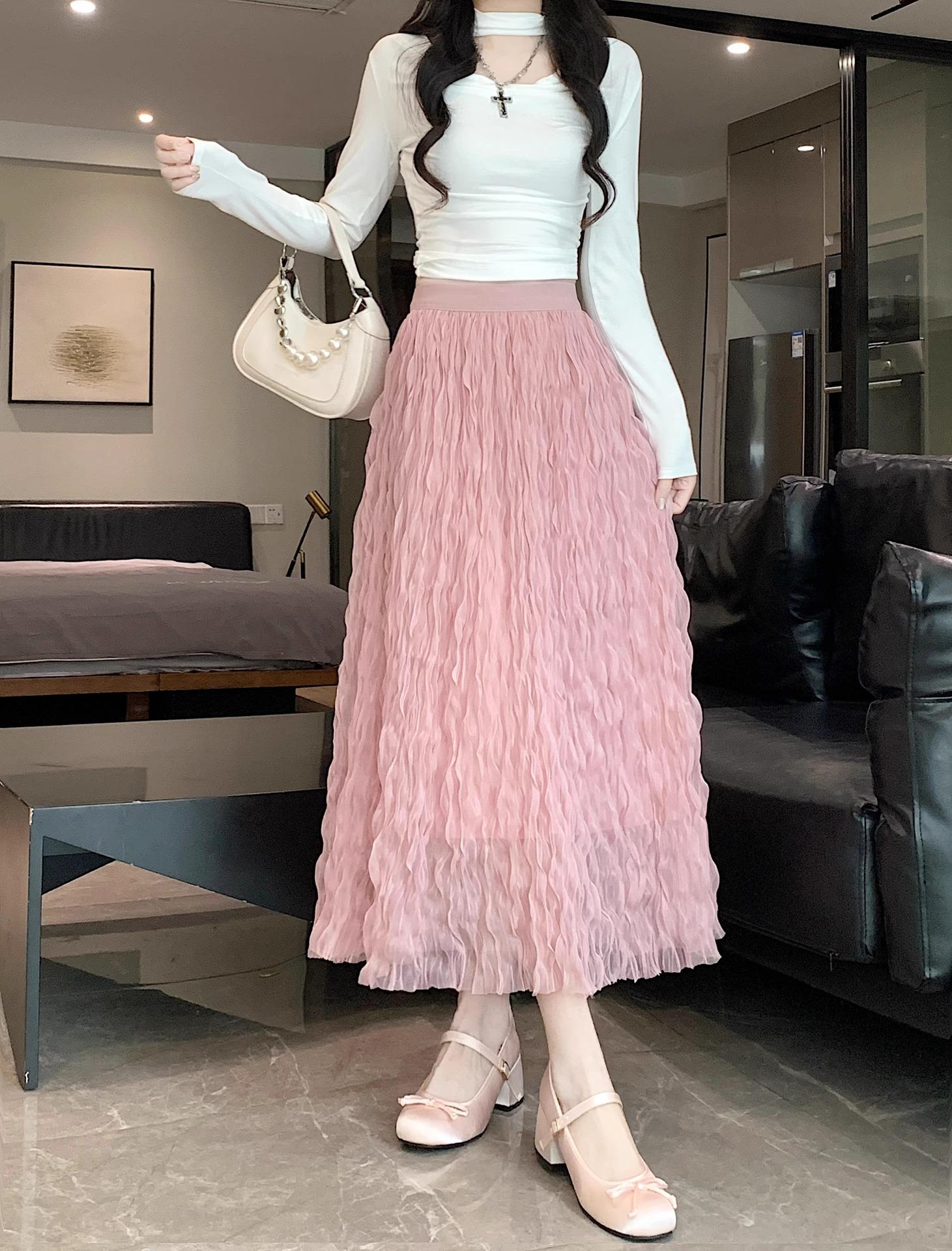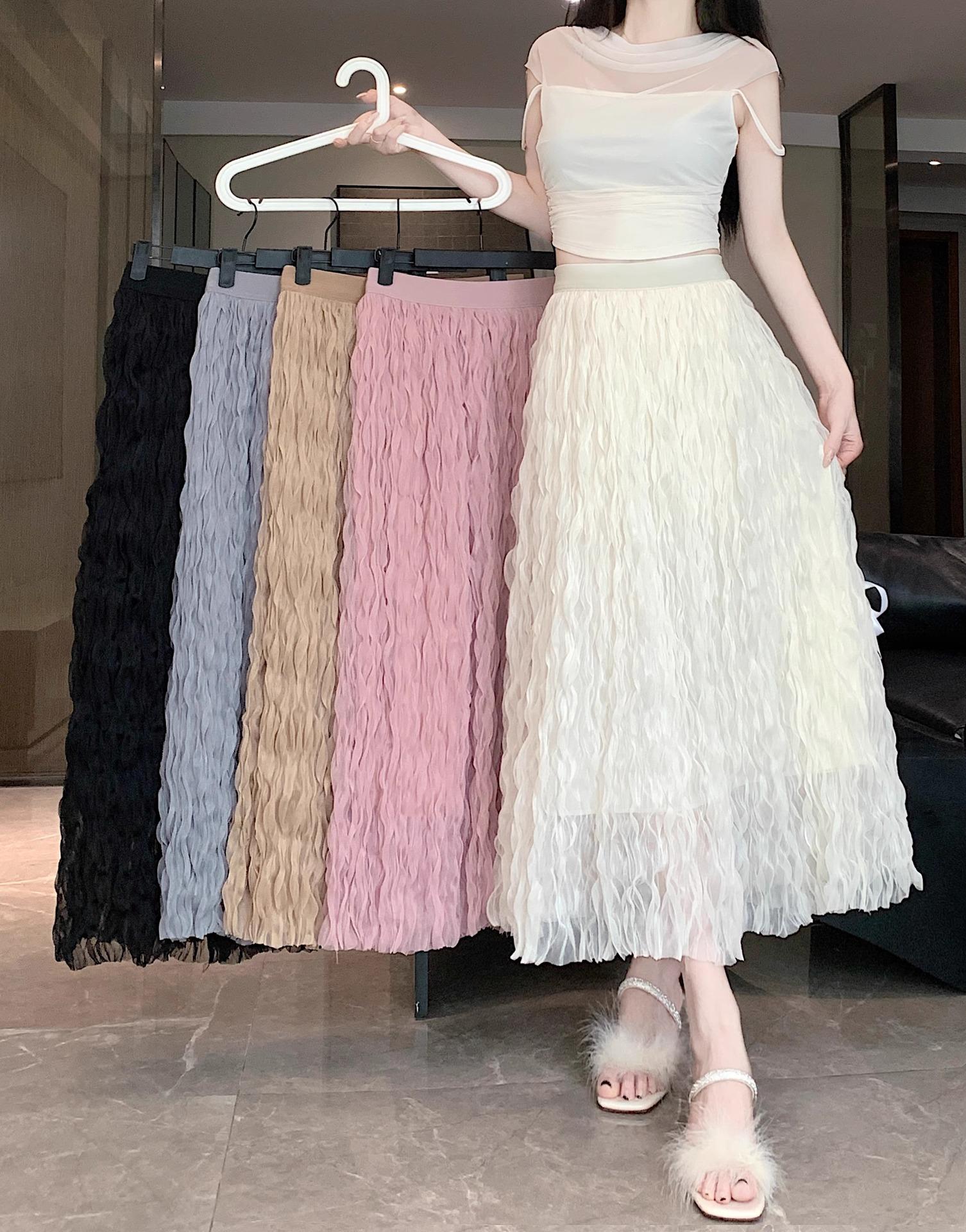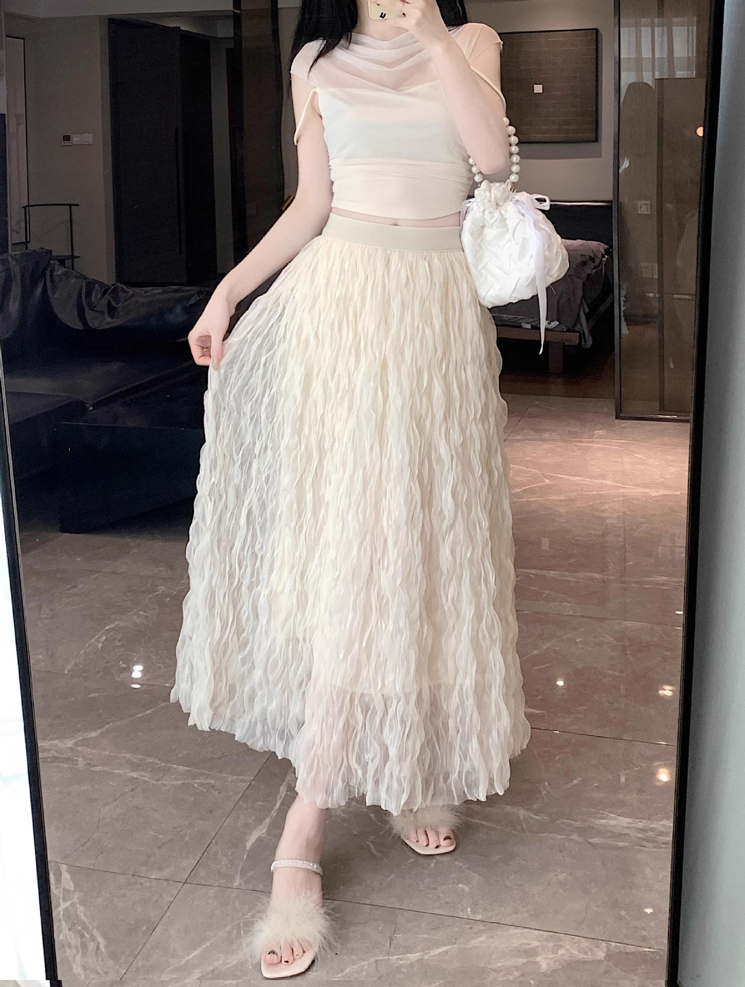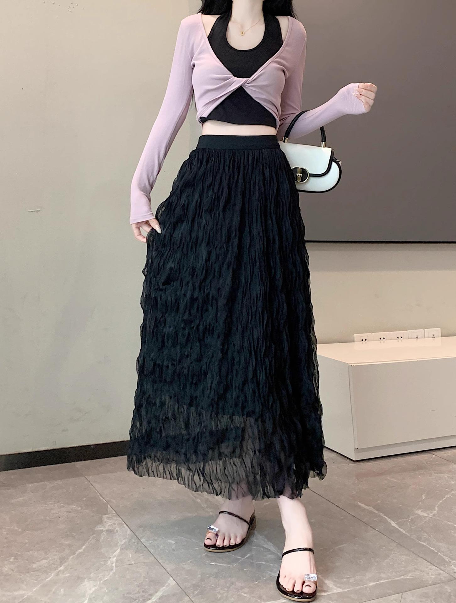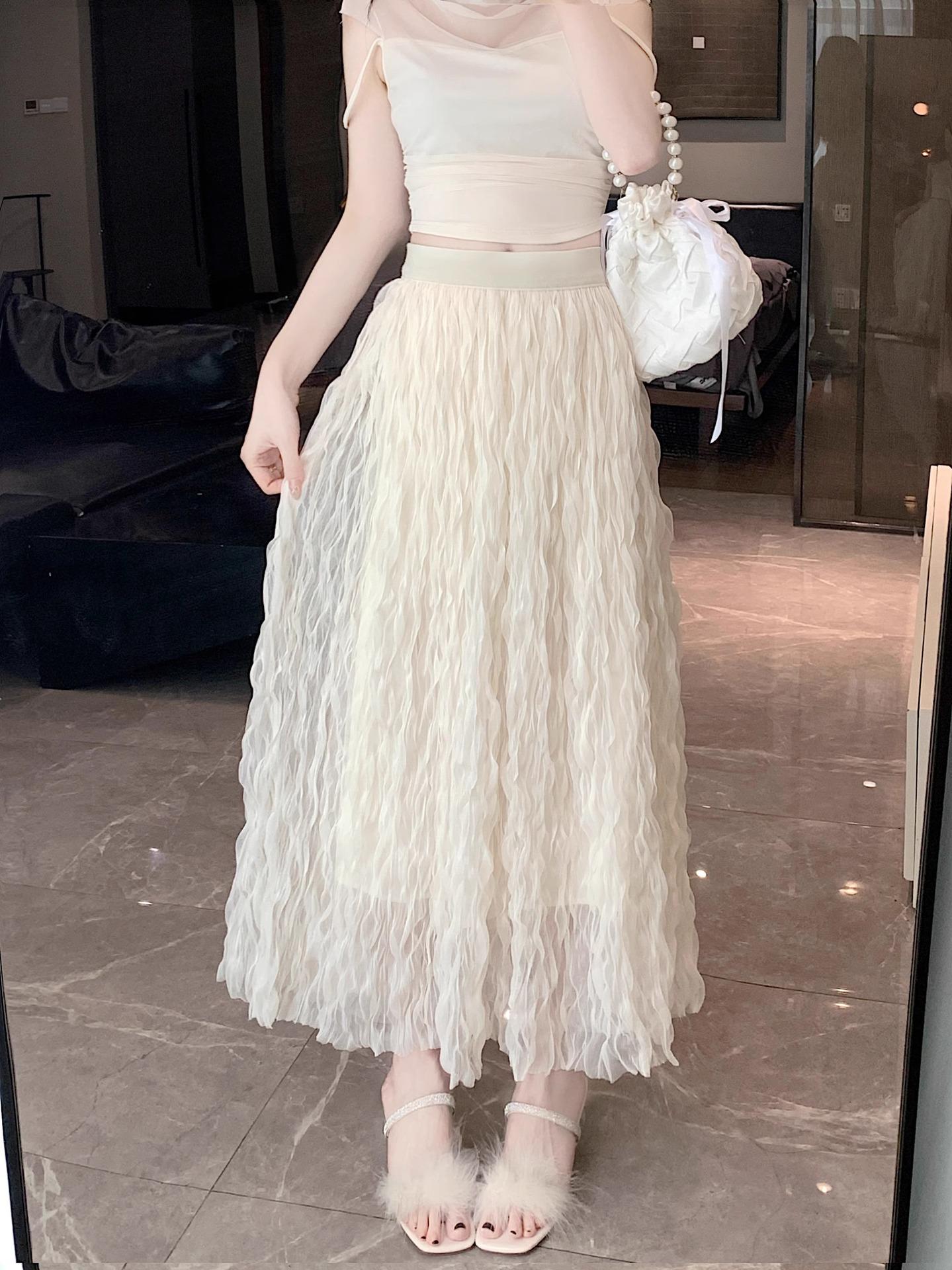 Falda plisada de malla para mujer, primavera y verano 2024, informal, de cintura alta, adelgazante, combinable, de alta gama, con ondas, vestido largo a la moda.