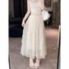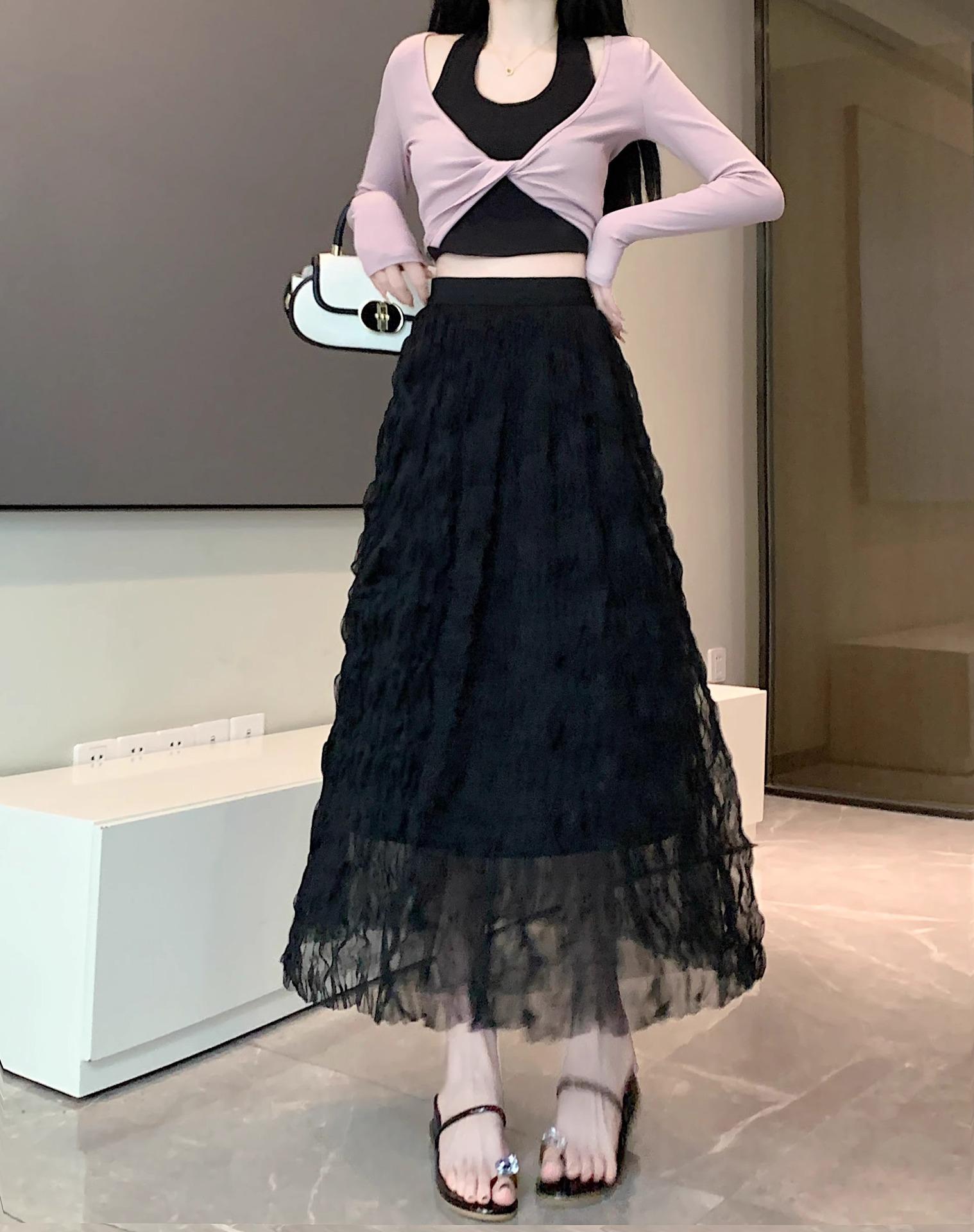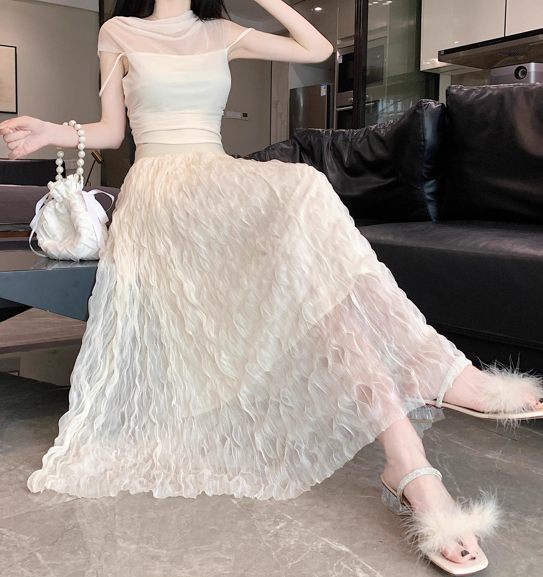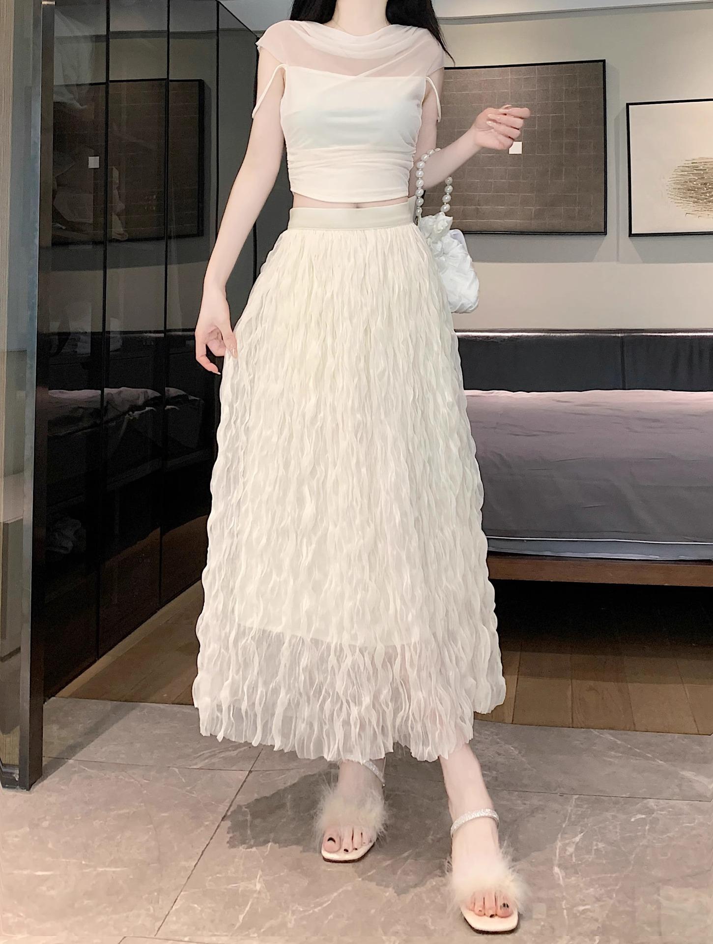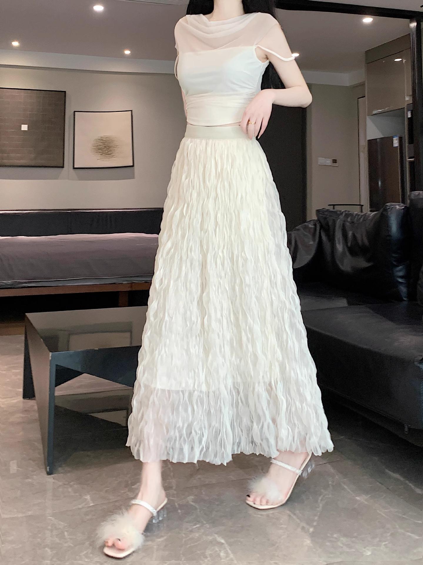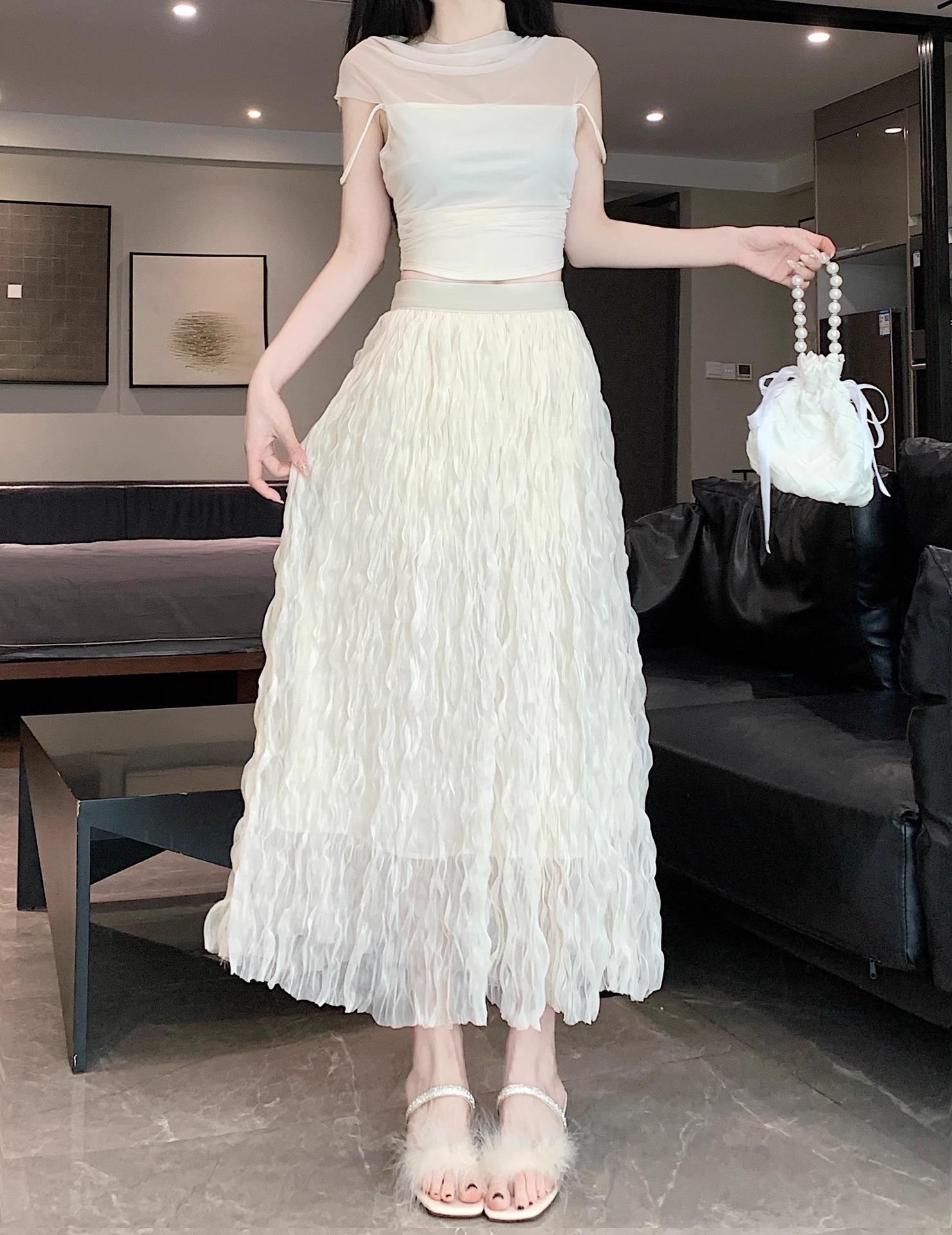 Falda plisada de malla para mujer, primavera y verano 2024, informal, de cintura alta, adelgazante, combinable, de alta gama, con ondas, vestido largo a la moda.