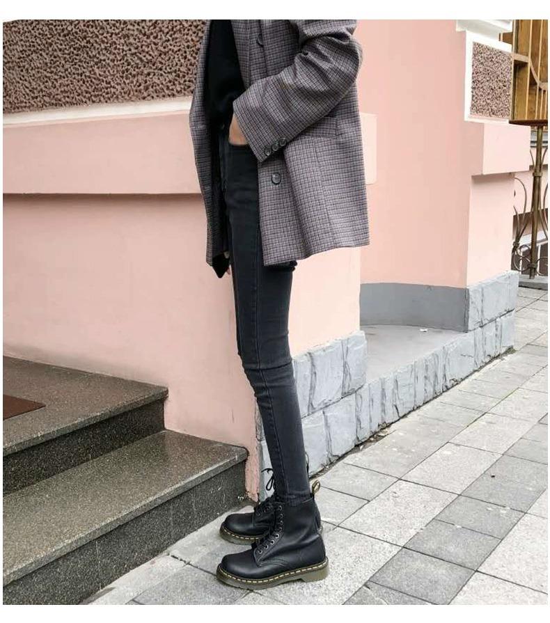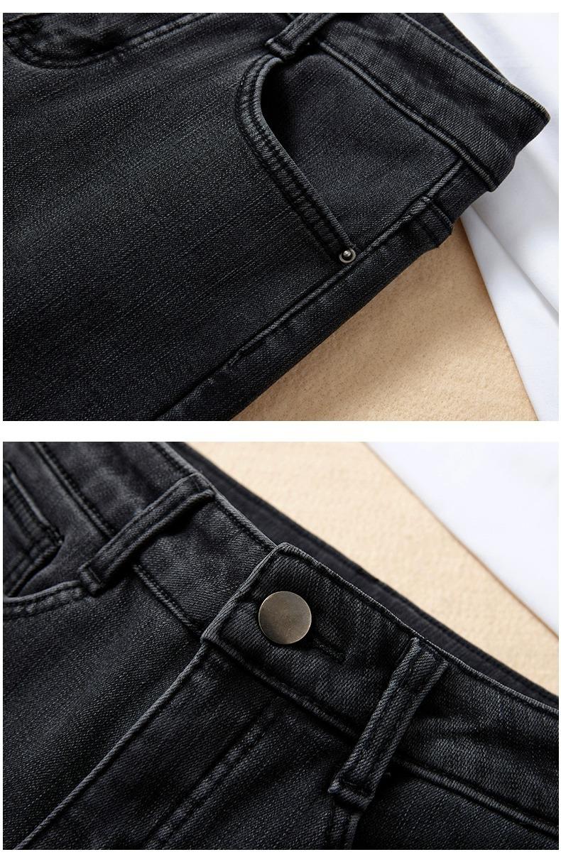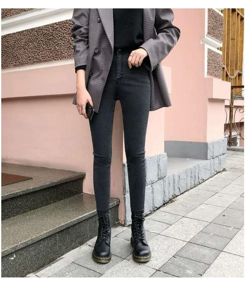 Jeans Ajustados Adelgazantes Grises para Mujer 2025 Primavera y Otoño Nuevos Pantalones Lápiz Elásticos Slim de Cintura Alta para Pies Pequeños