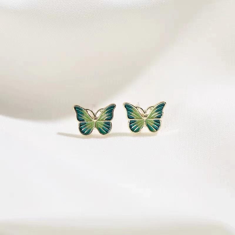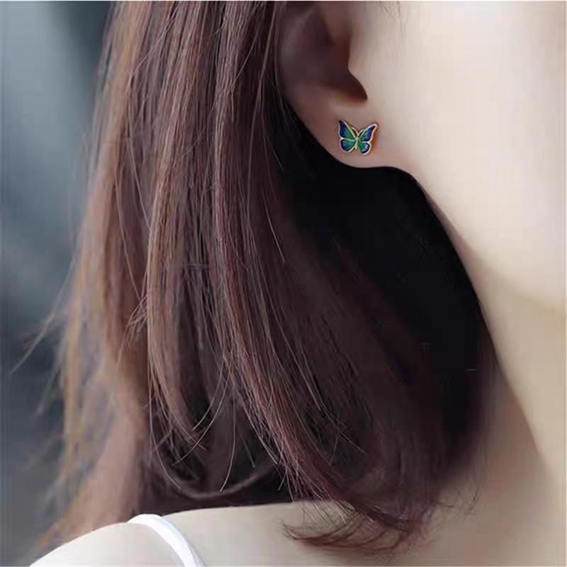 Pendientes de mariposa pequeños de estilo coreano con aguja de plata S925 para mujer, estilo francés, sencillos y elegantes, mini pendientes distintivos que combinan con todo.