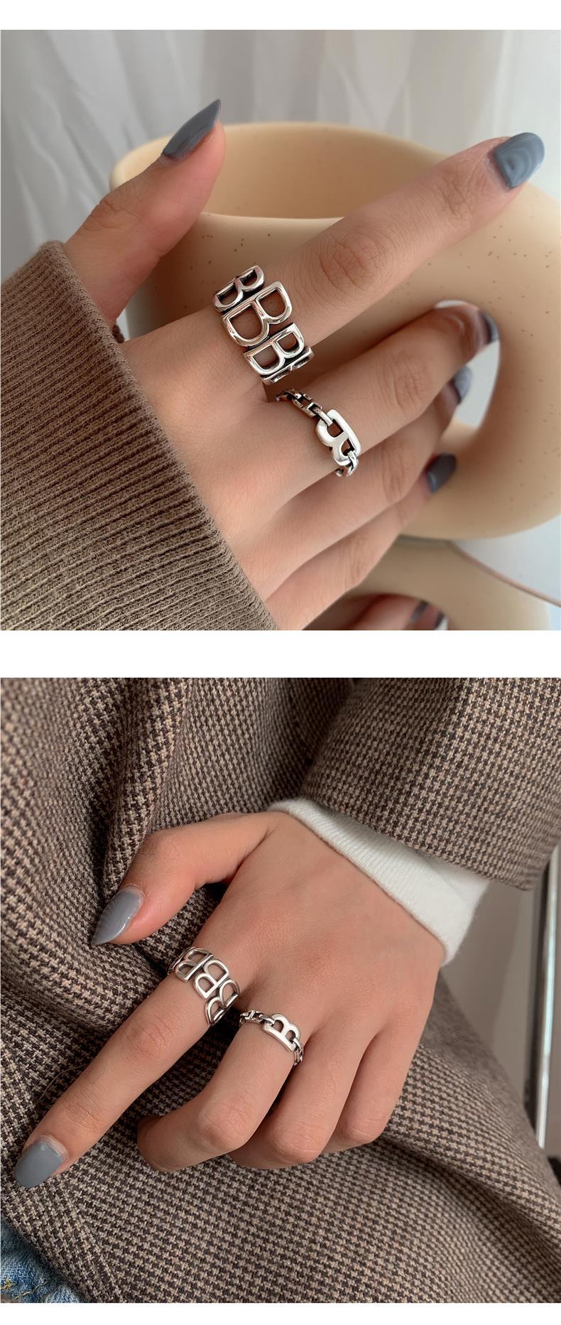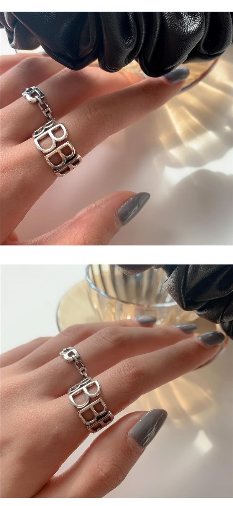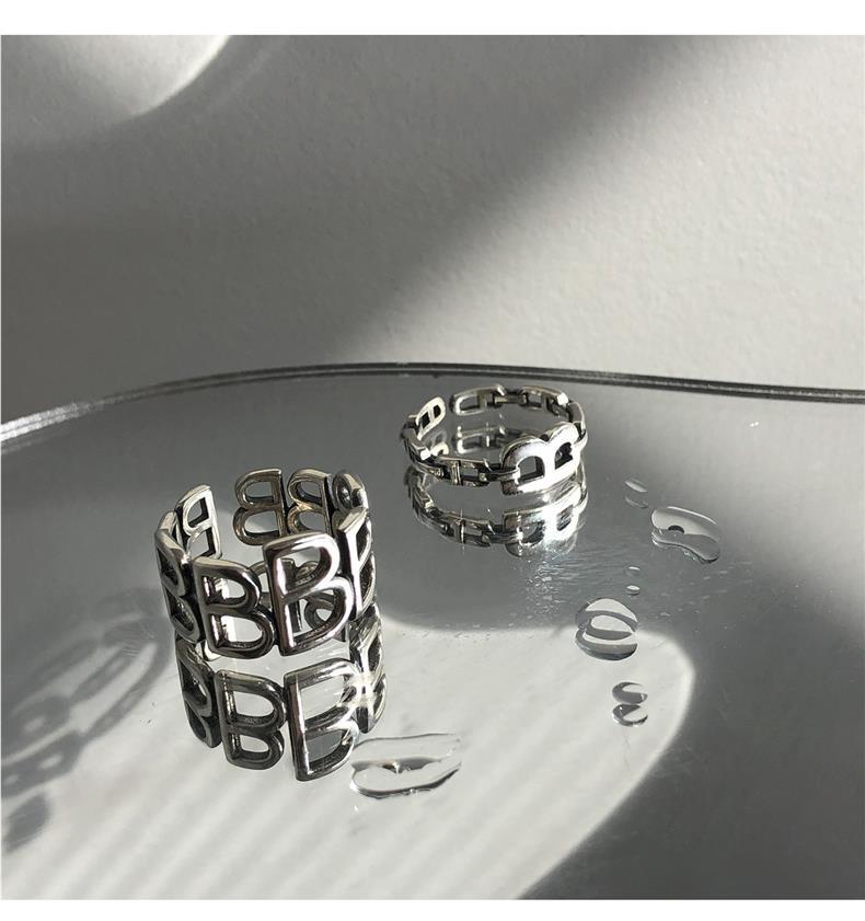 Anillo con letra B de plata s925 estilo europeo y americano, anillo de dedo índice de estilo retro frío para mujer, anillo de cola con personalidad, pulsera de celebridad de Internet