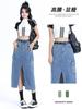 Vestido de trabajo retro estilo americano para mujer, verano 2023, fino, cintura alta, corte A, adelgazante, falda azul de longitud media