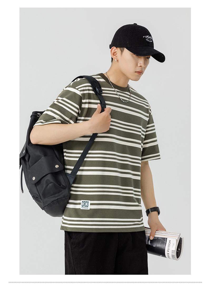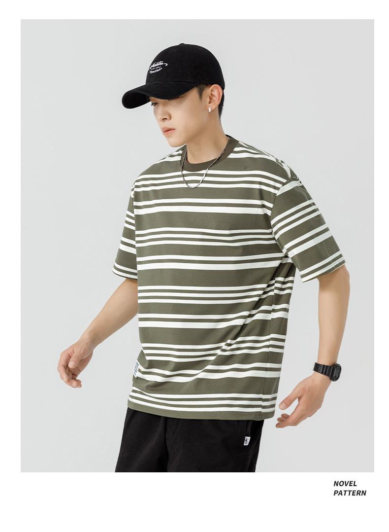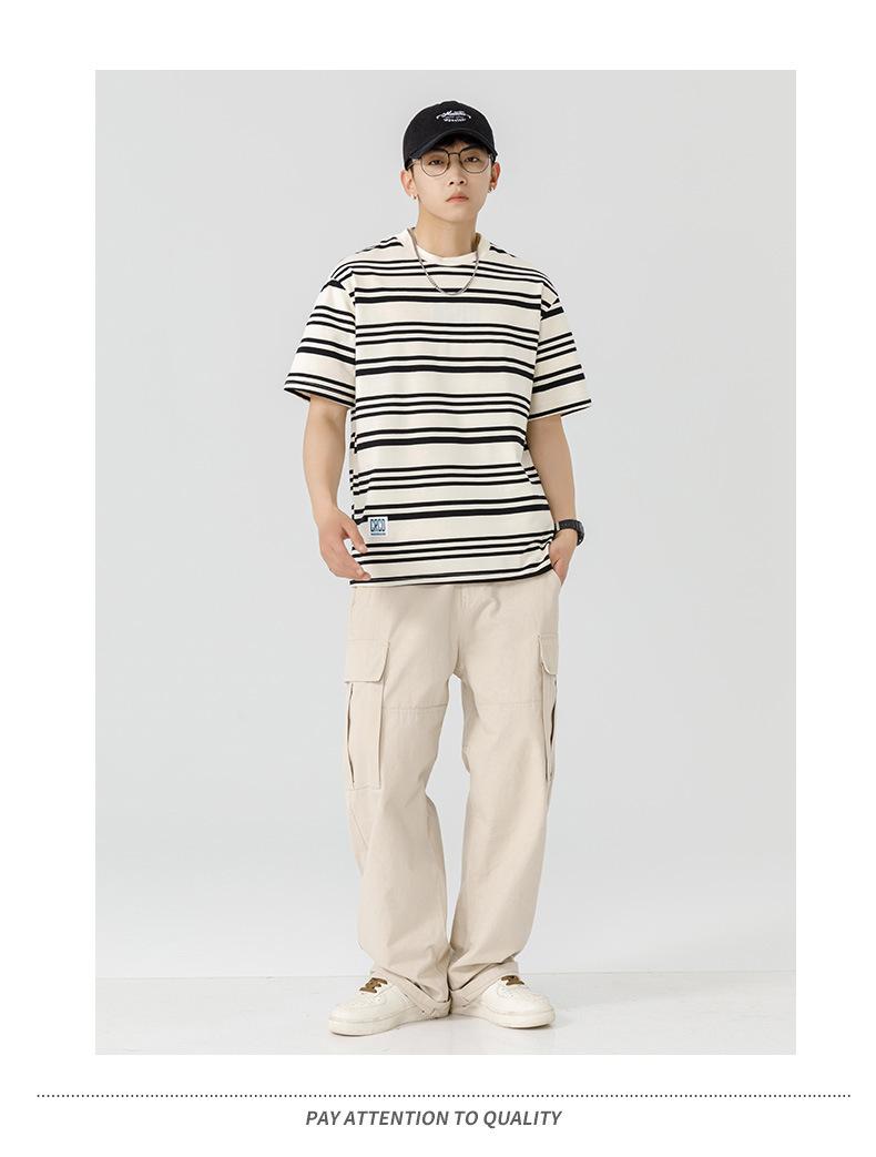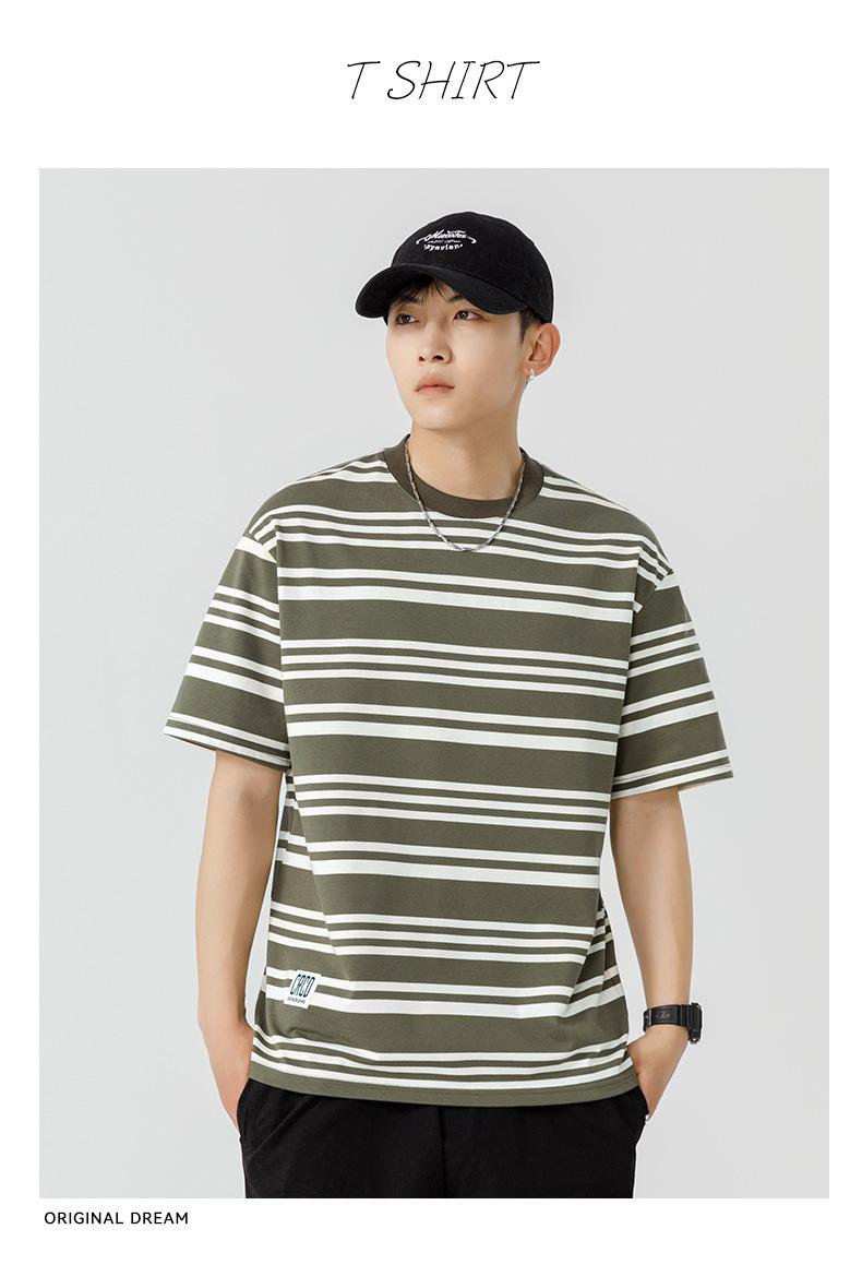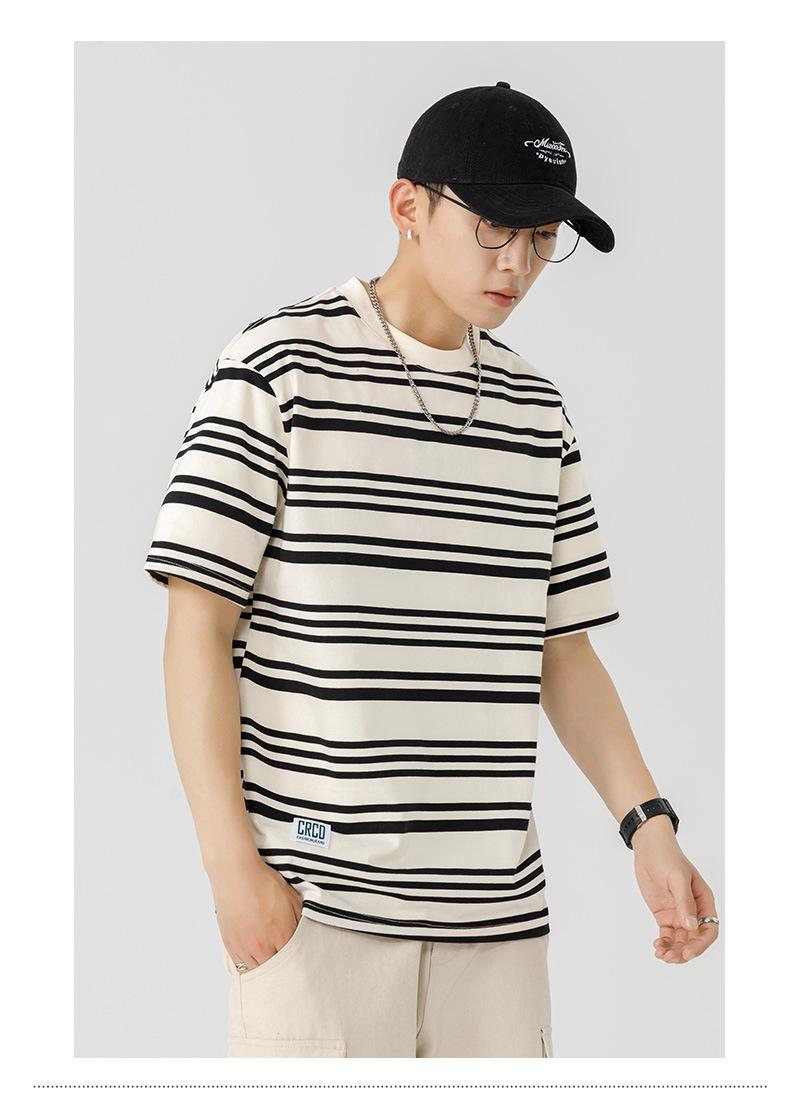 Liyang - Camiseta de rayas retro de estilo americano para hombre, nueva camiseta informal holgada de media manga de verano 2024, de marca a la moda