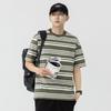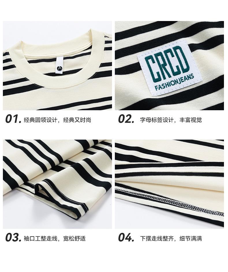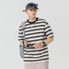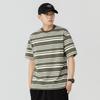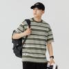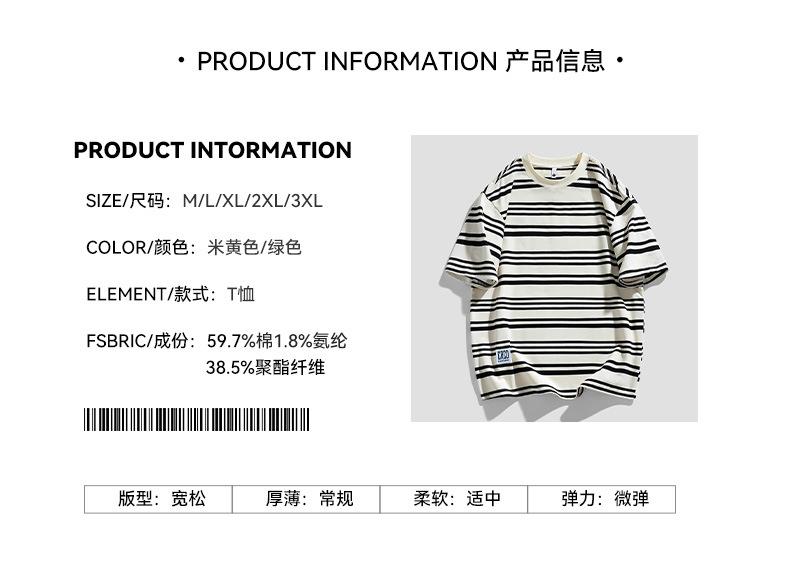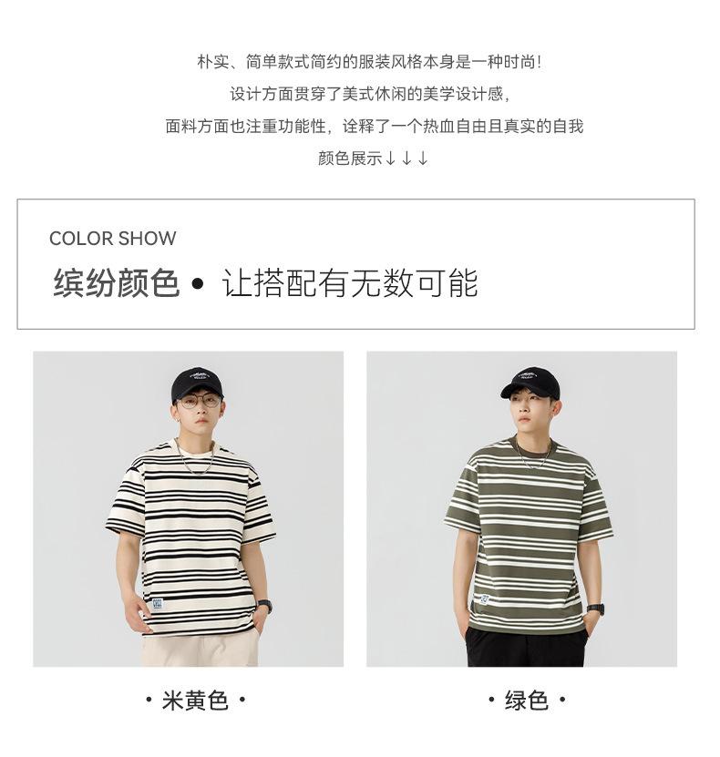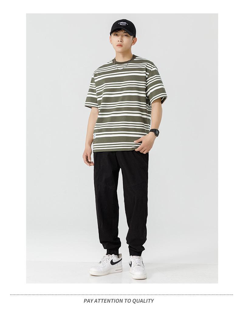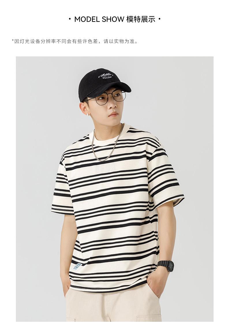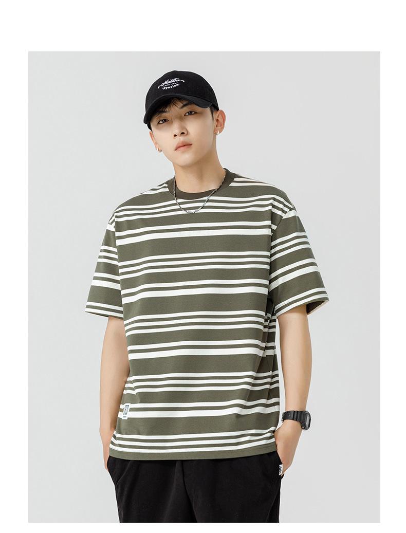 Liyang - Camiseta de rayas retro de estilo americano para hombre, nueva camiseta informal holgada de media manga de verano 2024, de marca a la moda