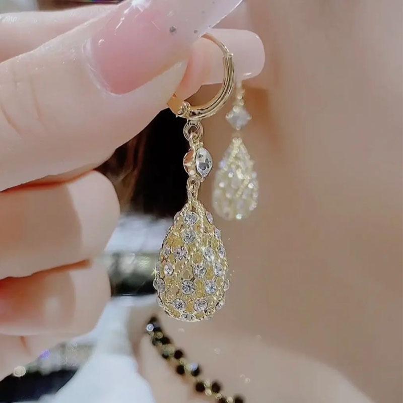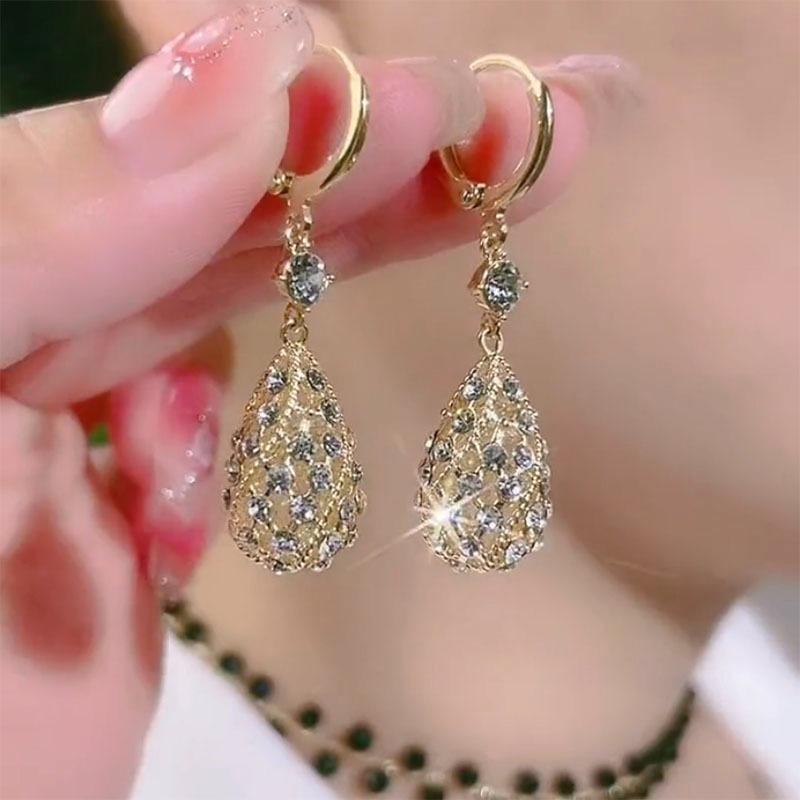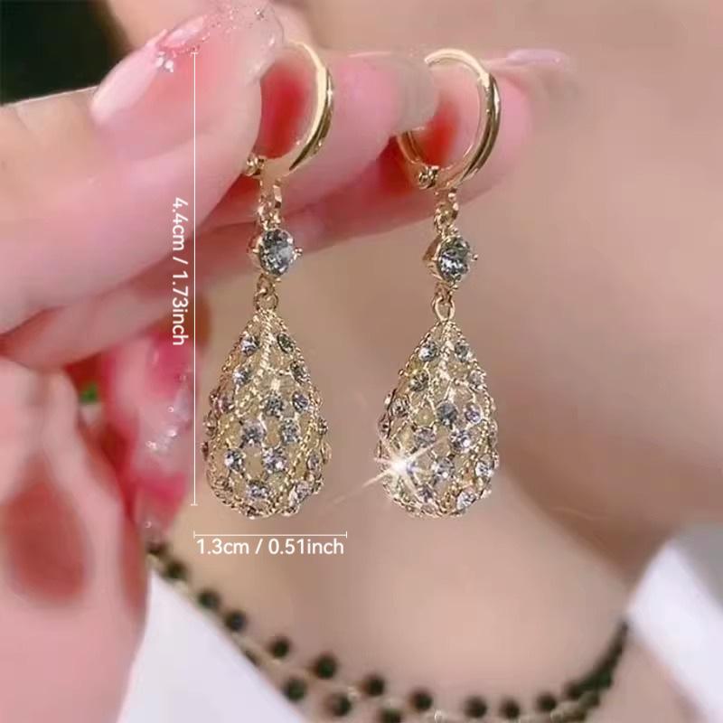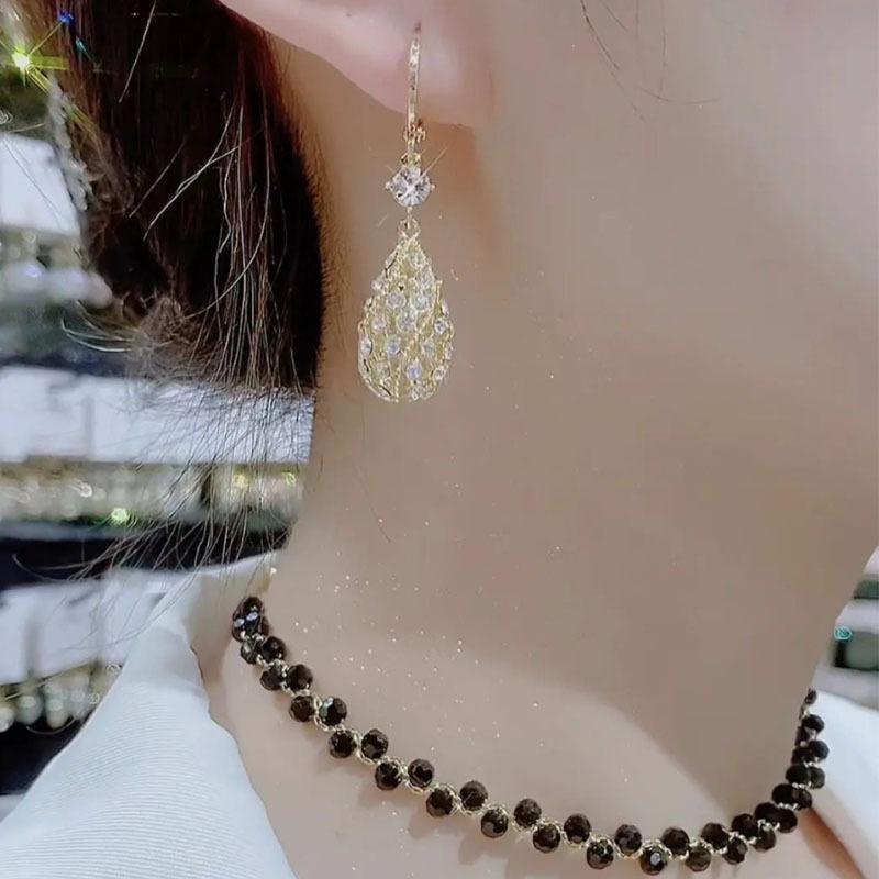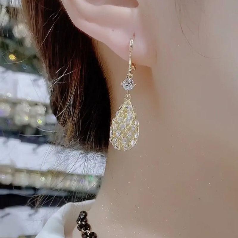 Pendientes Colgantes de Diamante Super Flash Diseño Nicho Exquisito Sensación de Alta Gama Elegantes Moda Hebilla de Oreja Pendientes de Lujo Ligero Pendientes Mujer