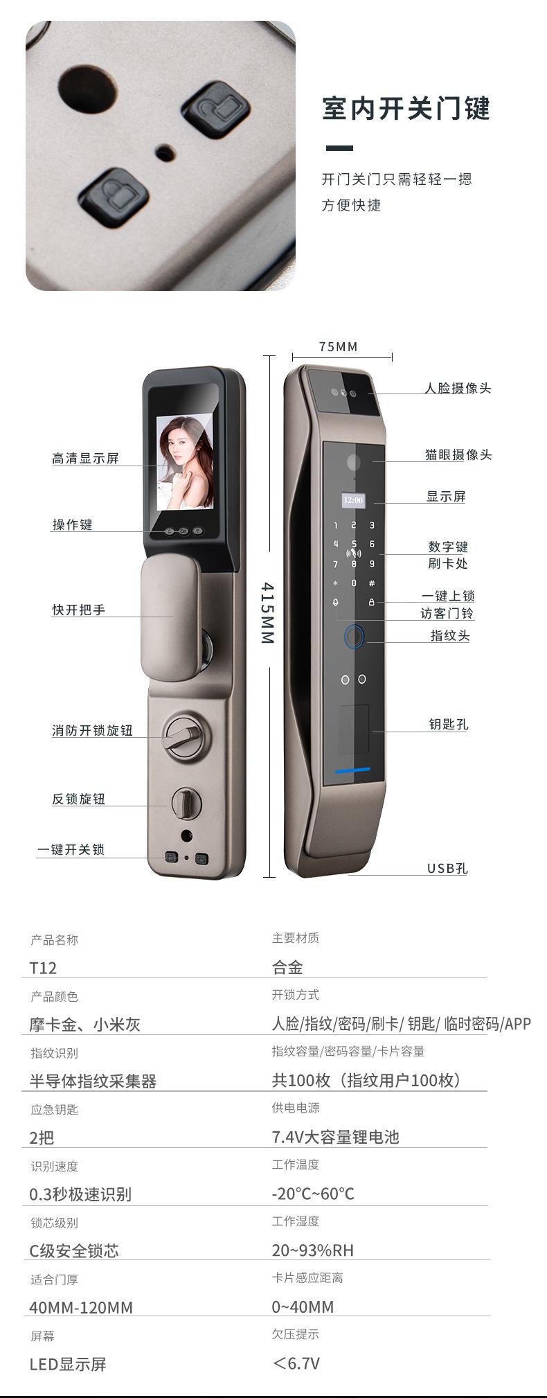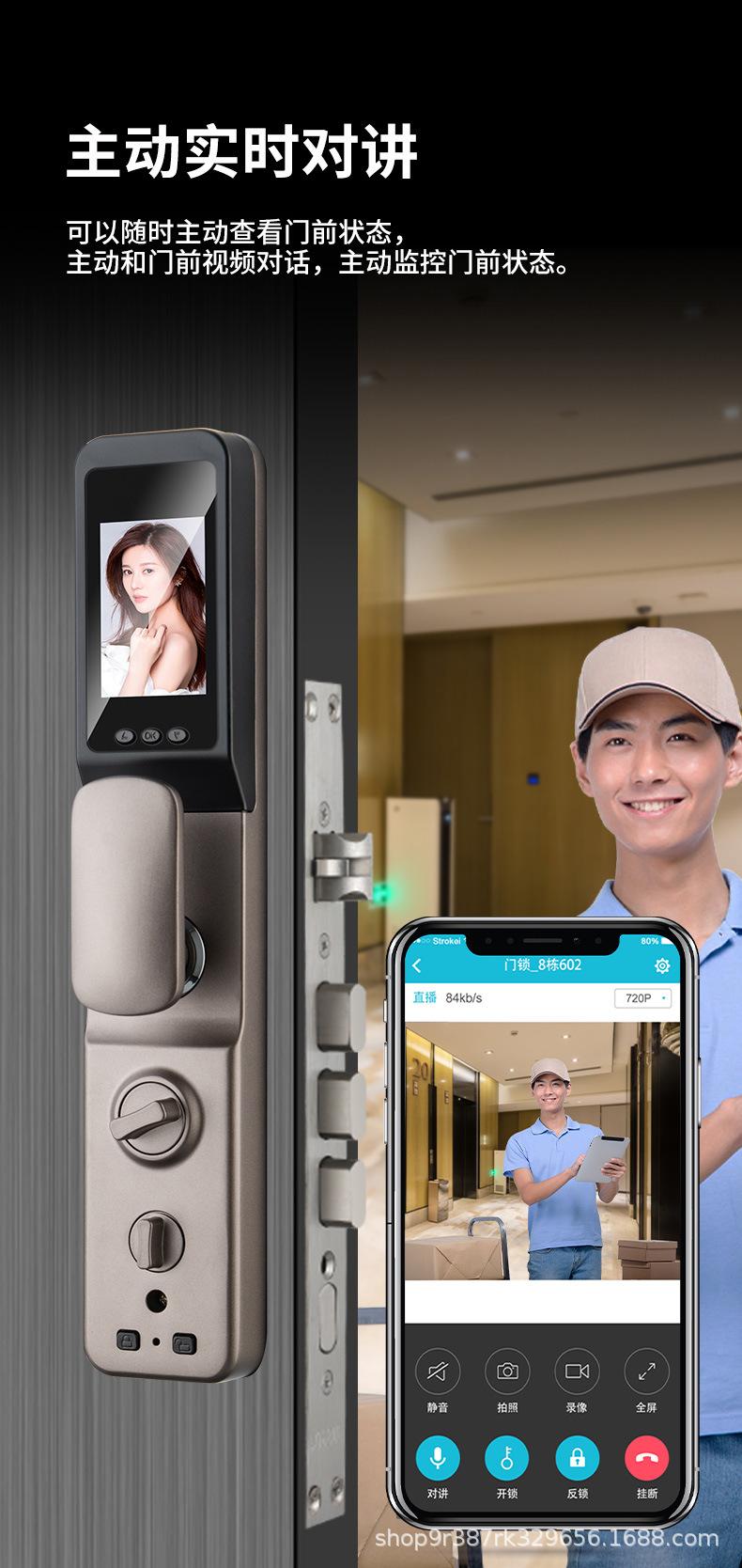 Cerradura inteligente con reconocimiento facial, intercomunicador activo, cerradura de huellas dactilares, cerradura de contraseña antirrobo para puerta, cerradura electrónica para el hogar.