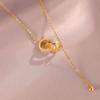 Nuevo collar con colgante de doble aro y borla de acero de titanio para mujer, de gran venta, con cadena de clavícula de diseño simple y resistente al color.