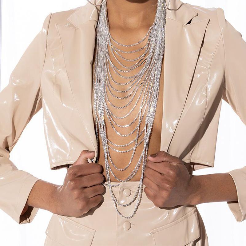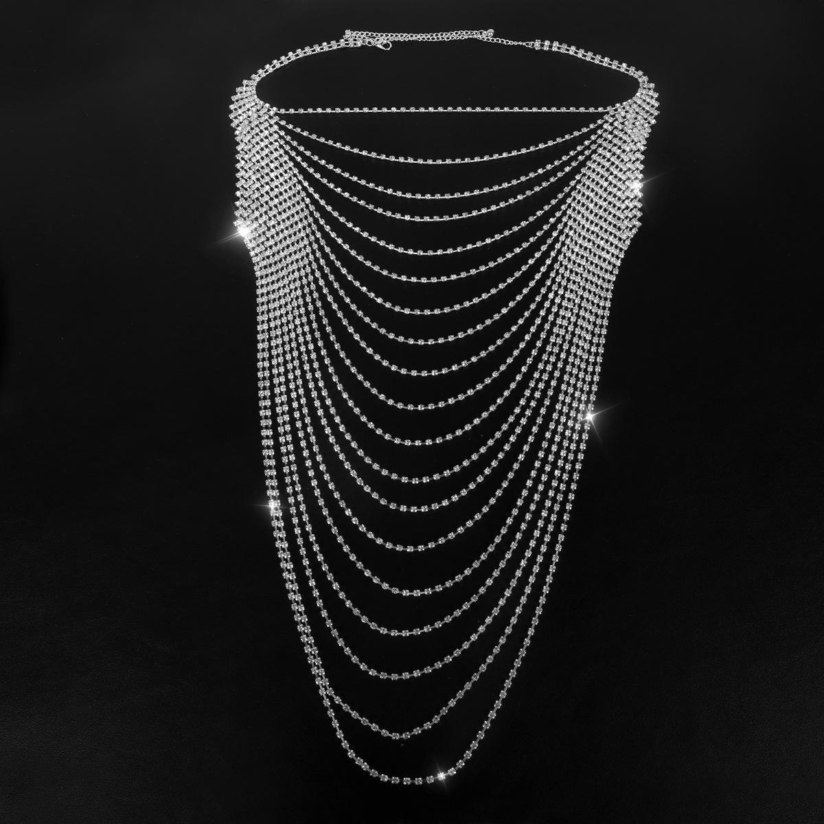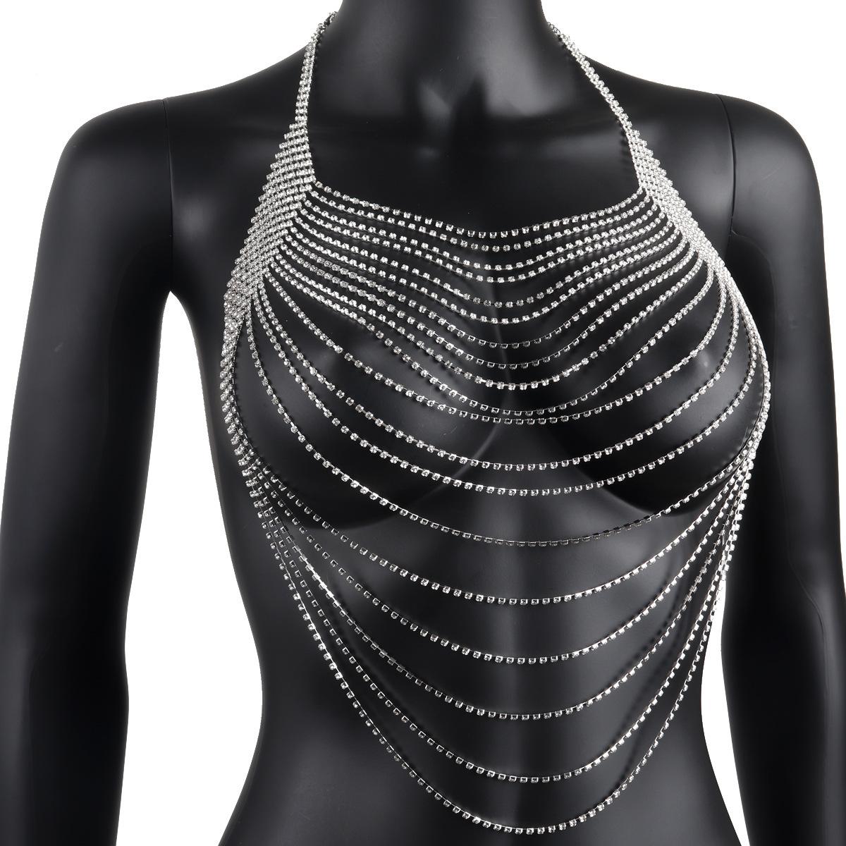 Accesorios de moda transfronterizos sexys europeos y americanos de múltiples capas con cadena para el pecho, cadena corporal con diamantes de imitación brillantes para discoteca