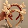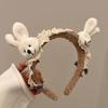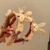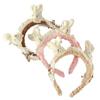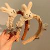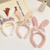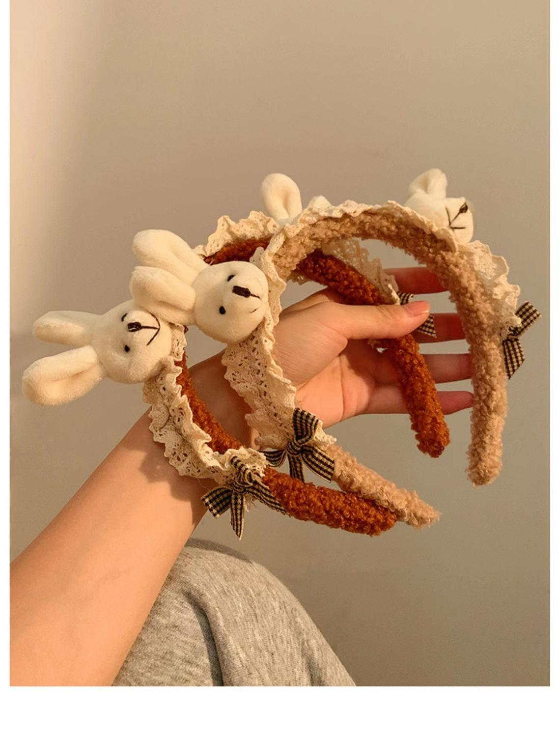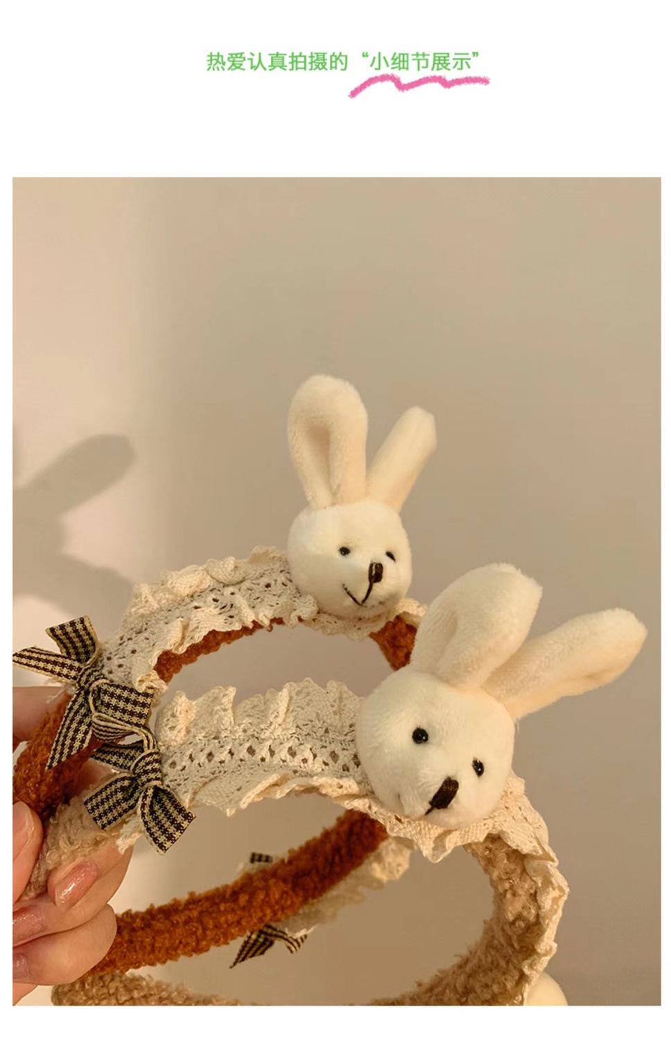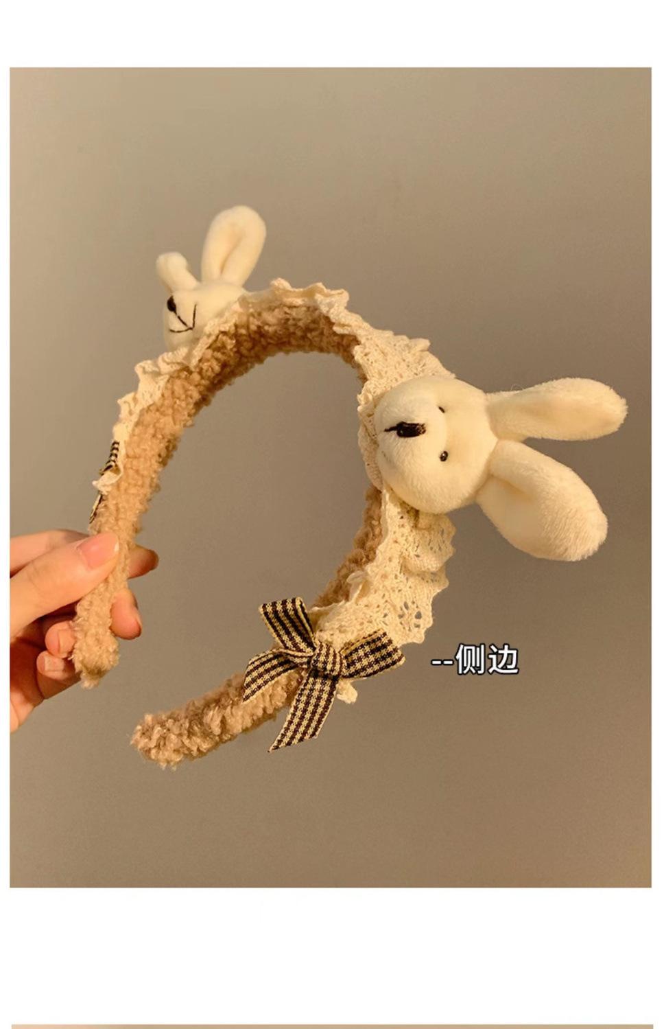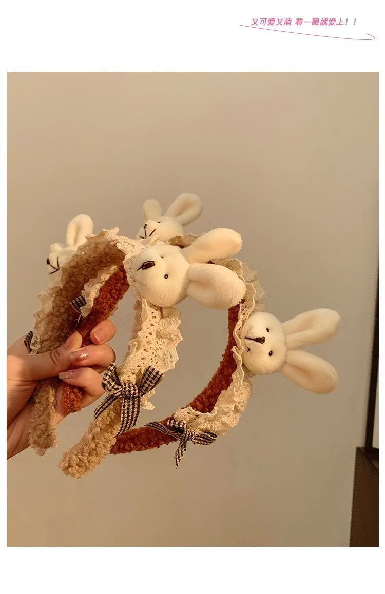 Diadema de felpa suave y linda con lazo de encaje de conejo para niñas Lolita, máscara para lavar la cara, horquilla diadema