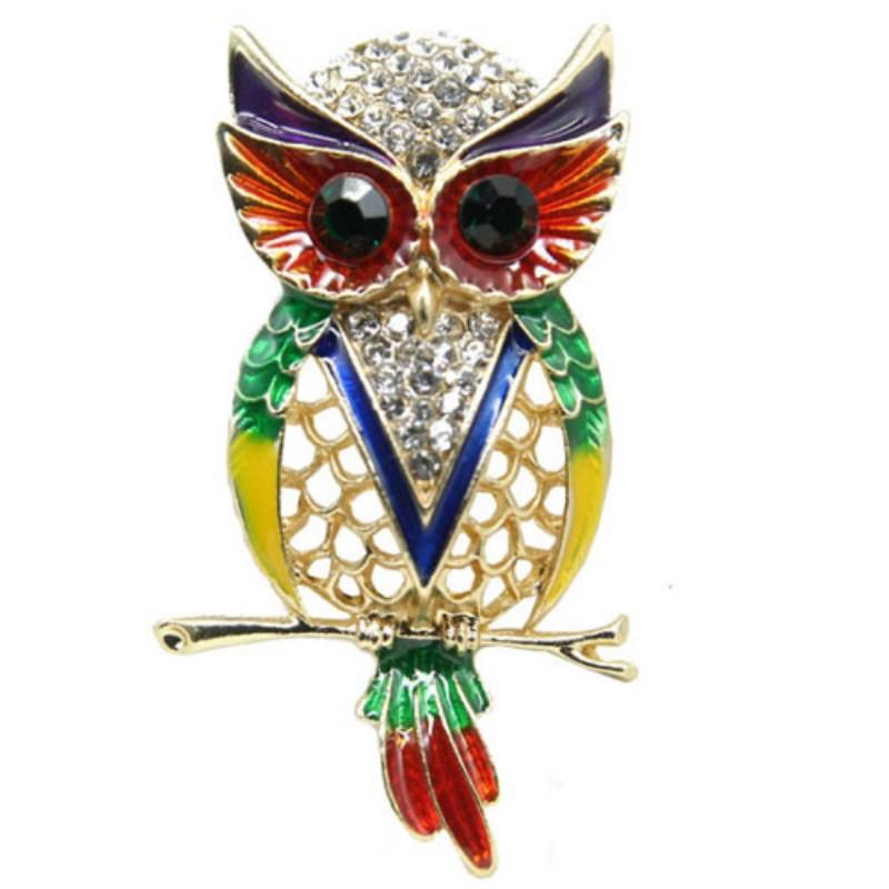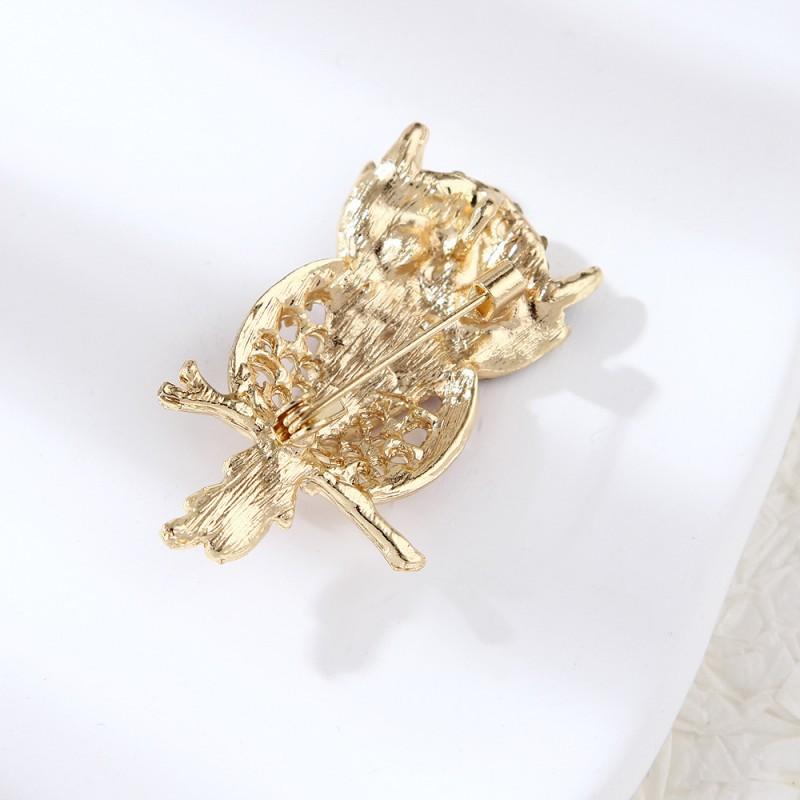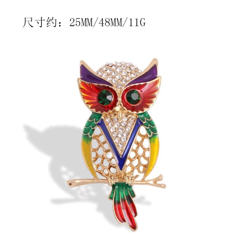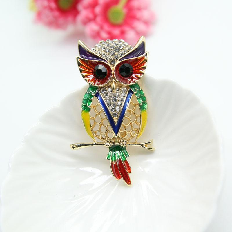 Broche de búho vintage de moda europea y americana para mujer, con esmalte de diamantes de imitación huecos, accesorio para abrigos y ramilletes que combina con todo.