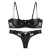 Conjunto de sujetador sexy con escote en V profundo y push up para mujer, ropa interior con liguero