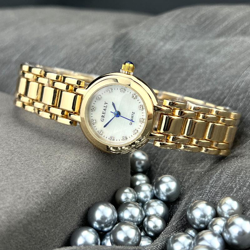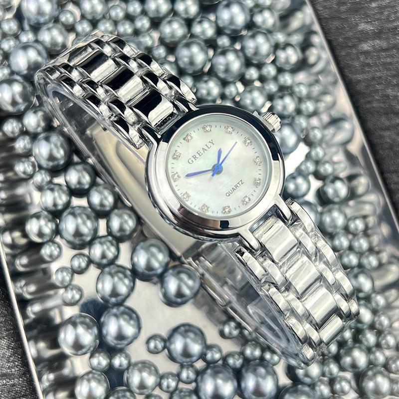 Reloj Clásico Nuevo de Esfera Pequeña con Banda de Acero Explosiones Libro Rojo Pequeño Cuarzo para Dama Corazón del Océano Nácar