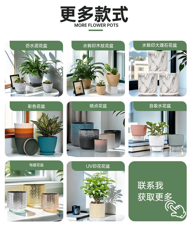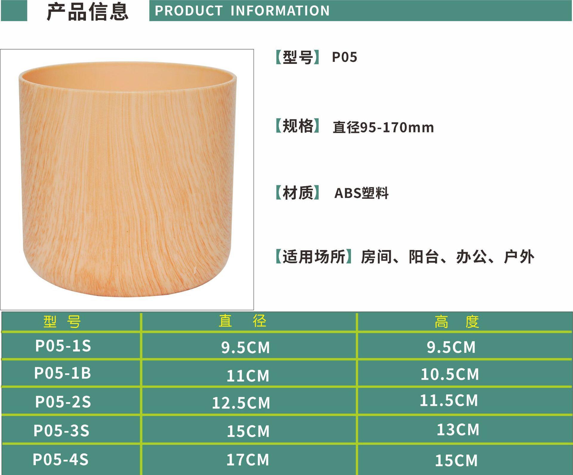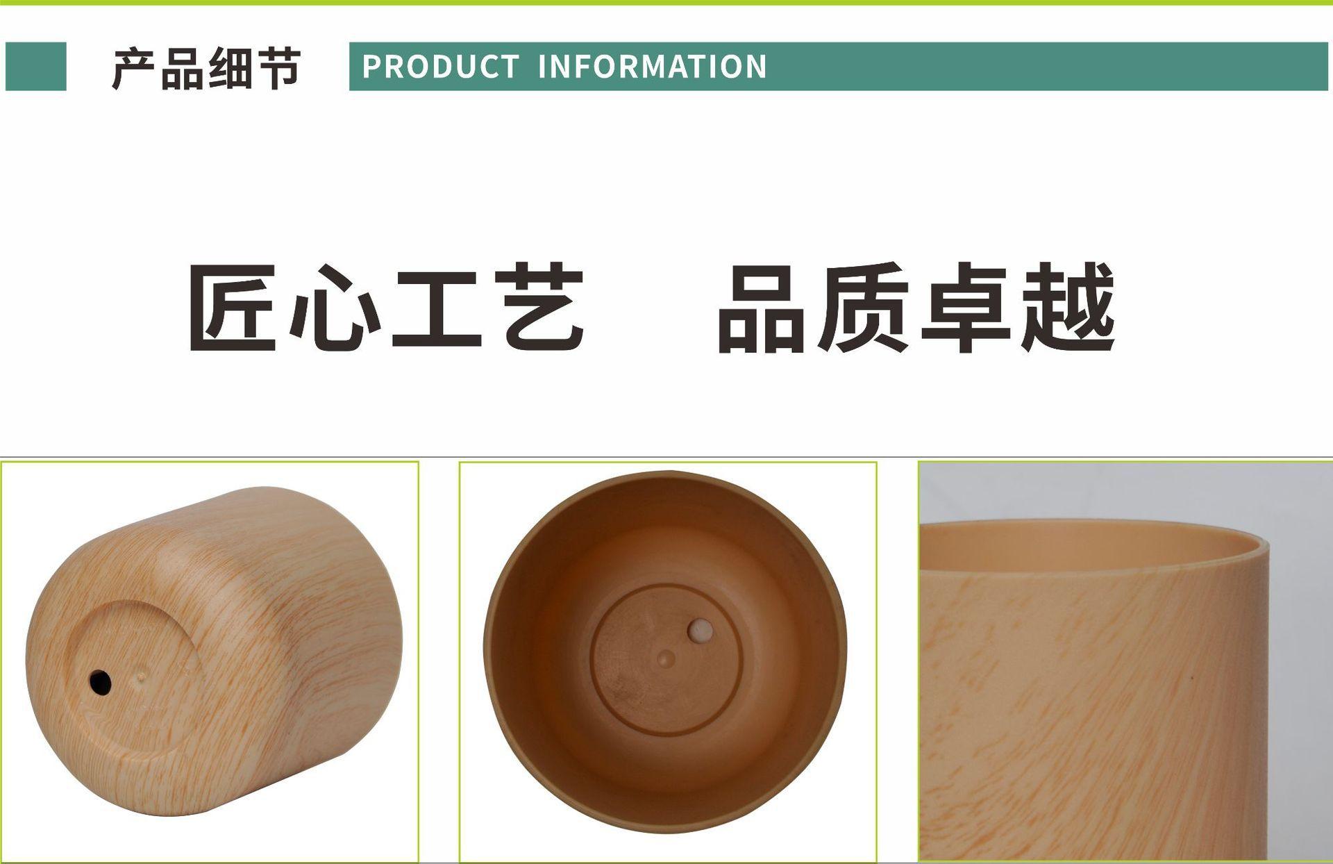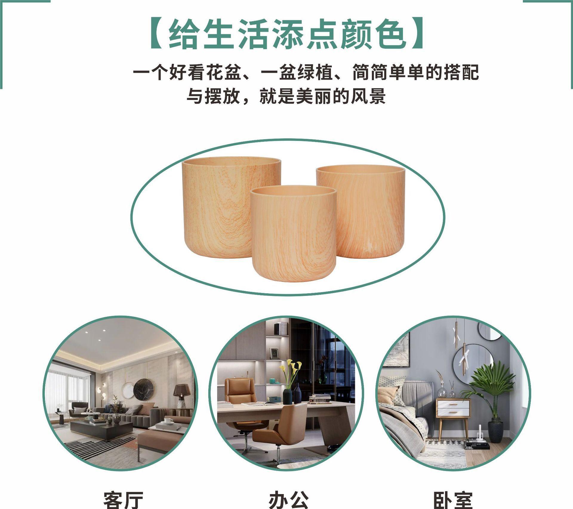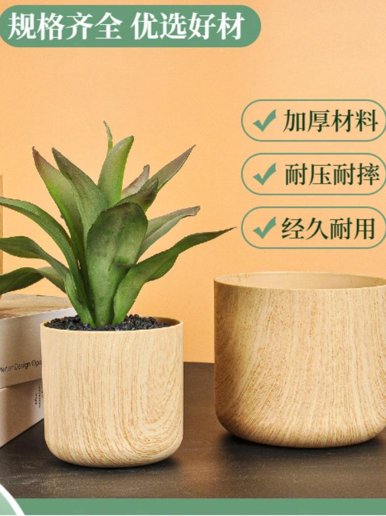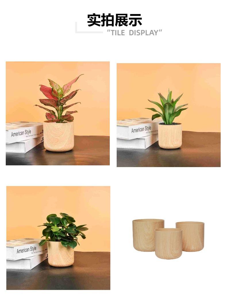 Suministro directo de planta artificial para decoración del hogar, con un solo orificio, boca redonda, grano de madera, impresión por transferencia de agua, plástico ABS, maceta recta