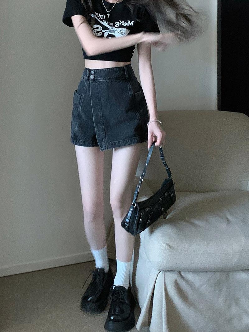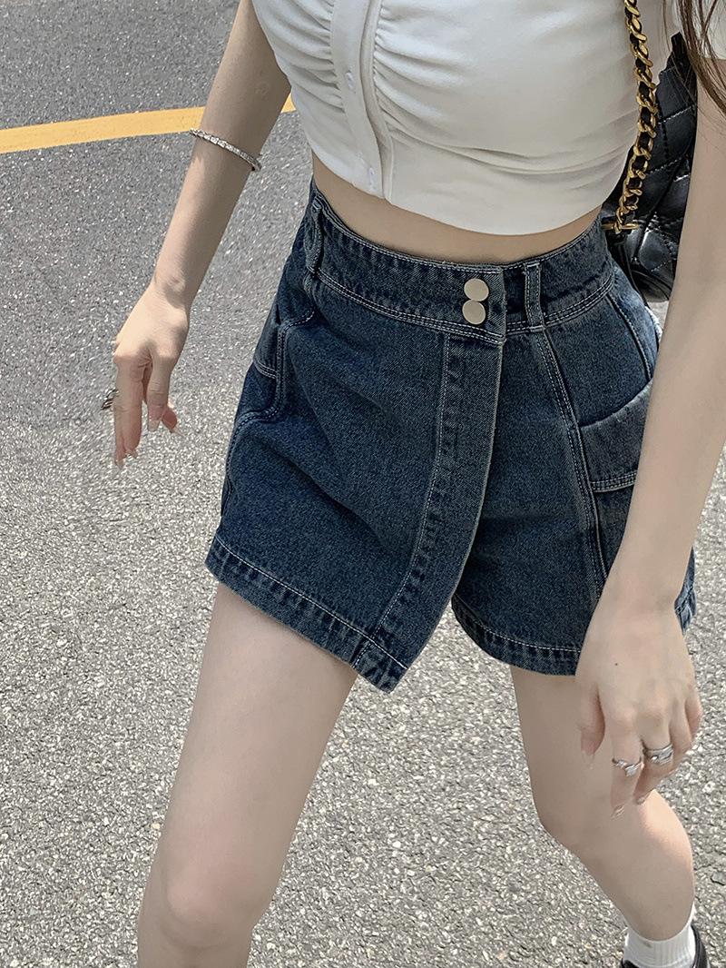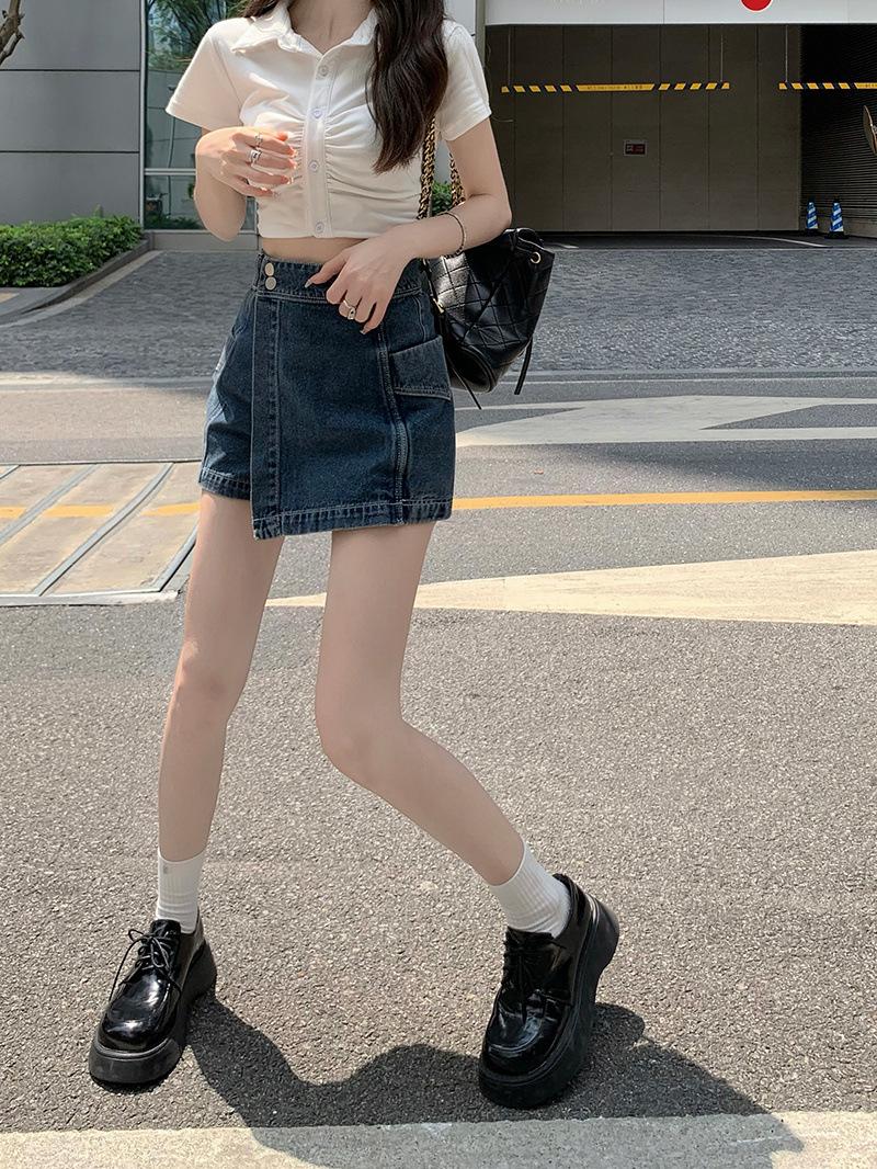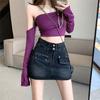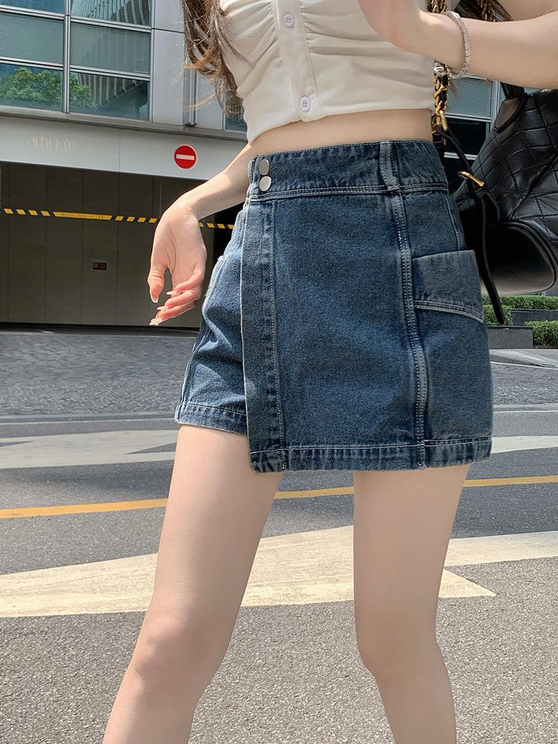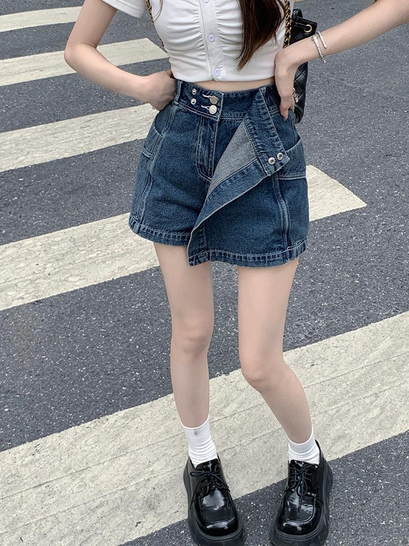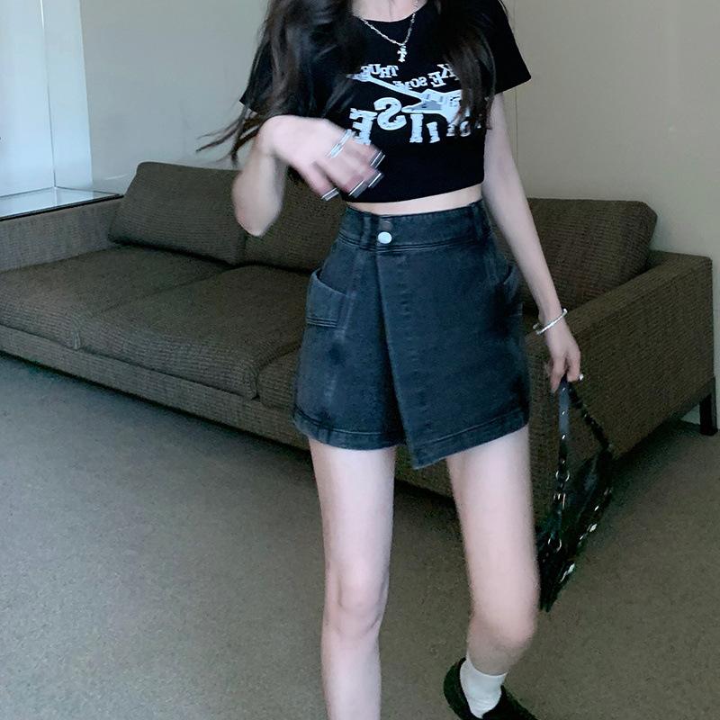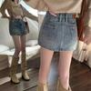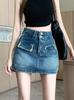 Falda vaquera vintage nueva de verano para mujer, falda de cintura alta, estilo acampanado, estilo Spice Girls, estilo americano, para adelgazar la cadera.