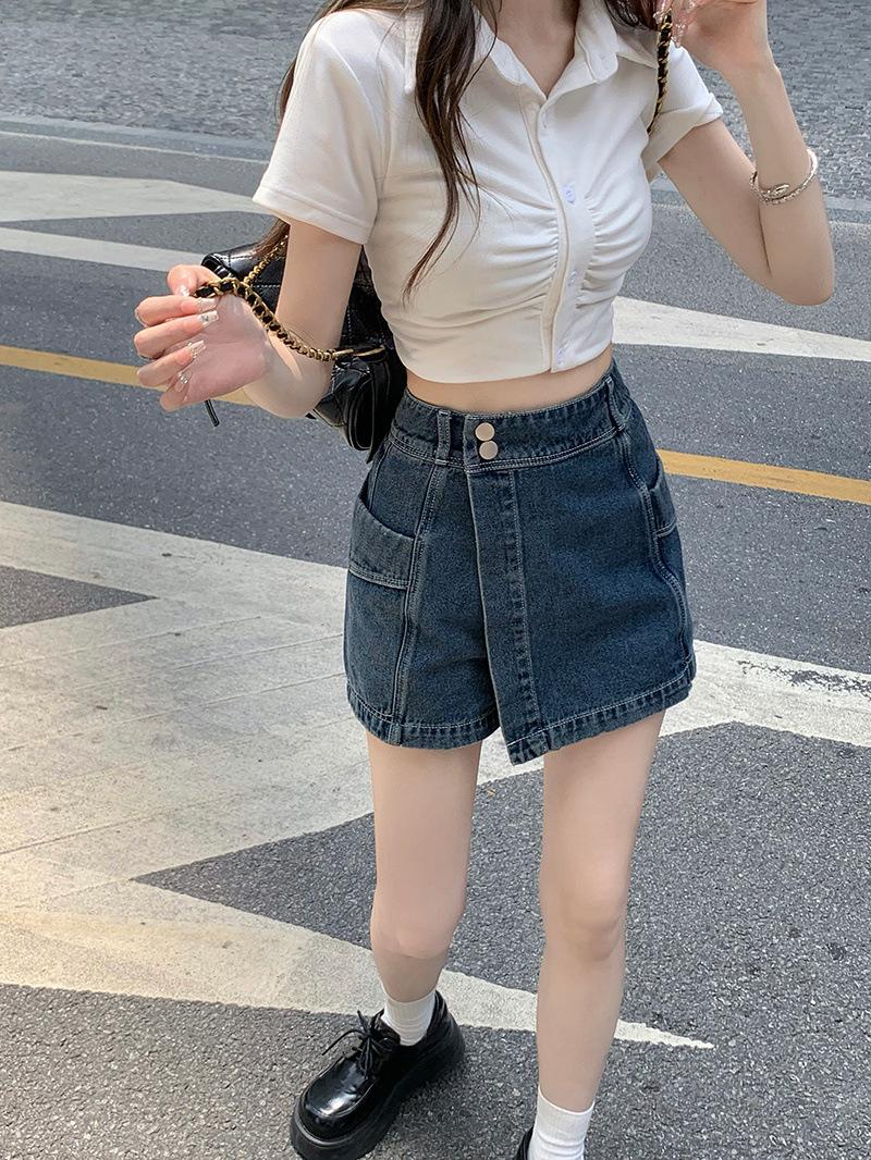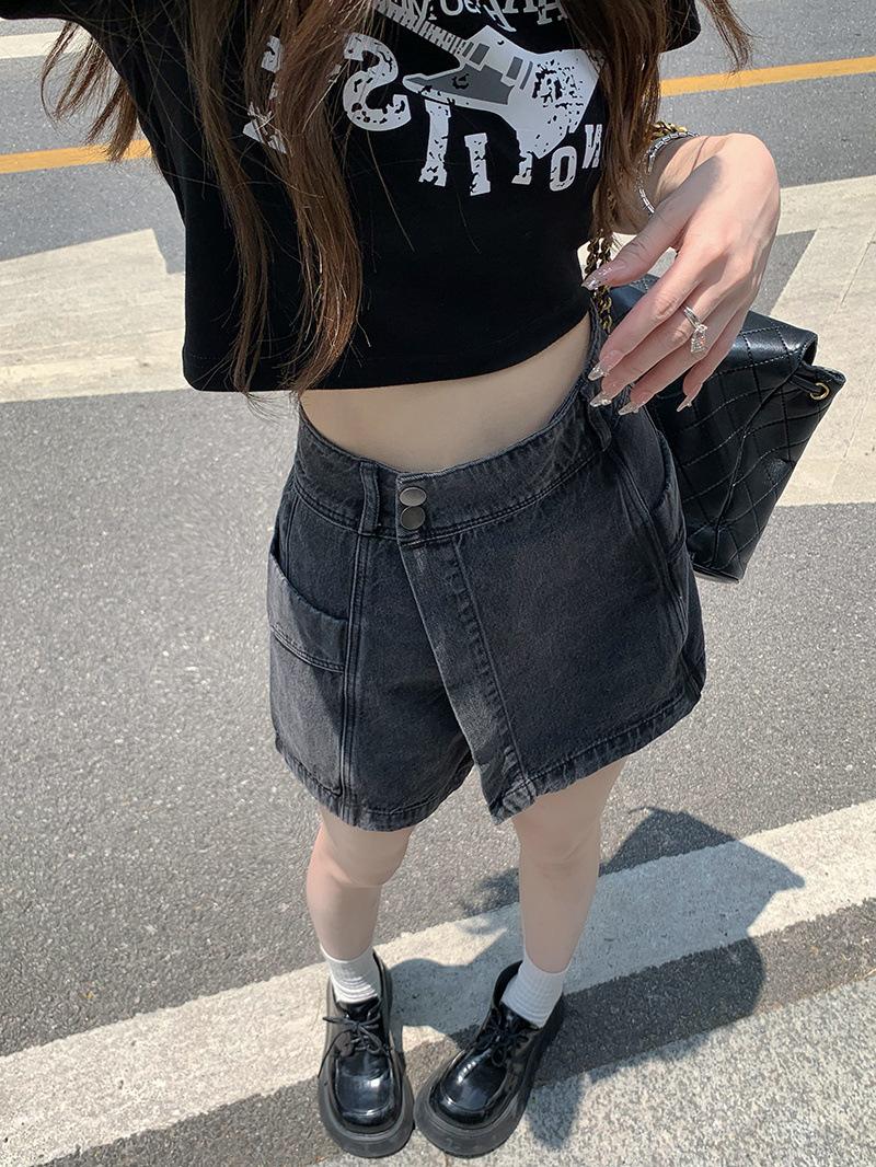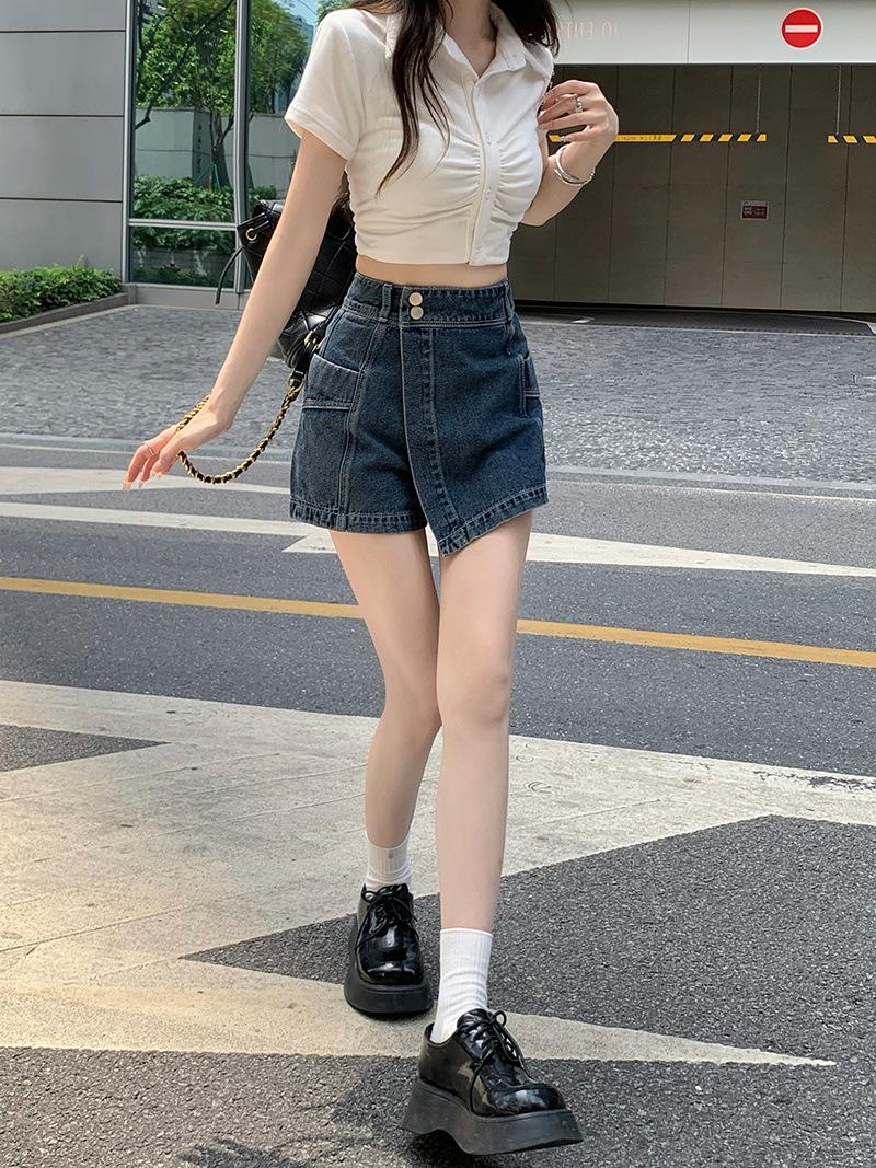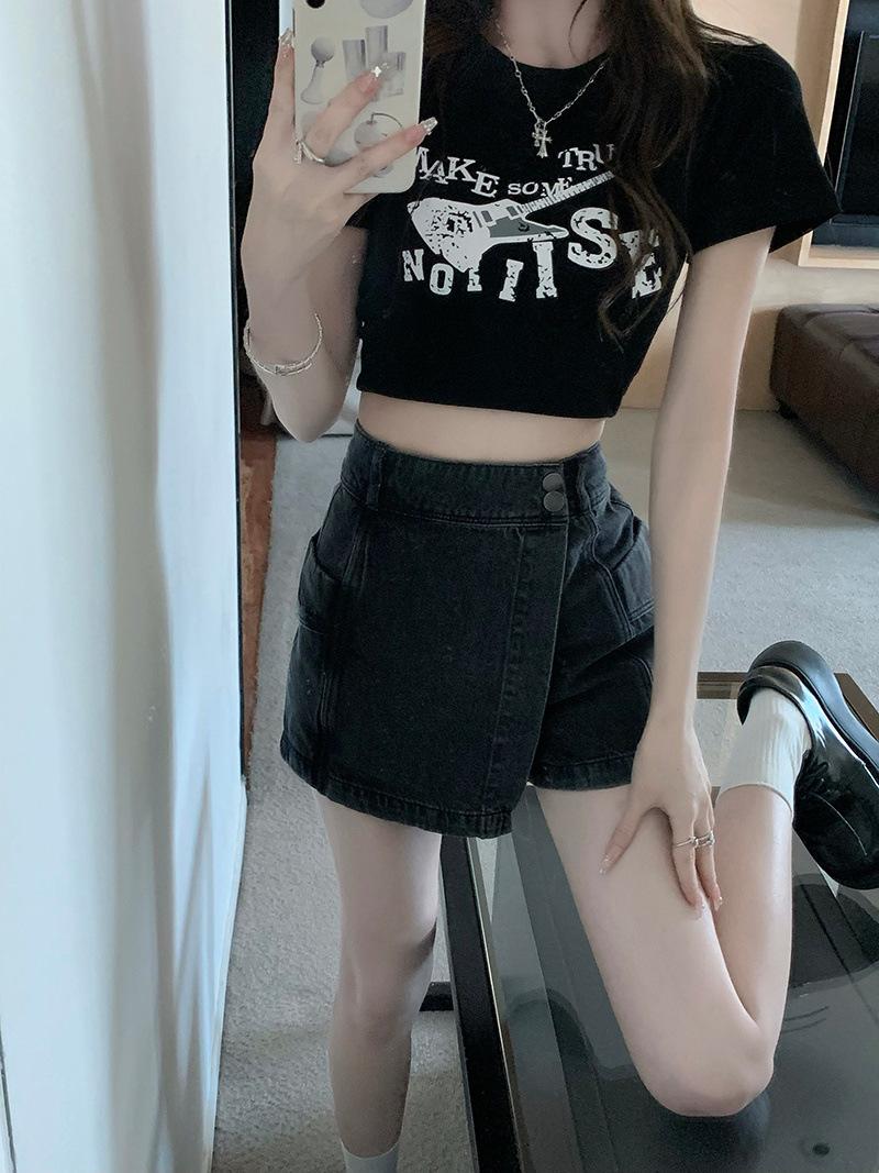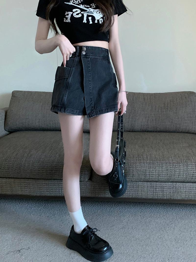 Falda vaquera vintage nueva de verano para mujer, falda de cintura alta, estilo acampanado, estilo Spice Girls, estilo americano, para adelgazar la cadera.