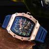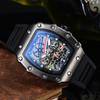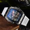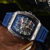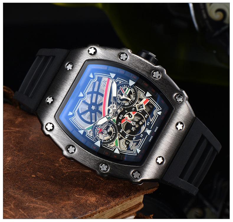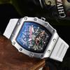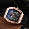 Reloj hueco con cabeza de fantasma, reloj de barril, reloj de negocios de moda con correa de PU, caja de aleación, reloj de cuarzo con calendario