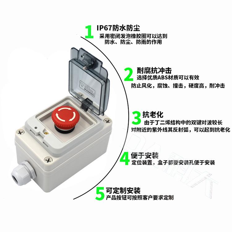 Caja de interruptor de botón impermeable para exteriores, caja de control de arranque y parada de 22 mm con tapa, caja de interruptor impermeable y a prueba de polvo y contacto incorrecto.