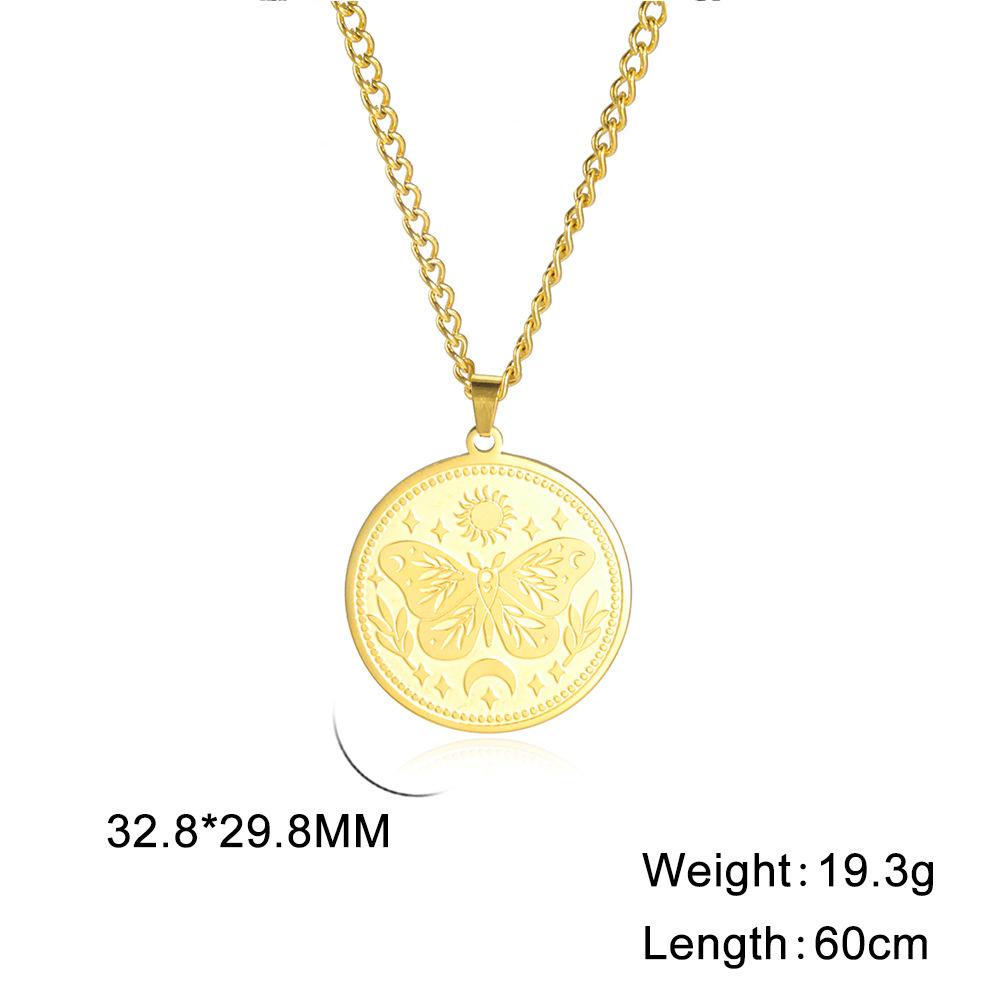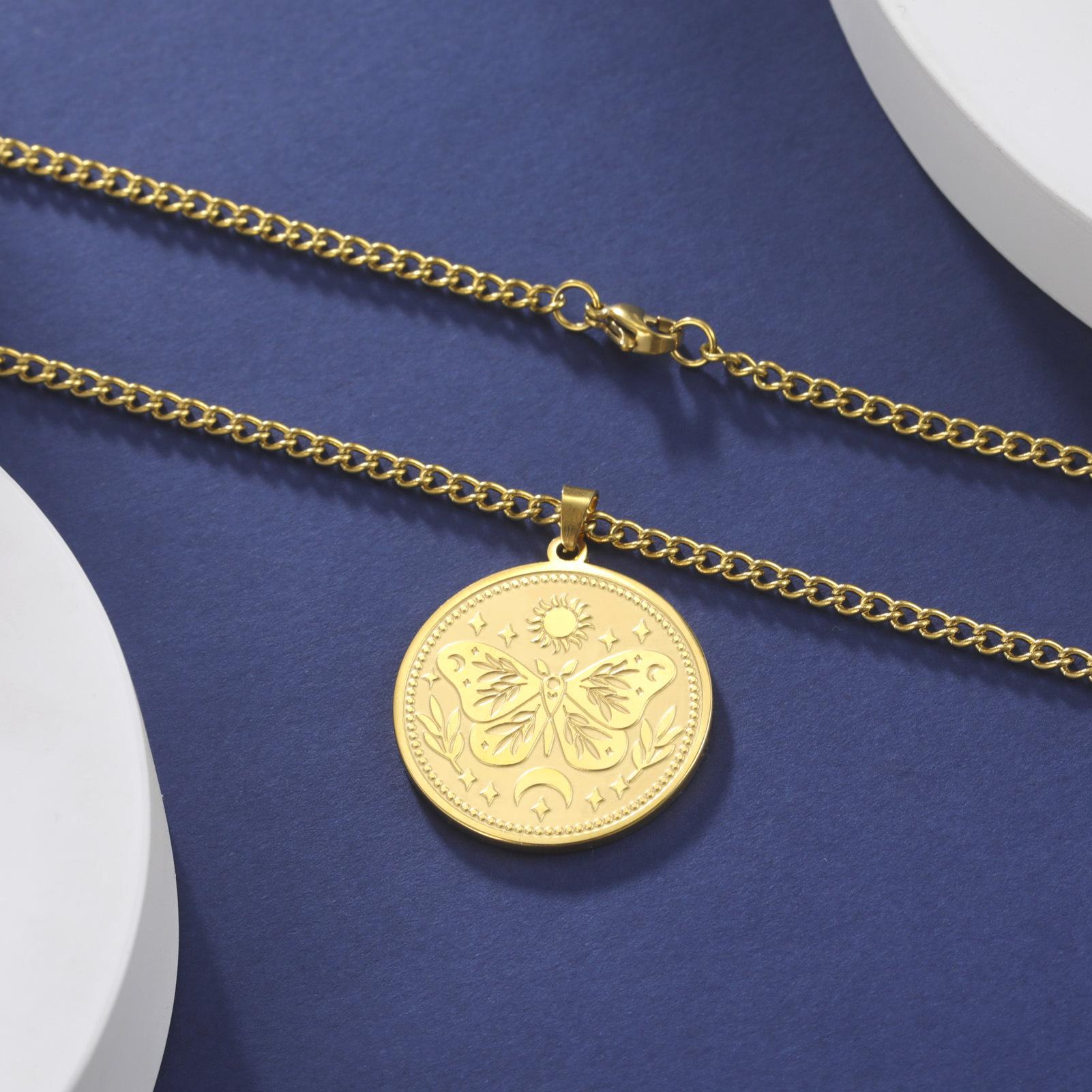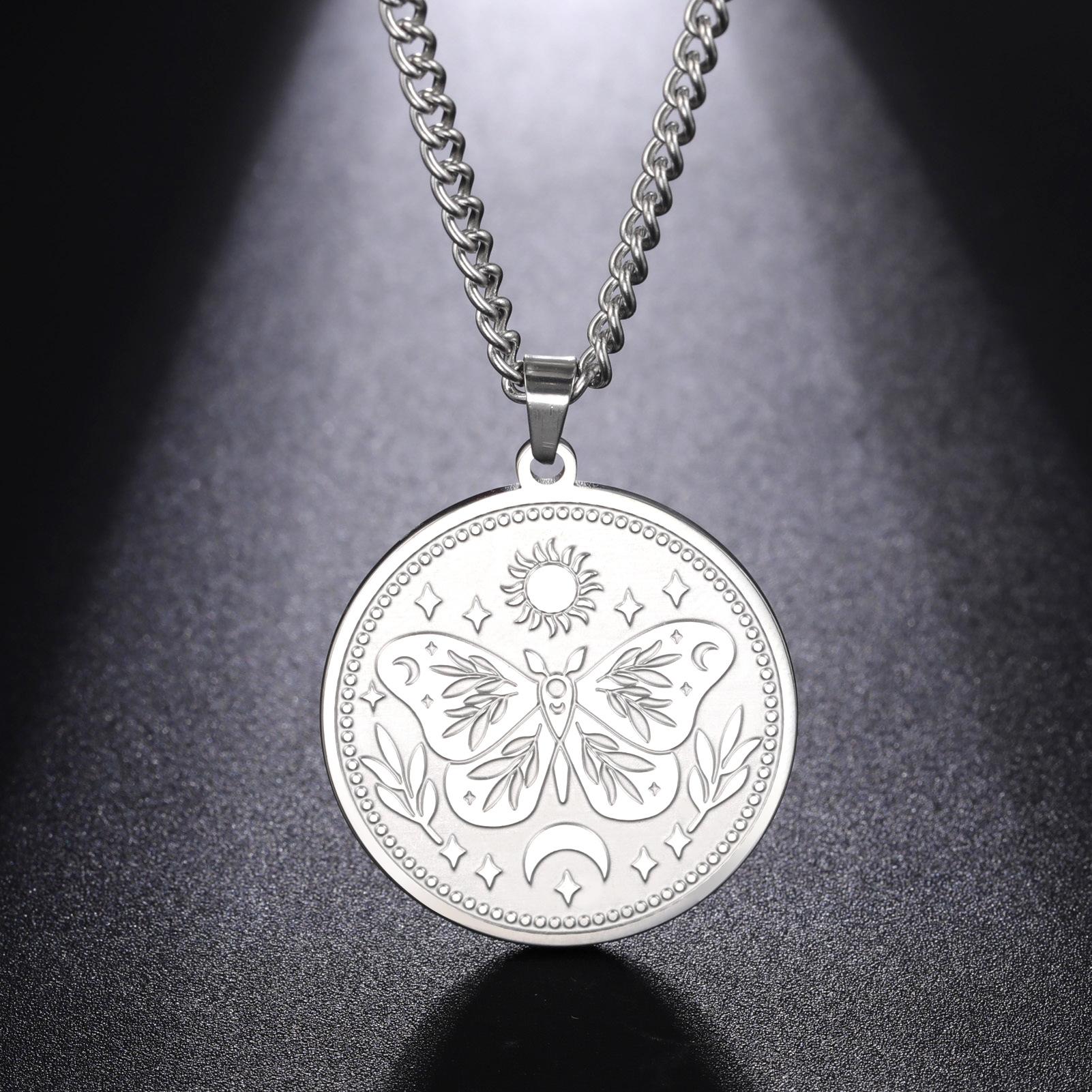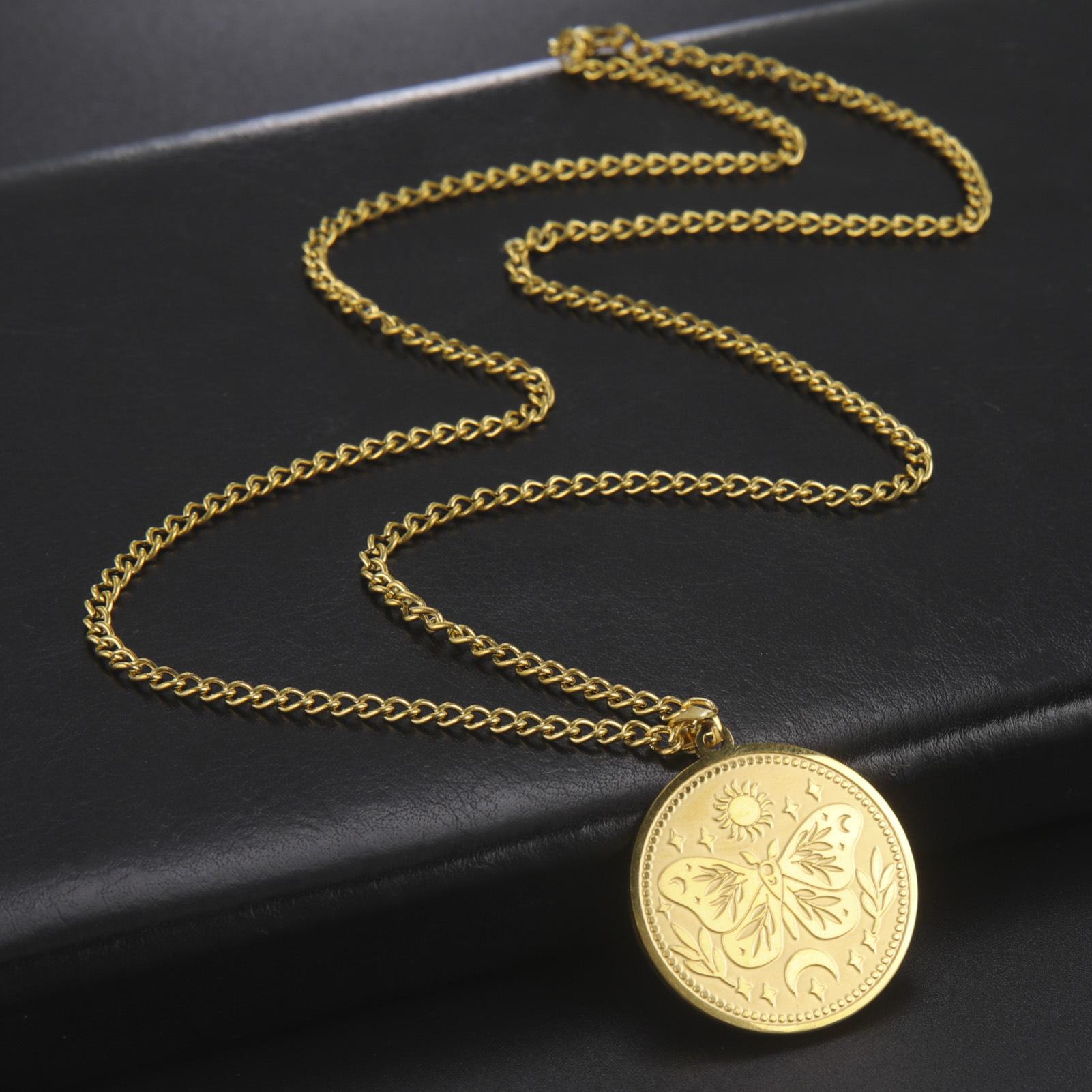 Collar de acero de titanio para hombre, cadena de suéter de moda de invierno, con diseño de mariposa, sol y luna, de marca europea y americana, con combinación de estilo redondo sólido