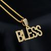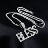 Collar personalizado de hip hop con colgante de letra BLESS de diamantes, popular en Europa y América, de moda urbana para hombres y mujeres.