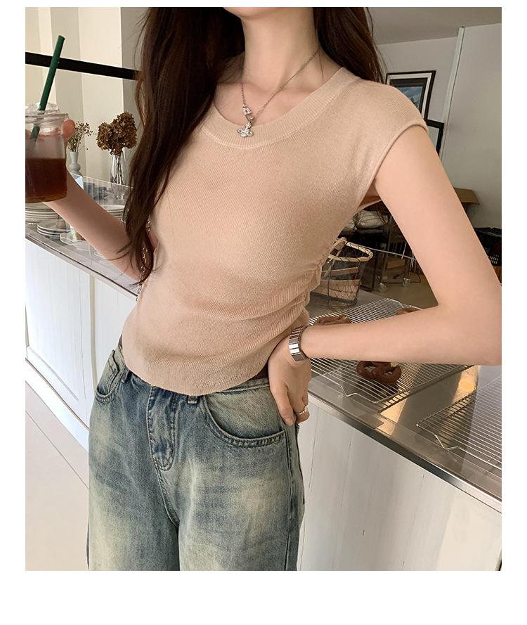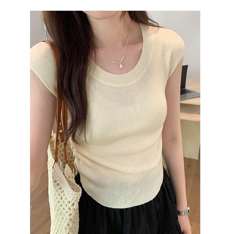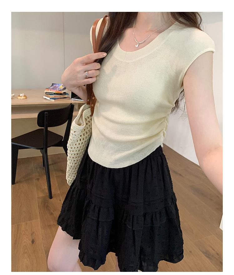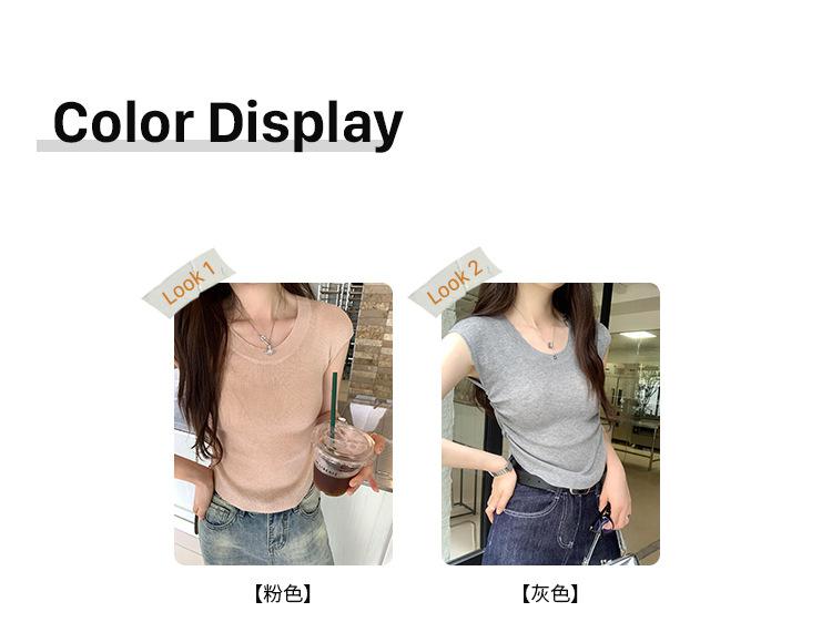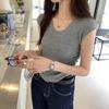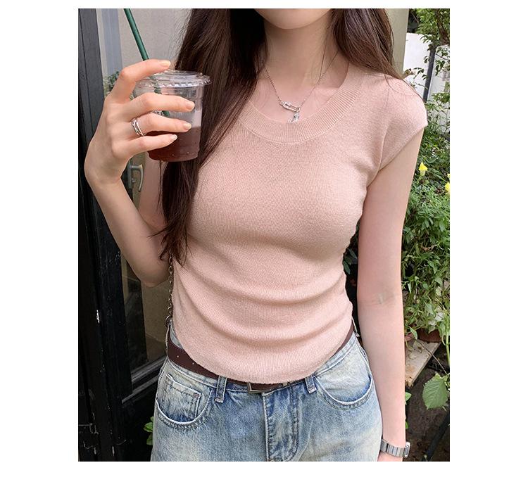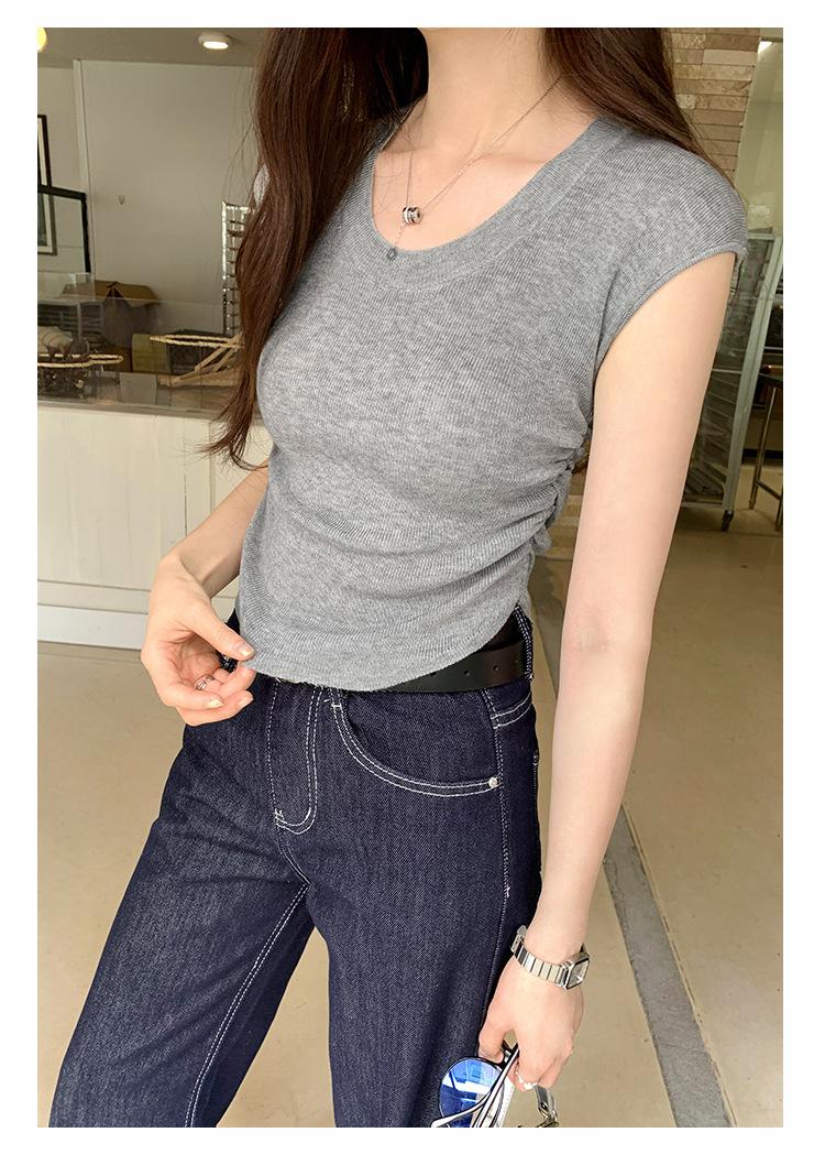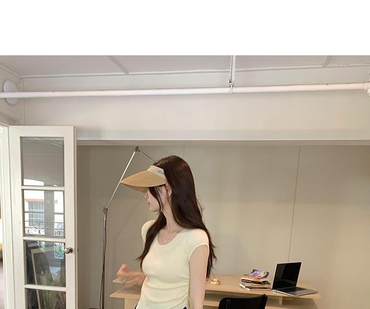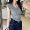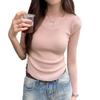 Camiseta de manga corta con hombros descubiertos para mujer, de algodón, de verano, ajustada, plisada, de corte entallado y diseño irregular.